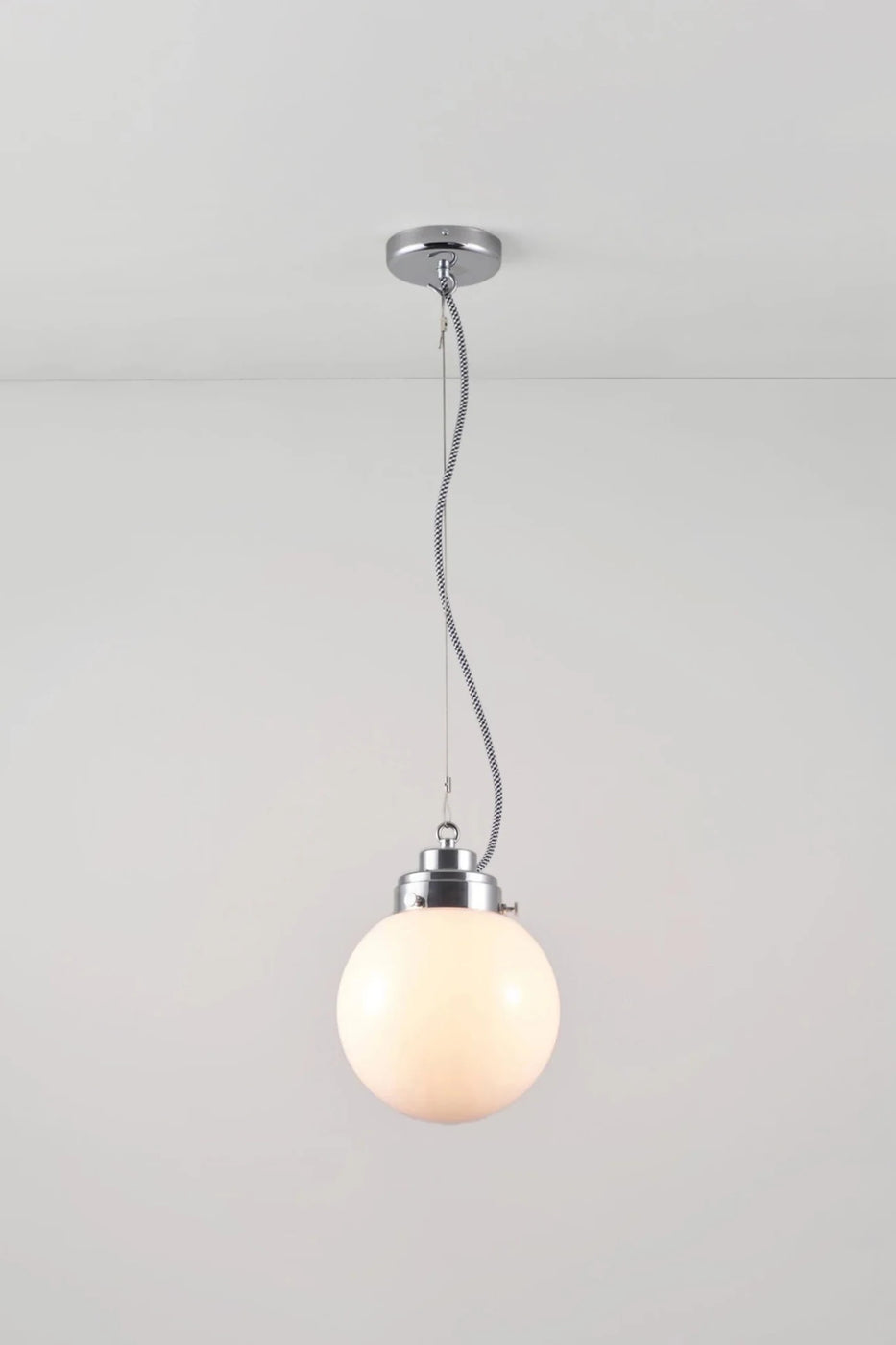 The Original BTC Small Globe Pendant blends Art Deco glamour with contemporary sophistication through its hand-blown glass sphere that captures light beautifully while polished metal fixtures add geometric precision inspired by 1920s design. This isn't just another pendant - the Globe represents timeless elegance that bridges decades of design history, where the compact 7.75-inch glass sphere creates stunning focal points while maintaining perfect proportions for smaller spaces. The Art Deco-inspired metal detailing brings architectural character that complements both period and contemporary interiors, while hand-blown construction ensures unique character. Whether illuminating dining nooks with intimate ambiance, positioning over kitchen islands for focused task lighting, installing in entryways for striking first impressions, or arranging multiples in living spaces for visual rhythm, the Small Globe Pendant delivers sophisticated style with practical illumination that celebrates enduring Art Deco design sensibilities.