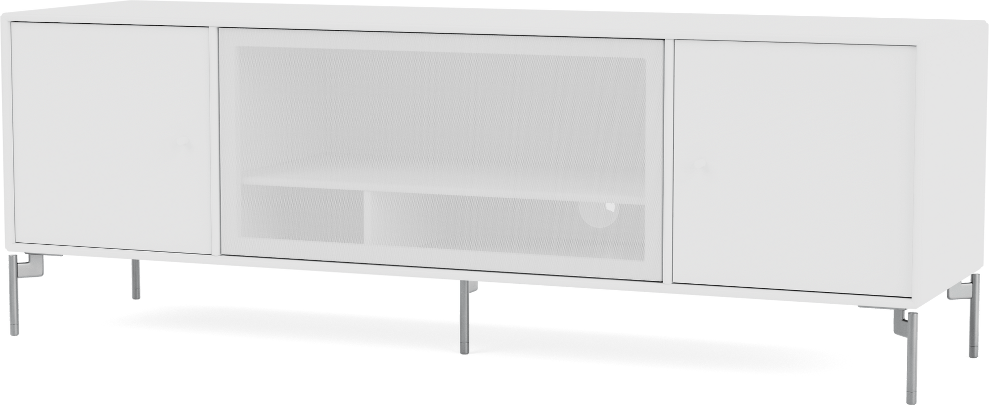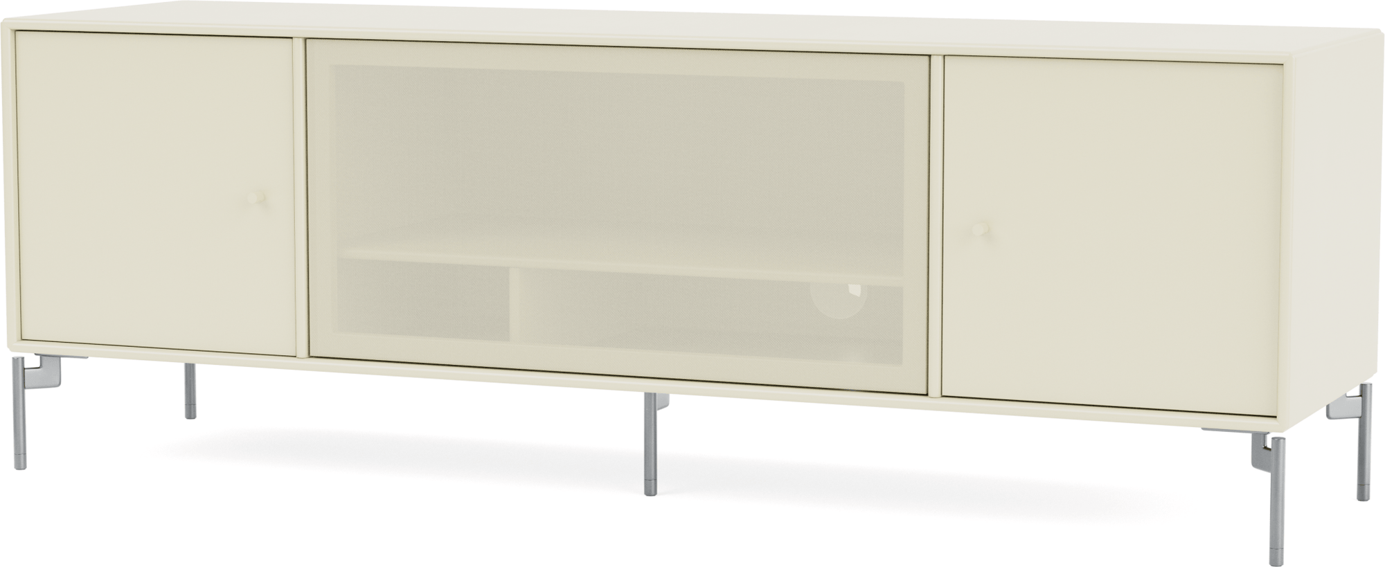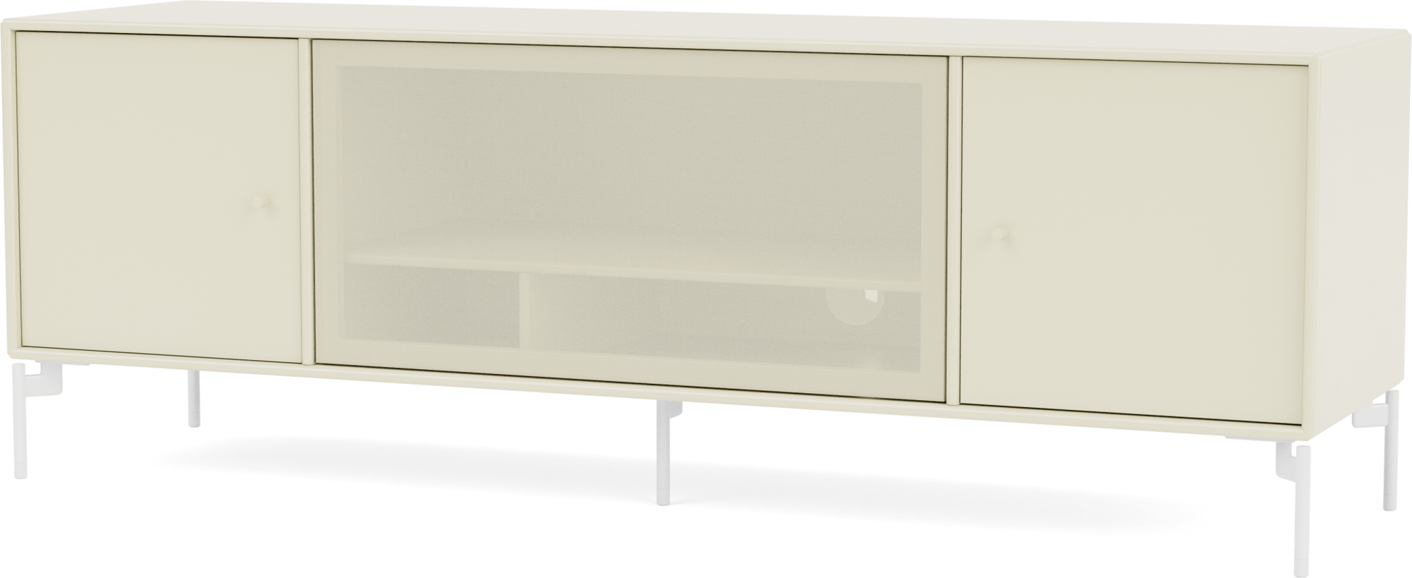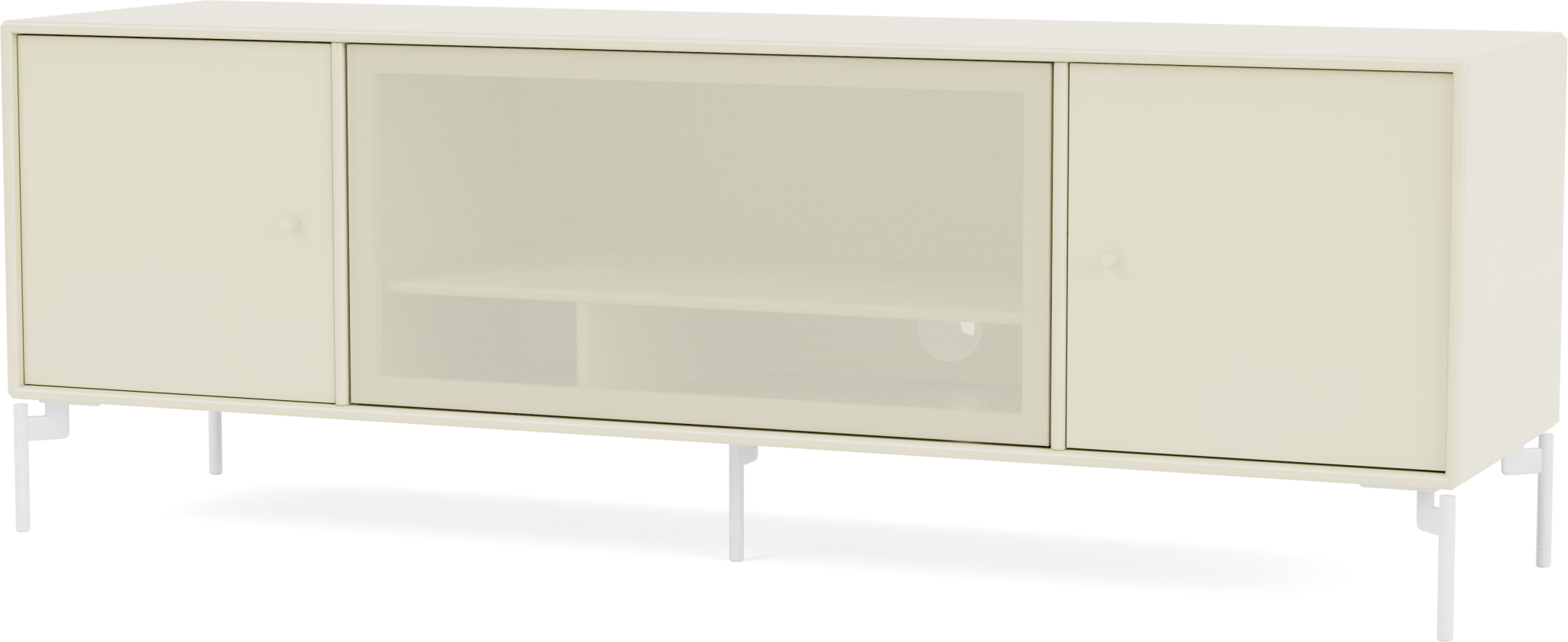The Sound collection is a sleek series of minimalist electronic storage solutions. Perfect for offices, bedrooms, living rooms, game rooms, and more, the Sound VI18 Table discreetly hides electronics and accessories away in two cabinets and a middle compartment with three shelf areas. The perforated metal door of the compartment allows remote electronic connection without opening the door while the back of the Sound VI18 Table features cable grommets for easy organization and plugin access.