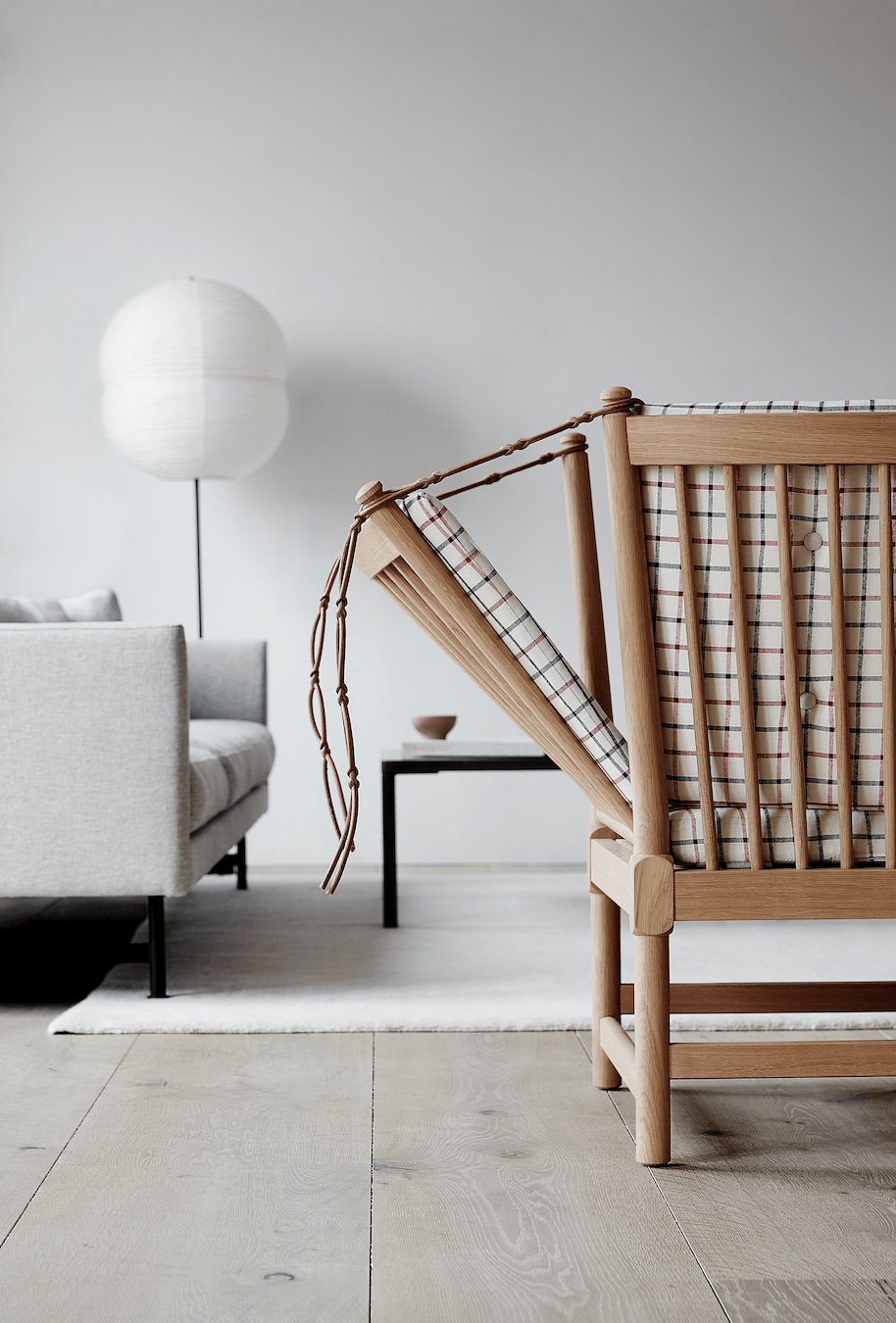 Crafted with a natural wooden frame and visible straps, the Fredericia Spoke-Back Sofa is both practical and visually striking. Its plush cushions, adorned with unique prints, enhance the sofa’s charm, making it a statement piece for any room. Whether used as a lounging sofa or a guest daybed, it fits seamlessly into various settings, offering both sophistication and comfort in one elegant piece.