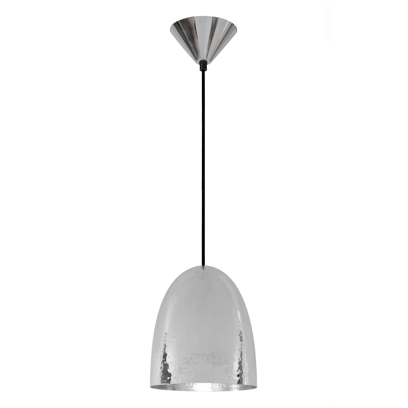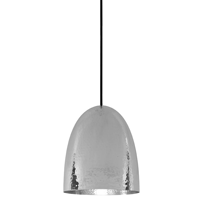 The Stanley Pendant Lights are hand spun from brass, copper or nickel plated brass with either a hammered or smooth finish. A dramatic hammered Black nickel finish has been added to the range, updating the collection while complementing the existing range. All lights have matching coloured ceiling roses, with black cotton braided cables. The lights are available in 3 sizes which can be grouped together or mix metals for an eclectic look.
