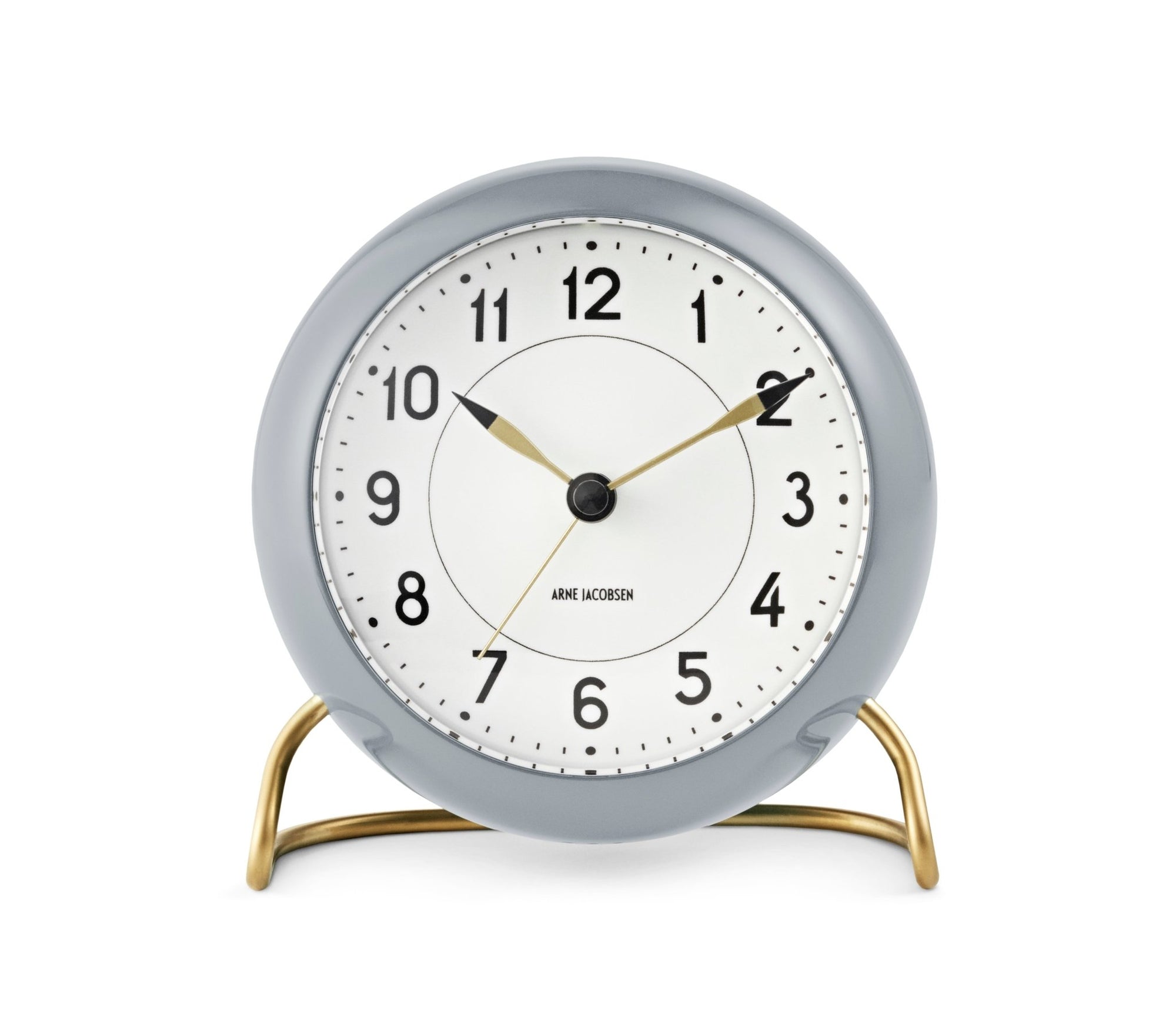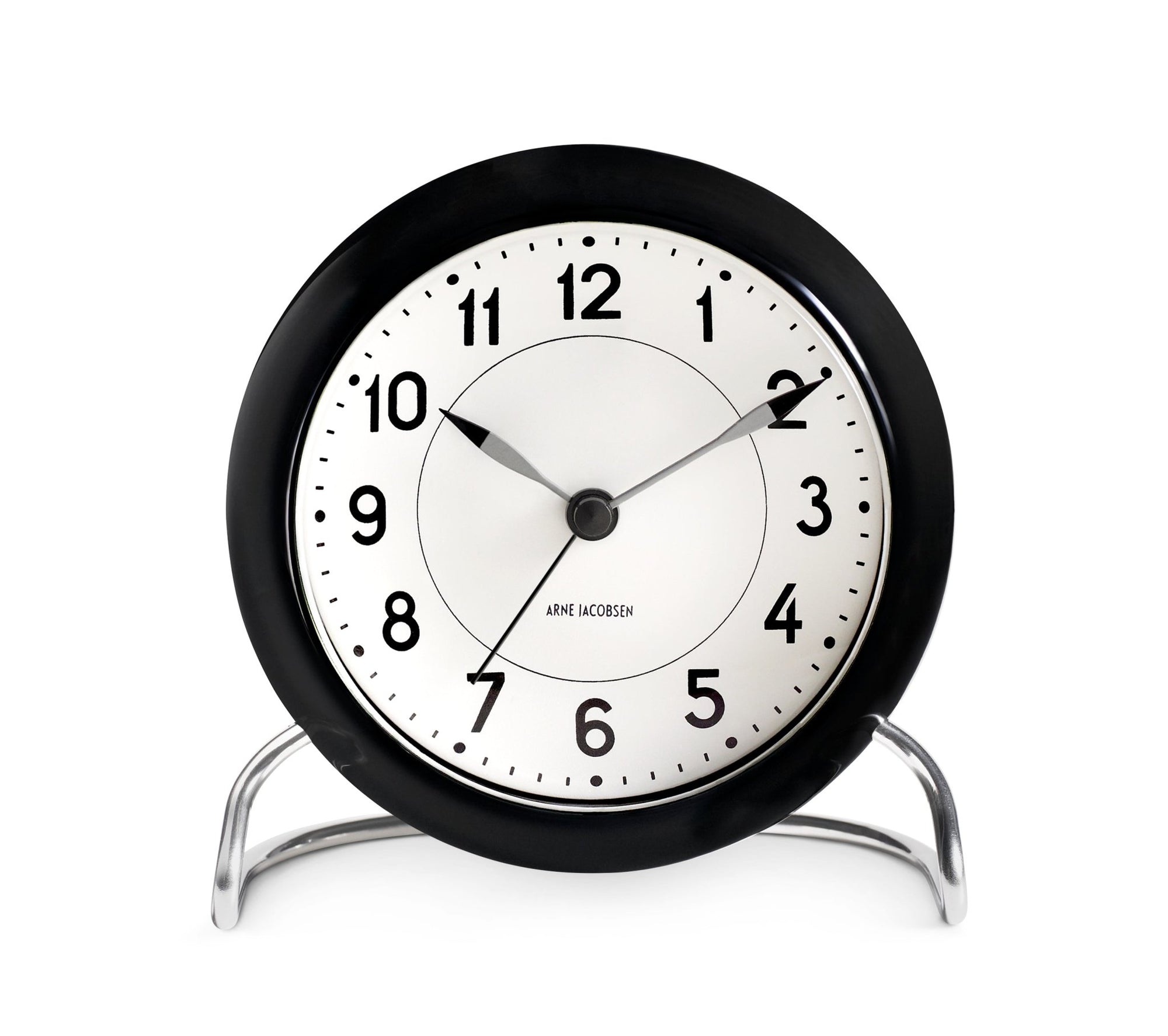 The world-renowned architect's table clock with alarm feature was created in 1939. Its graphic look and metal base – clearly referencing his own Ant and No. 7 chairs – make the clock an ideal gift for the design enthusiast. The clock is perfect for any contemporary home. With its updated features, such as snooze and light sensor, it doubles as an efficient alarm clock.