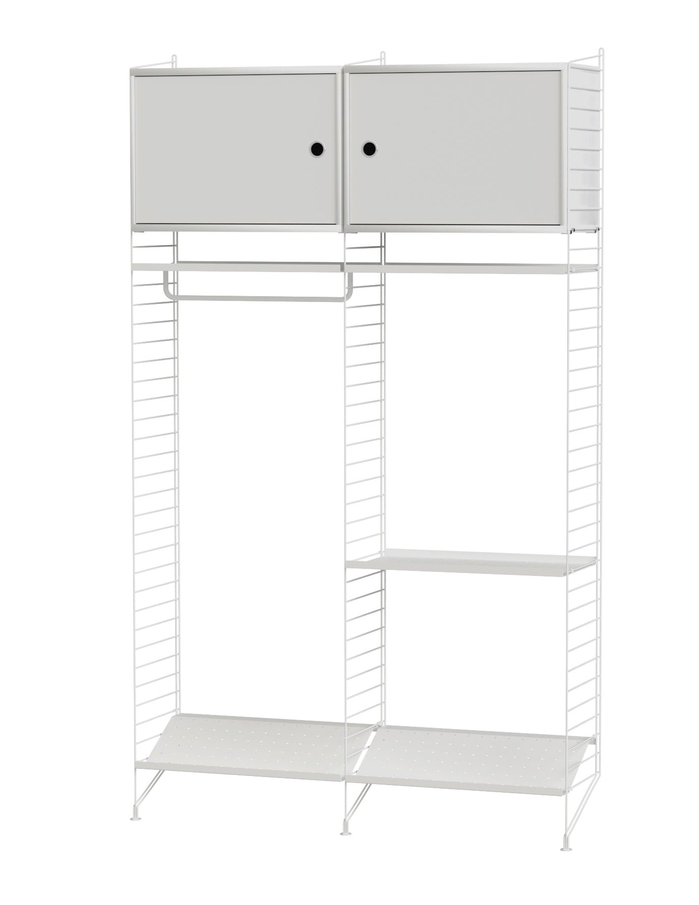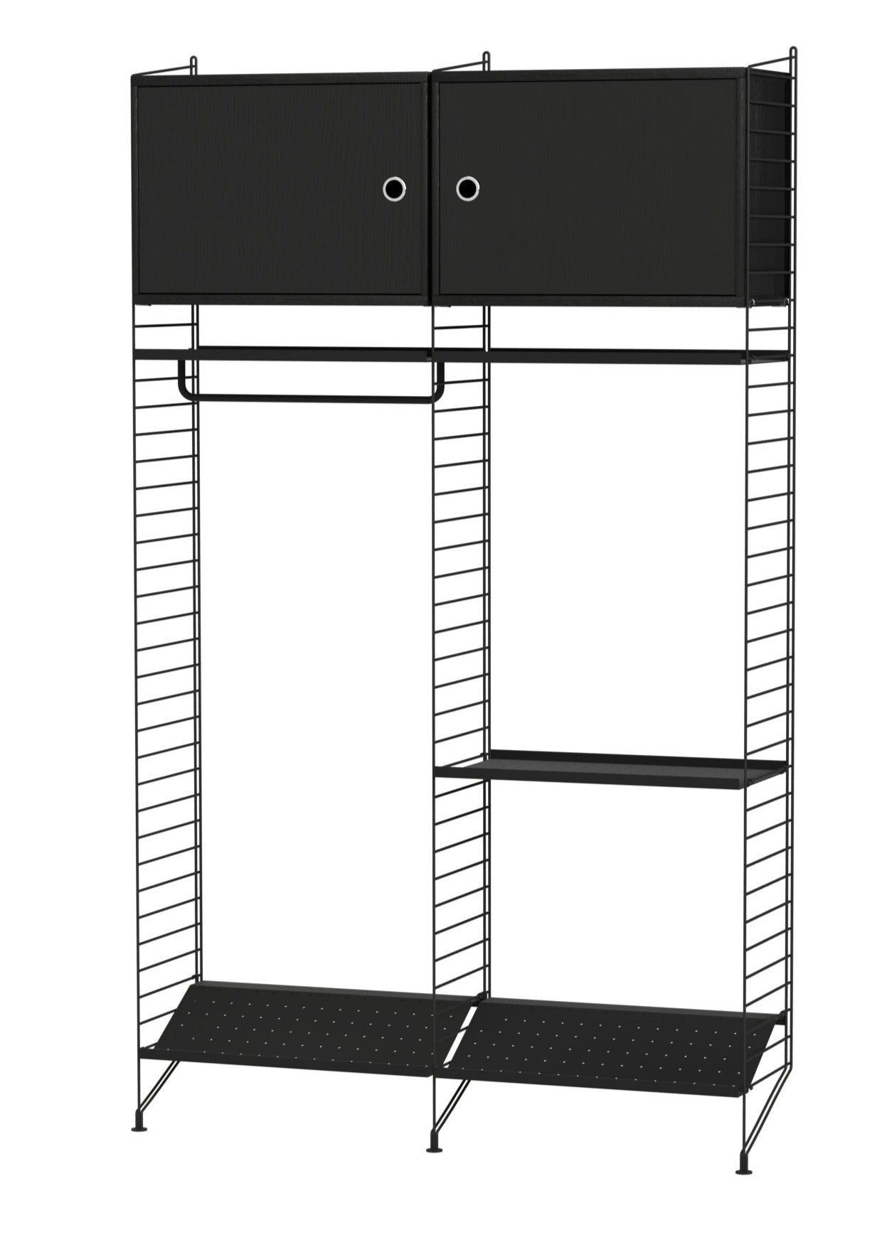 The String Furniture Hallway Shelving Unit T offers a practical and elegant solution for organizing modern entryways. Designed to maximize small spaces, it includes floor panels, low-edge metal shelves, shoe racks, and hooks. With both open and concealed storage, it keeps coats, bags, and accessories neatly tucked away. As a result, the String Hallway Shelving – Unit T helps you maintain a calm, clutter-free entrance with ease and sophistication.