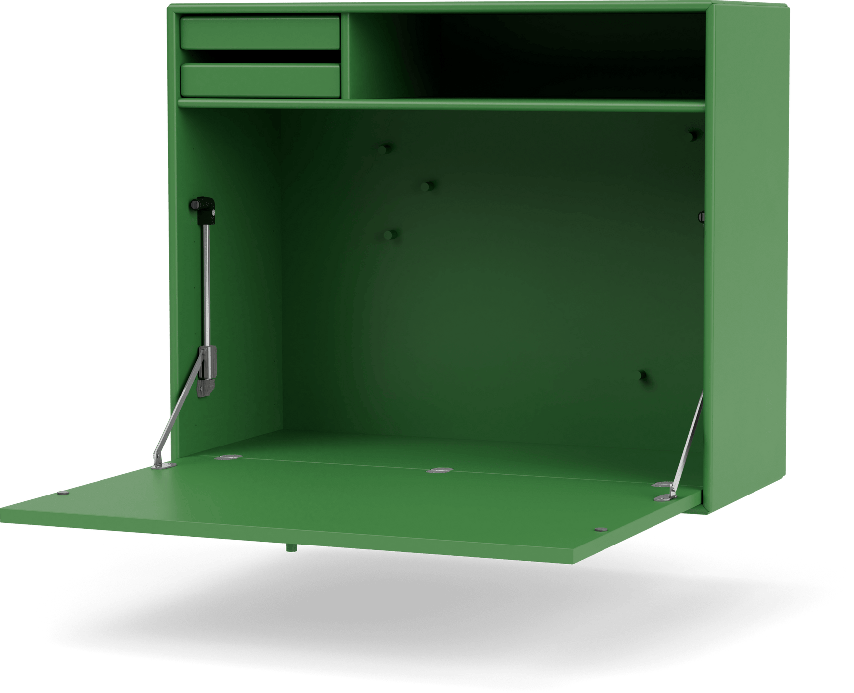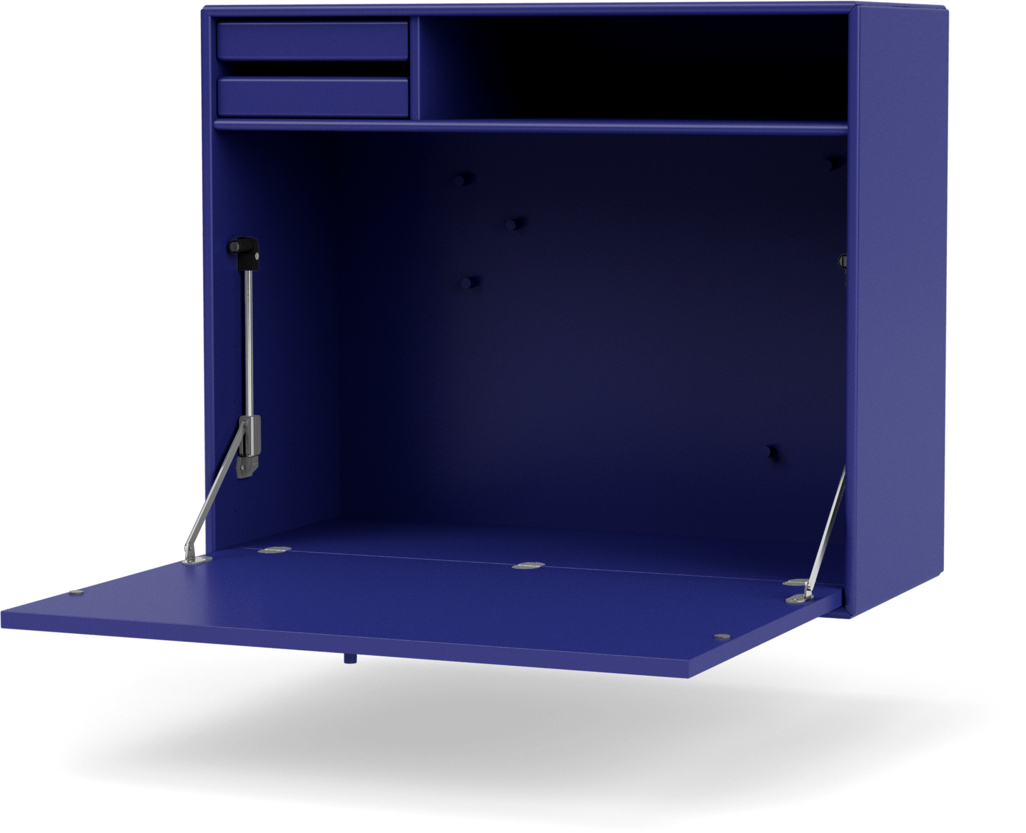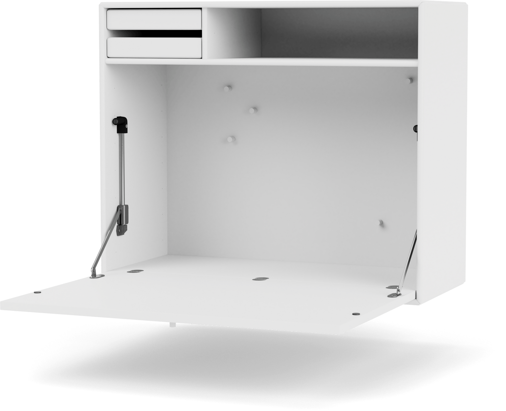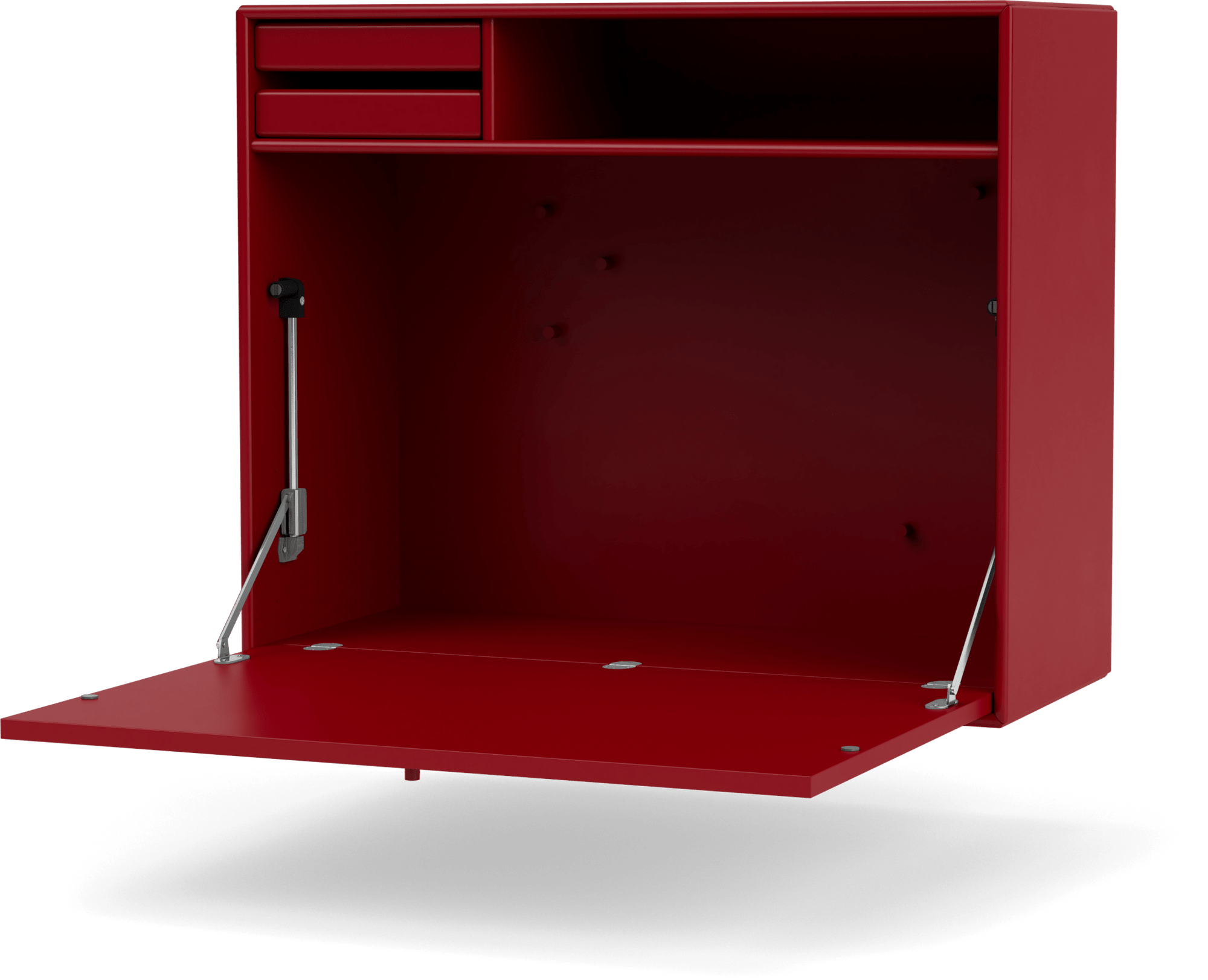 Perfect for smaller living and office spaces, the Studio Secretary hides away, blending in with its surroundings. The wall-mounted Studio Secretary doubles as discreet shelving and compact desk space, folding away when it is not needed to save space. A clever storage solution, the Studio Secretary features two small drawers and a shelf to keep workspace essentials both stored away and at the ready. The Studio Secretary is available in ten of Montana’s signature color lacquers and pairs perfectly with the Show Bookcase and Loom Slim Bookcase.