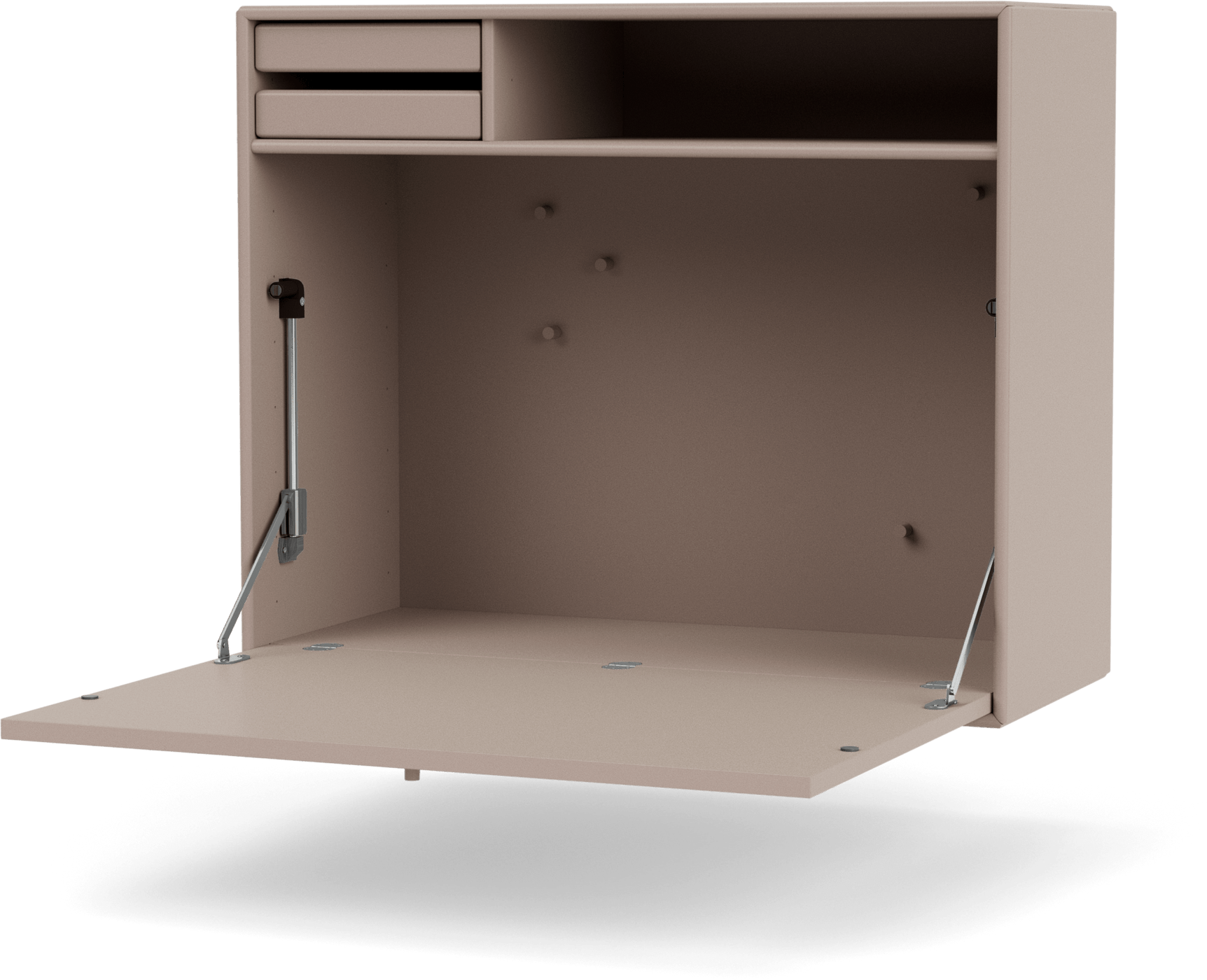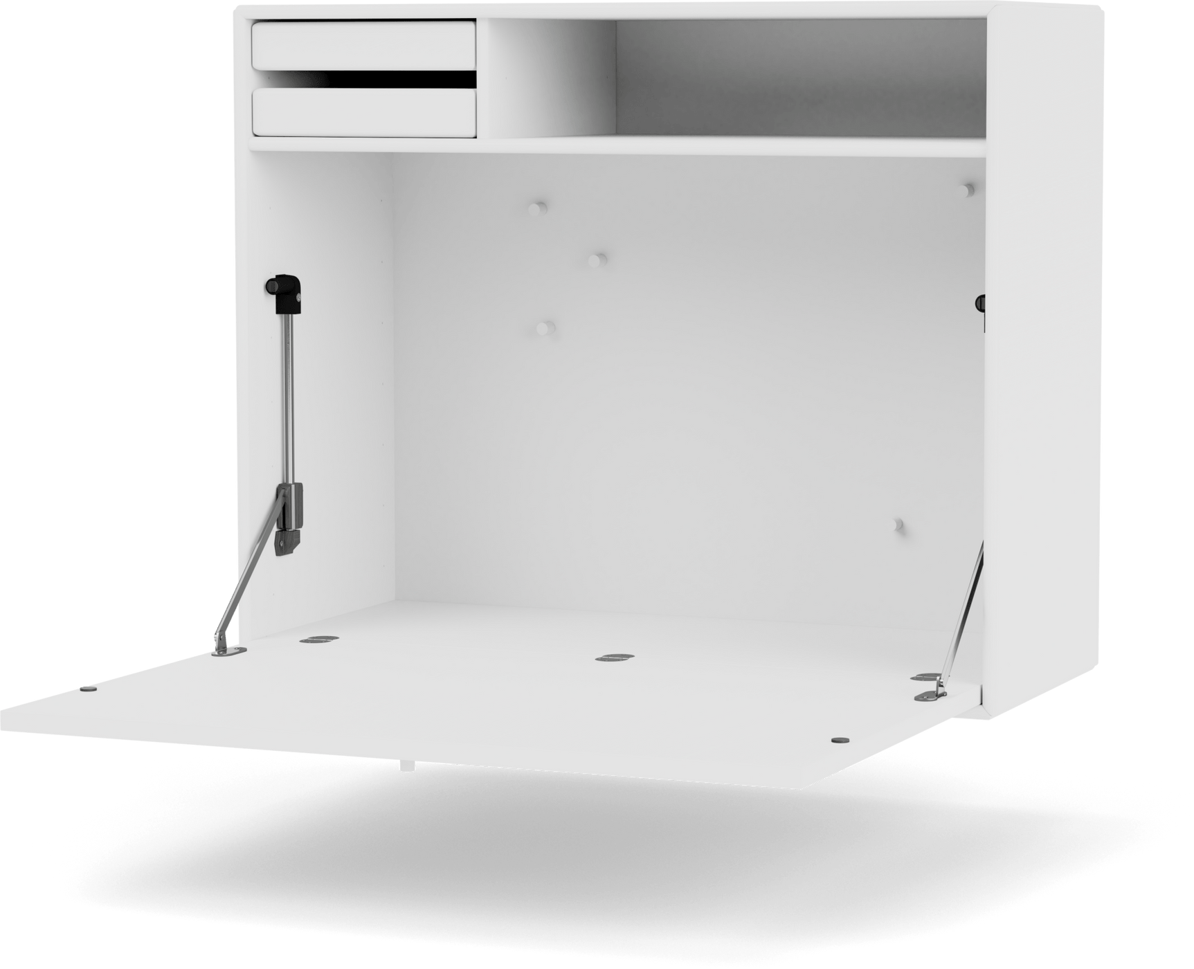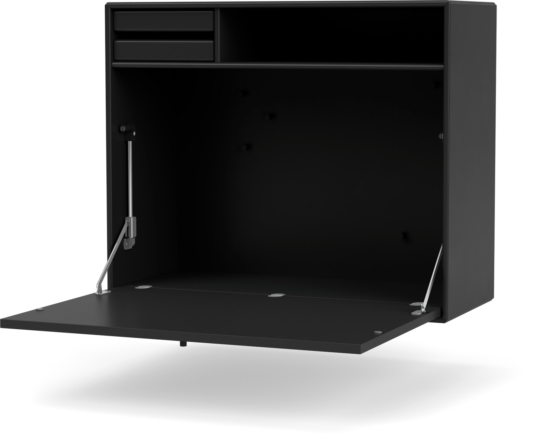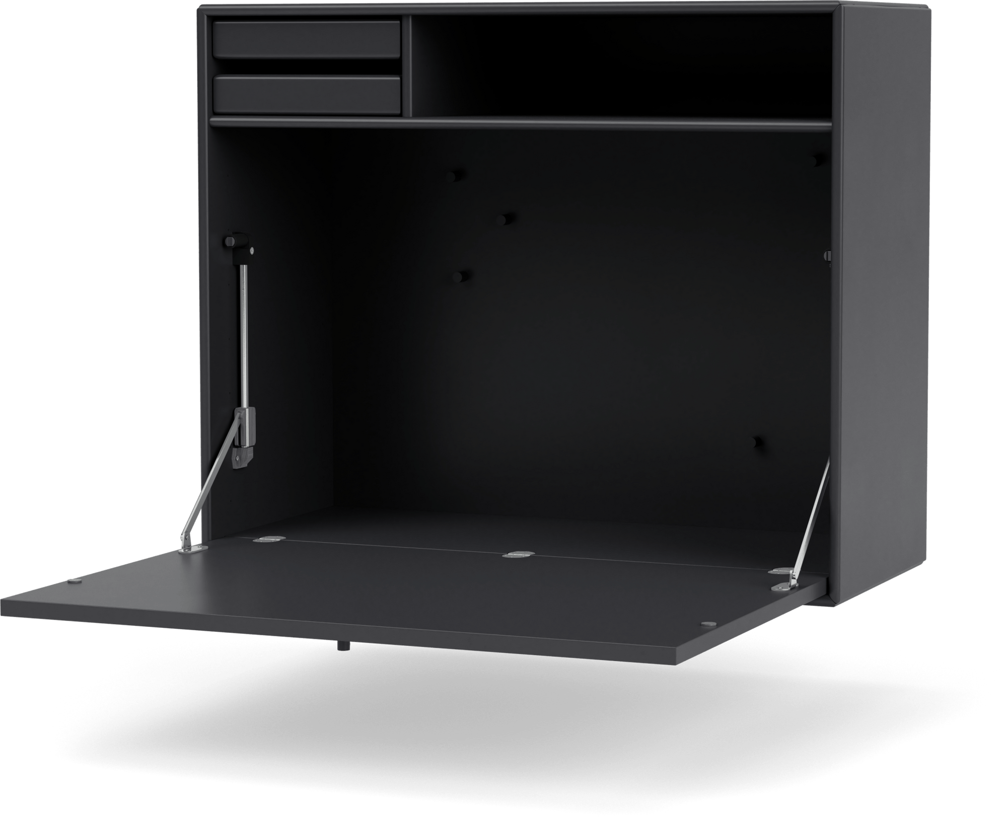 Perfect for smaller living and office spaces, the Studio Secretary hides away, blending in with its surroundings. The wall-mounted Studio Secretary doubles as discreet shelving and compact desk space, folding away when it is not needed to save space. A clever storage solution, the Studio Secretary features two small drawers and a shelf to keep workspace essentials both stored away and at the ready. The Studio Secretary is available in ten of Montana’s signature color lacquers and pairs perfectly with the Show Bookcase and Loom Slim Bookcase.