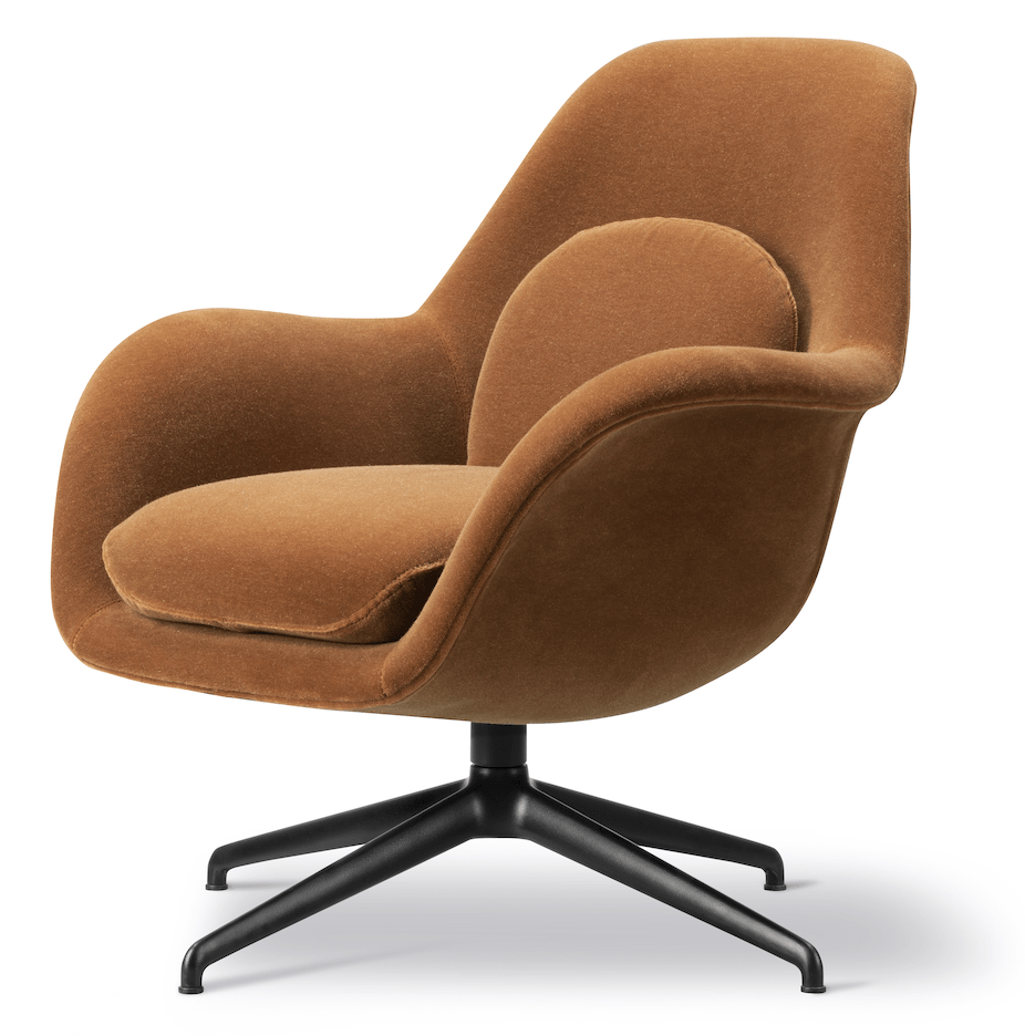 Perfect for smaller spaces, the Fredericia Swoon Lounge Petit Swivel Base combines style and practicality. The chair's open, welcoming design invites you to relax and unwind. Despite its petite size, it offers the same luxurious comfort as the larger Swoon Lounge, making it a versatile piece for any room. Whether beside a desk or in your living room, this chair ensures both form and function, perfect for modern living.