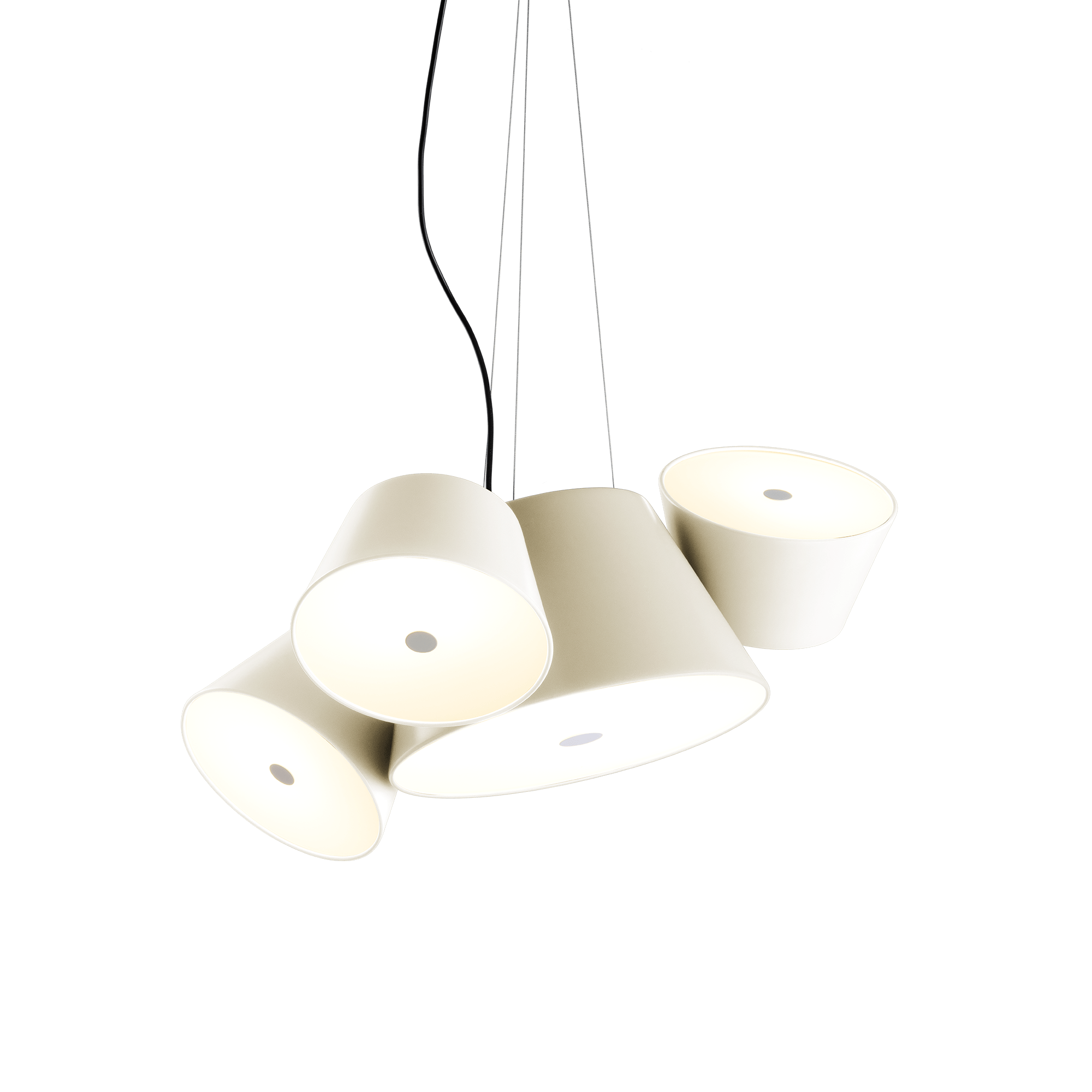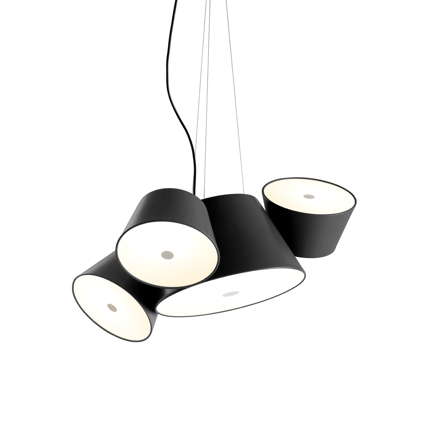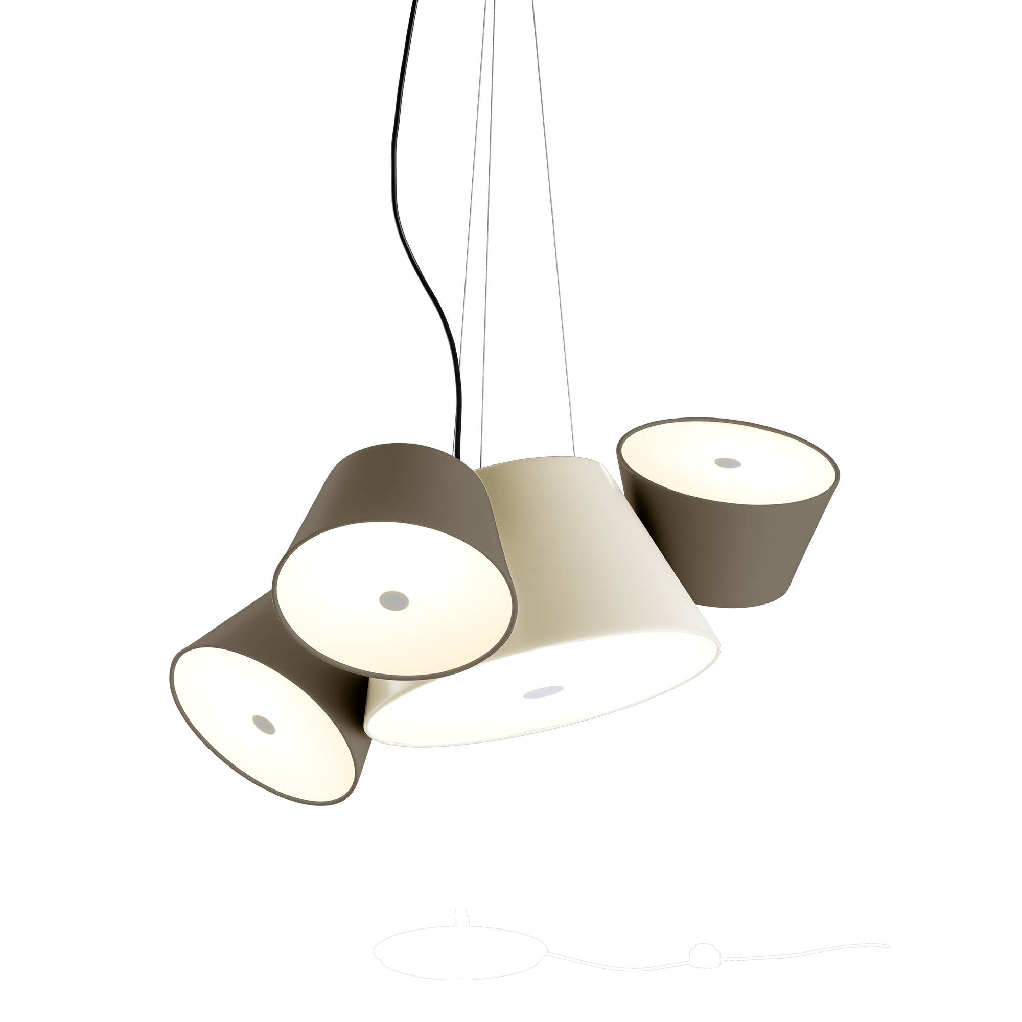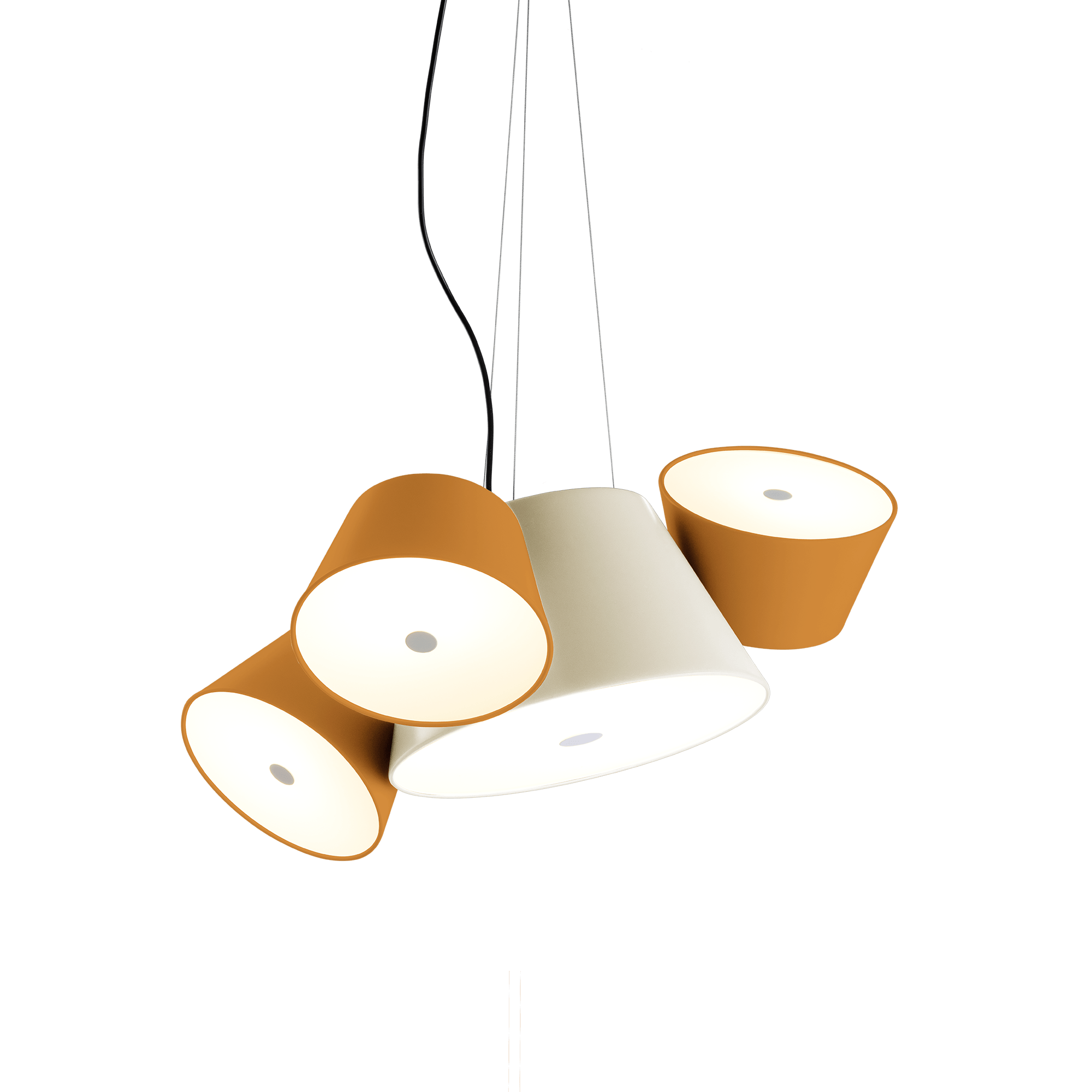 The Marset Tam Tam Pendant – 3 Shades transforms lighting into playful, purposeful design. Its main lacquered aluminum shade anchors three satellite shades that each rotate 360 degrees. As a result, you can direct light precisely where you need it—whether that's above a round coffee table, over a dining room chandelier, or across your favorite lounge chair. Plus, soft diffusers help cast a warm, welcoming glow.