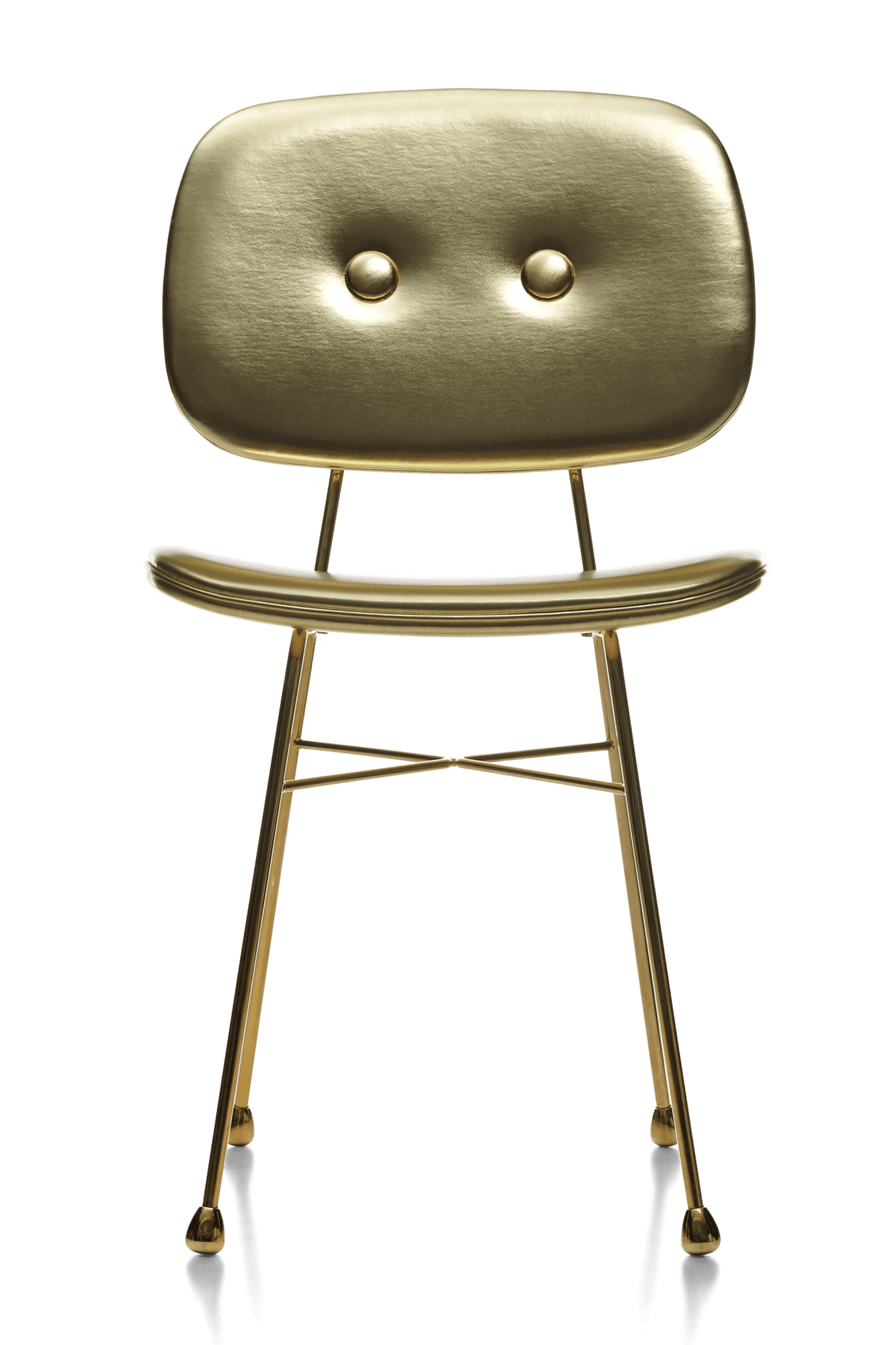 The Golden Chair by Moooi transforms a classic school chair into a bold statement piece. Inspired by vintage design, it features a sleek steel frame with a radiant golden finish. This contrast between industrial materials and warm tones creates a striking yet timeless look. With plush upholstery, the Golden Chair is both comfortable and stylish. Perfect for dining rooms, offices, or lounge areas, it enhances any space with elegance.