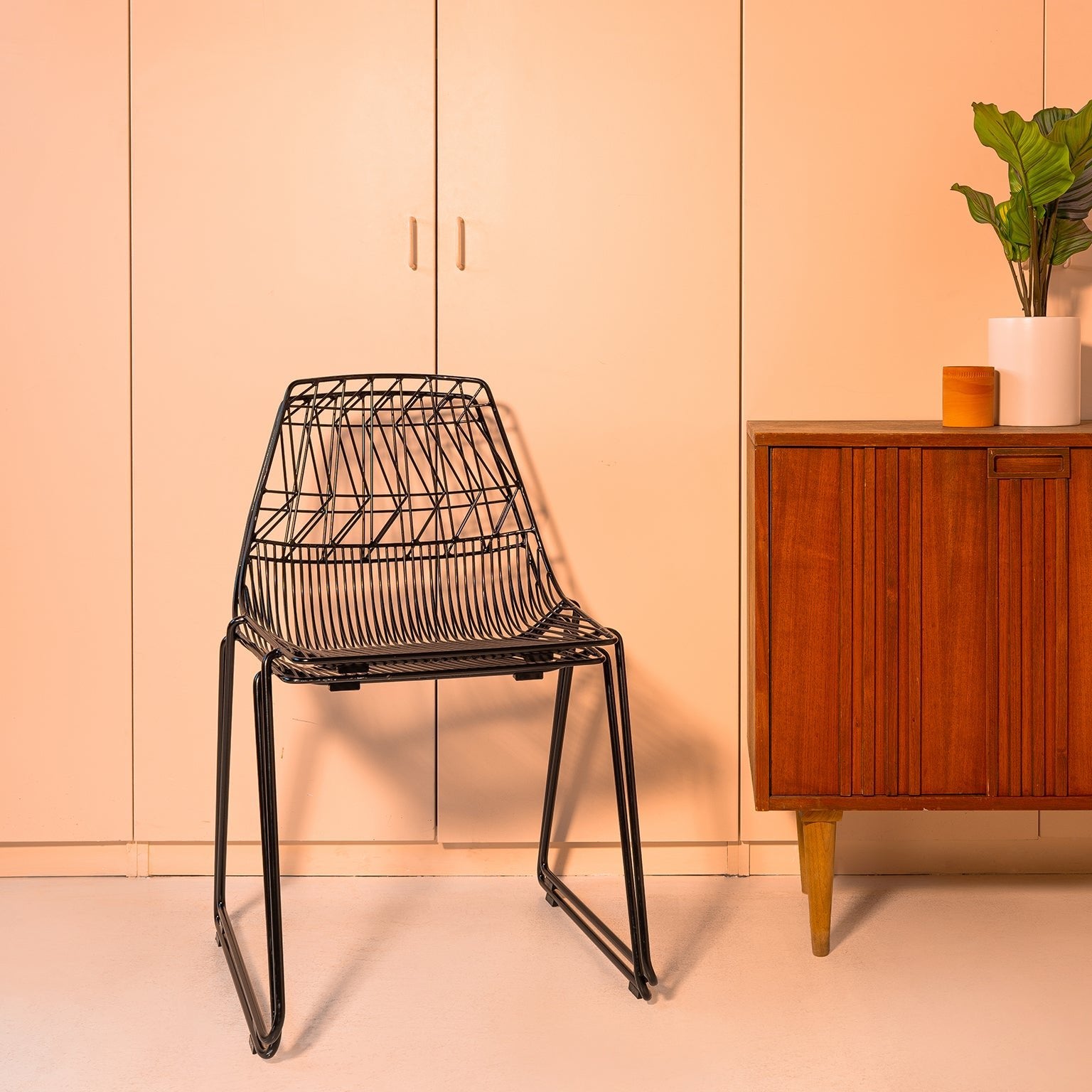 Bend Seating chairs are designed with intricate arrangements of lines in geometric patterns. Each chair is hand-crafted through a method of shaping and spot welding—each bend is arranged to ensure structural strength and angles that contour to the body. You’ll be surprised just how comfortable a wire chair can be!