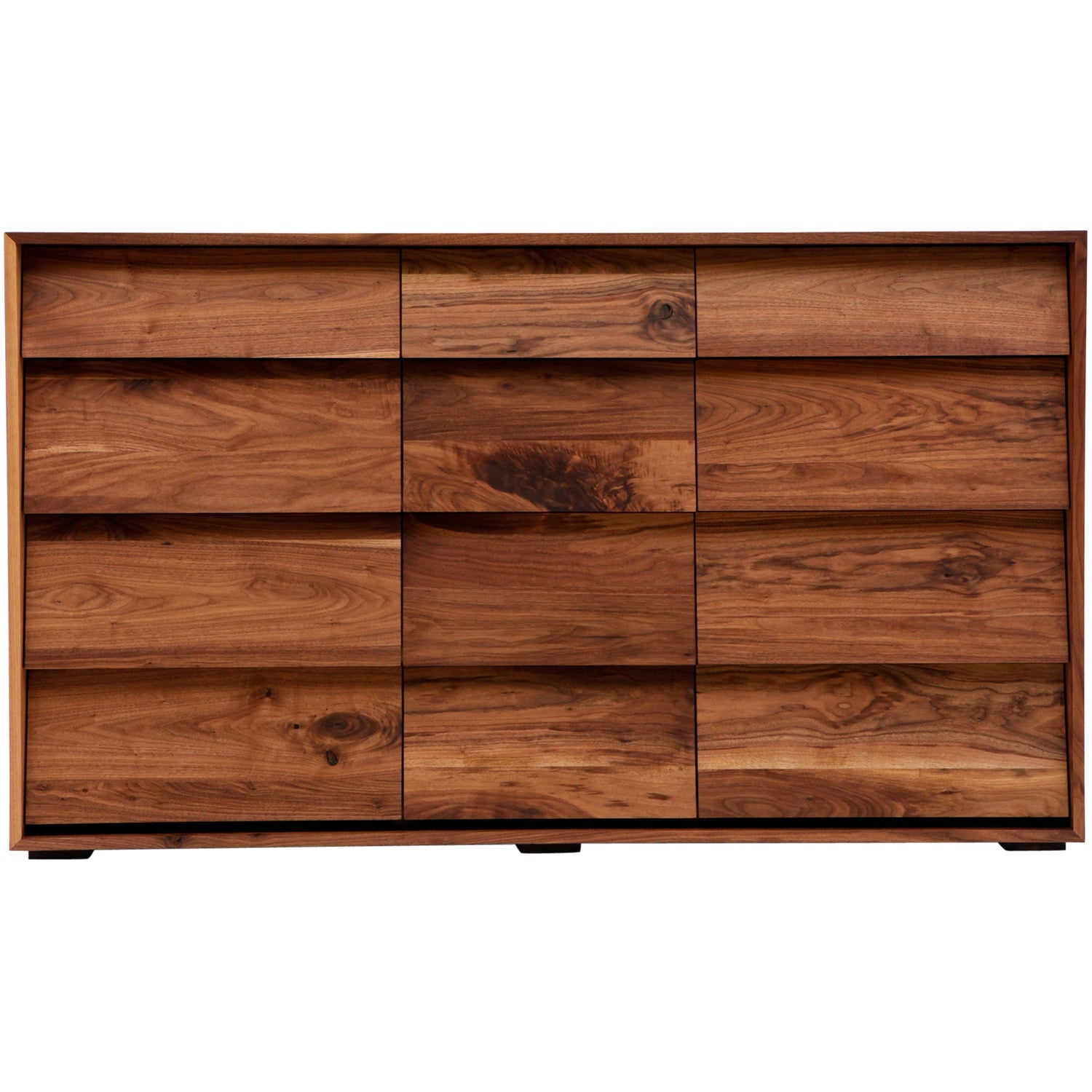 The Artless Oliver X-Large Dresser offers a bold blend of form and function. With twelve drawers in multiple sizes, this modern furniture piece provides impressive storage while staying visually clean. Instead of matching wood tones, it highlights the natural variation of solid walnut for a warm, layered look. As a result, the Oliver X-Large Dresser becomes a functional statement in both bedrooms and living room furniture setups.