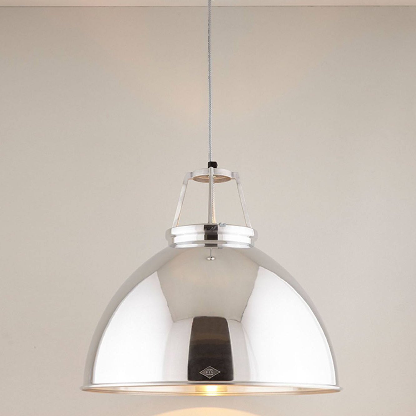 A new addition, the Titan 5 is a larger version of the classic Titan range for added impact. An original 1940s design, frequently seen in factories and industrial units of the period, the Titan range is available in three different sizes. Colors include polished aluminum, black, yellow, olive green, putty grey, red and white painted aluminum. Supplied with black braided cable and with a choice of contrasting colored interiors.