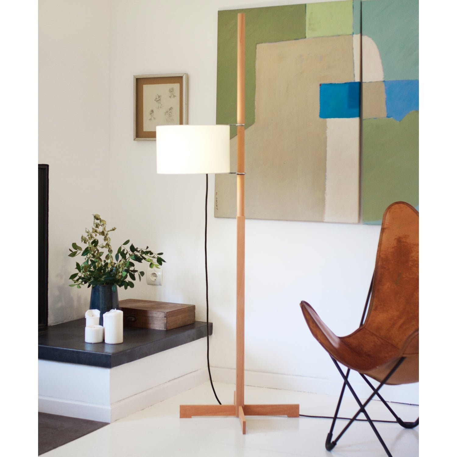 Not only does the TMM Floor Lamp provide adjustable lighting, but it also brings style to any space. With its cross-shaped base and smooth, natural wood finish, the lamp fits effortlessly into modern rooms. You can easily adjust the shade to your desired height and position, securing it with a rubber ring. Therefore, the TMM Floor Lamp offers both functionality and elegance for living rooms, bedrooms, or offices.