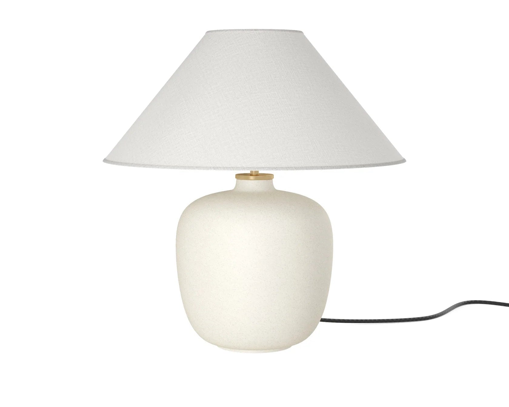 The Audo Copenhagen Torso Table Lamp combines sculptural ceramic with handmade linen in a design that feels like it came from your grandmother's home - in the best possible way. Created by Copenhagen-based studio Krøyer-Sætter-Lassen, the lamp draws inspiration from childhood memories of atmospheric objects shaped by human hands, bringing that same warmth and tactile quality to contemporary interiors. The gently rounded ceramic base comes in either deep black glazed or unglazed raw ceramic, each finish offering different character - the black feels more formal and modern while the unglazed brings earthy, organic texture. At 22.4 inches tall with a 13.8-inch diameter shade, the lamp provides substantial presence on side tables, nightstands, or console tables without overwhelming smaller surfaces. The handmade linen shade diffuses light beautifully, creating soft ambient glow rather than harsh direct illumination, perfect for reading corners, bedside tables, or creating cozy atmosphere in living spaces. What makes the Torso genuinely user-friendly is the brass touch dimmer positioned on top of the shade, offering three brightness levels you adjust with a simple tap - no fumbling for switches or dealing with cords. The milled solid brass details add subtle luxury and weight that make the lamp feel considered and substantial rather than cheaply produced. The 78.7-inch flexible PVC cord gives you positioning freedom without requiring proximity to outlets, and the included 6W LED bulb means you're set up immediately without hunting for compatible bulbs. The tactile linen shade invites touch in a way smooth glass or metal wouldn't, reinforcing that handmade, homey quality Krøyer-Sætter-Lassen intentionally designed. The contrast between rough ceramic base and airy linen shade creates visual interest through material juxtaposition while maintaining an understated, sculptural expression that works across different interior styles from Scandinavian minimalism to more traditional settings. Audo Copenhagen collaborated with Krøyer-Sætter-Lassen on the Torso lamp as part of their commitment to working with designers who bridge art and design through honest, logical, and sculptural objects. Founded in 2016 by Mads Sætter-Lassen and Emil Krøyer, the studio brings strong cultural understanding and Danish design heritage to their work, creating pieces that feel timeless rather than trendy. Their inspiration from grandmother's homes filled with objects shaped by human hands translates into lighting that feels personal and warm rather than cold or industrial. The Torso lamp reflects Audo Copenhagen's "soft minimalism" philosophy through its gentle curves, natural materials, and subdued presence that enhances spaces without demanding attention. The handmade linen shade and carefully crafted ceramic base demonstrate the kind of material quality and craftsmanship Audo Copenhagen prioritizes, ensuring pieces age gracefully and remain relevant through changing design trends. Details