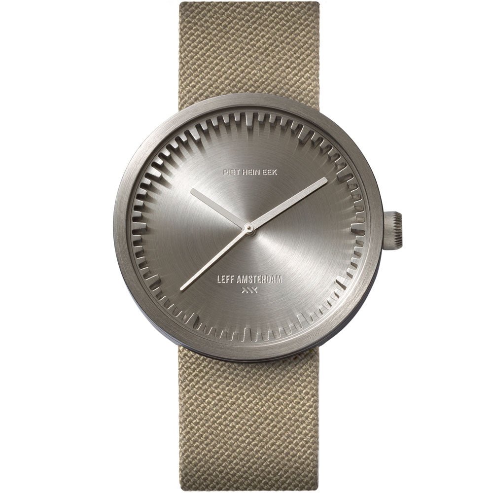 The Leff Amsterdam Tube Watch D42 is a distinctive timepiece that combines strength and sophistication. Crafted with a precisely cut ring and high-quality 316L stainless steel, it offers a refined yet industrial character. Moreover, the watch features 10 ATM water resistance and a sapphire crystal lens, ensuring durability for everyday use. Lighter and more delicate than the S42, this watch is an excellent choice for those with smaller wrists, offering both comfort and style without compromising on strength or functionality.