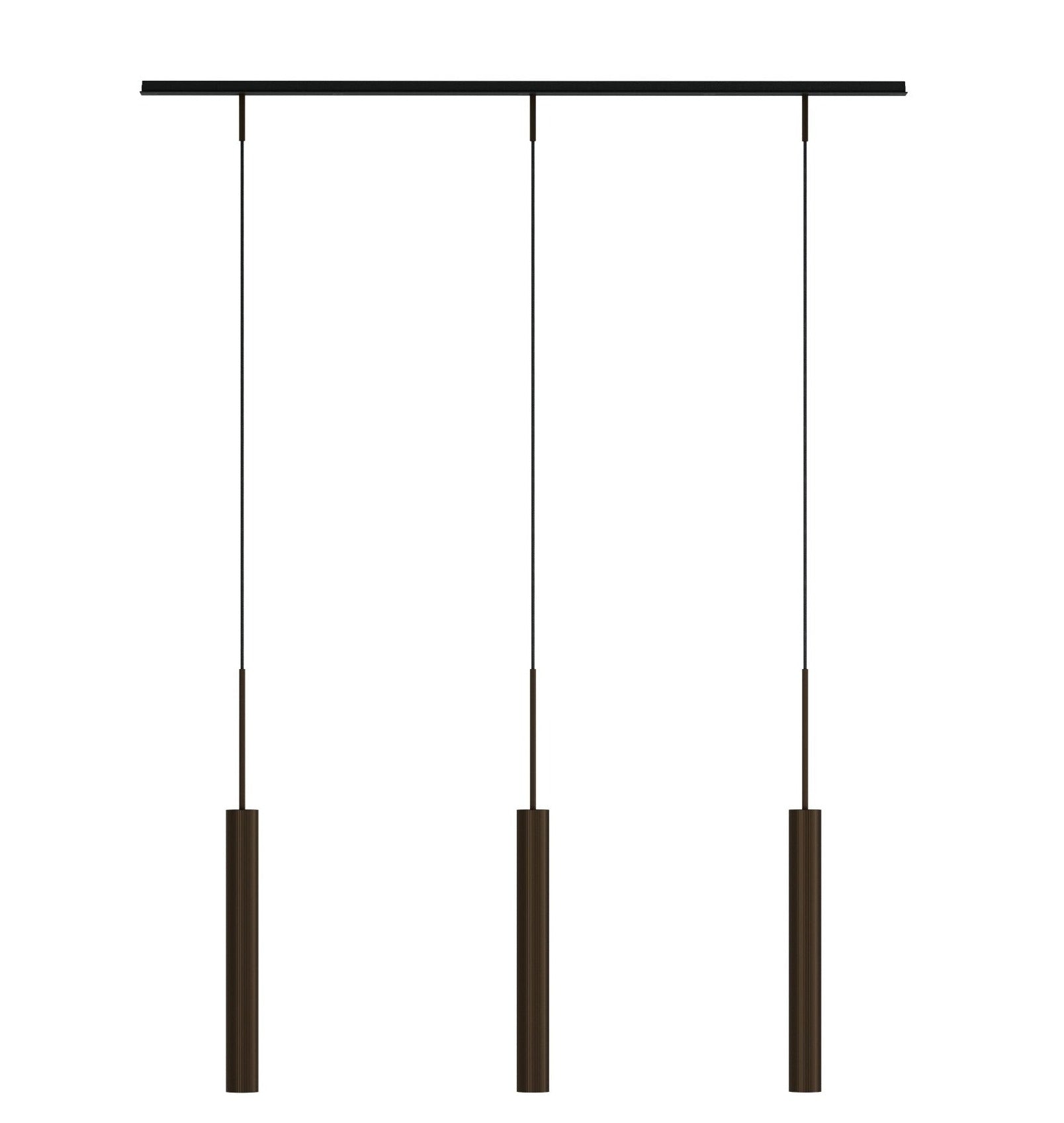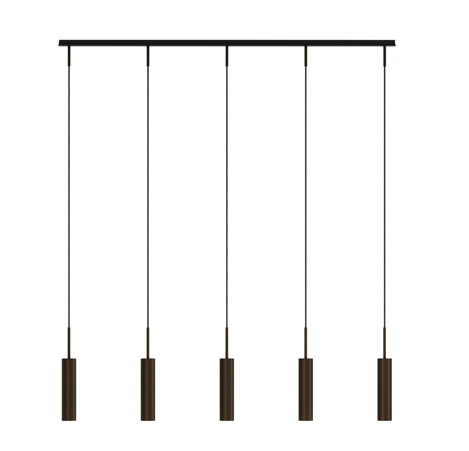 The Tubulaire Rail Pendant from Audo Copenhagen offers a stylish blend of industrial charm and modern design. Made from anodized aluminum with a bronzed brass finish, this Audo lamp features either three or five large pendants. It is perfect for illuminating dining areas, kitchens, or workspaces. As a result, the Tubulaire Rail Pendant effortlessly combines functionality with sophisticated style, transforming any space.
