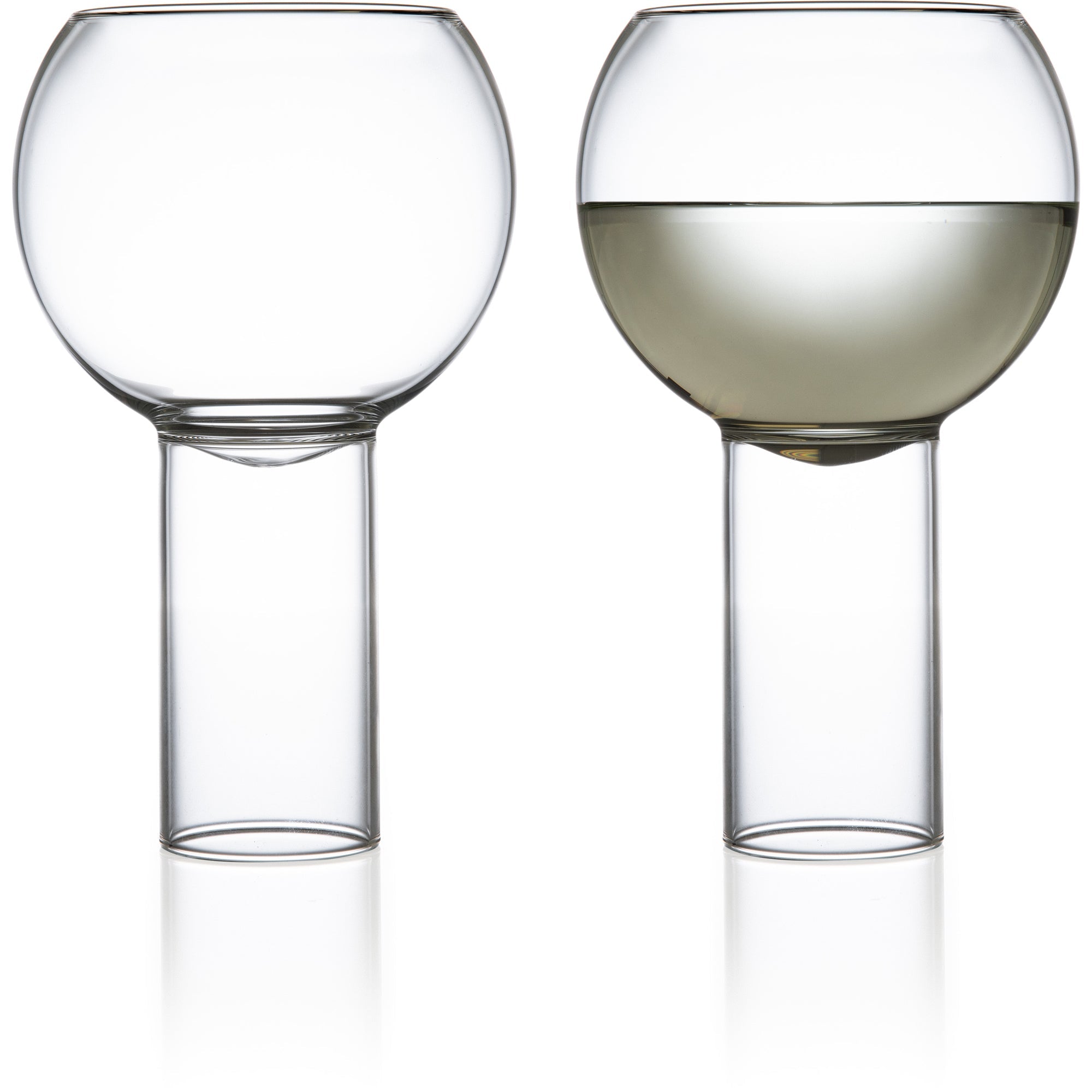 The small bistro wine glasses found in European cafes and pubs are the inspiration for the Tulip Collection by Fferrone. The bowl of the glass sits down in the cylinder stem which highlights the intersection of the pieces. The Tulip Collection has three different size bowls with either a tall or low stem so it can be mixed or matched to fit any need.