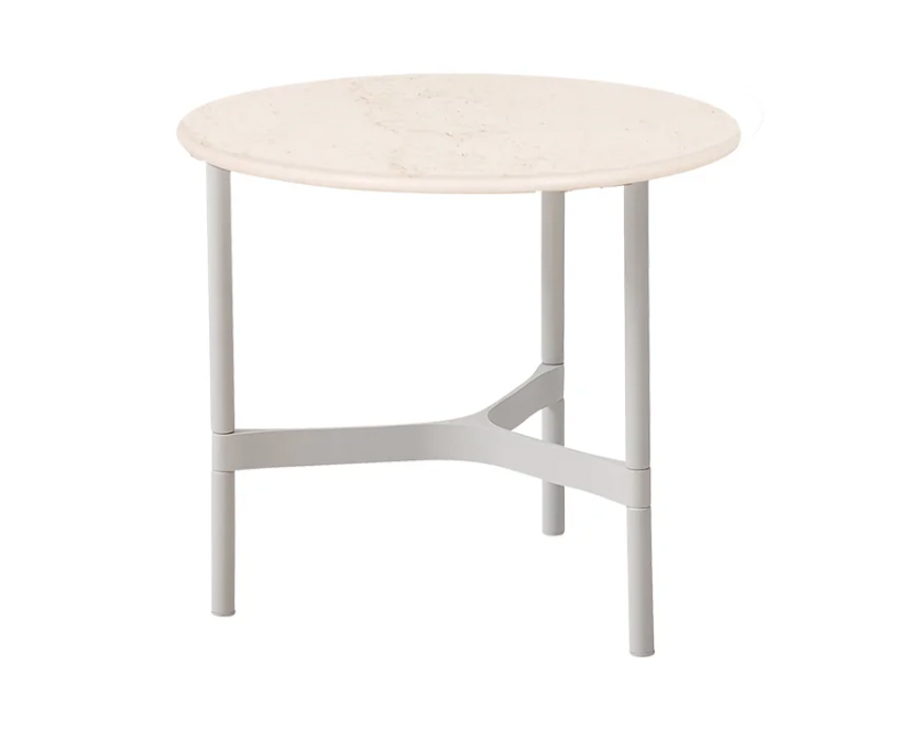 Twist is an elegant, decorative and practical coffee table/side table for the outdoor environment. The duo behind the design is byKATO, known for their contemporary and detailed design with the sense of high-quality craftsmanship. The Twist table is the perfect addition to the outdoor lounge environment, or as a small sidetable to accompany your favorite seat in the garden. Twist is made of a lightweight frame in white powdercoated aluminium, and a tabletop in the durable material solid surface. The frame of the table is simple with a twist, to add an extra dimension to an otherwise simple coffee table. When fall comes, the Twist table can easily be moved indoors to match the interior in the home.