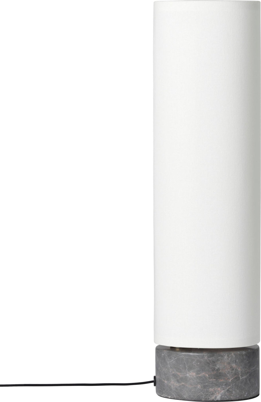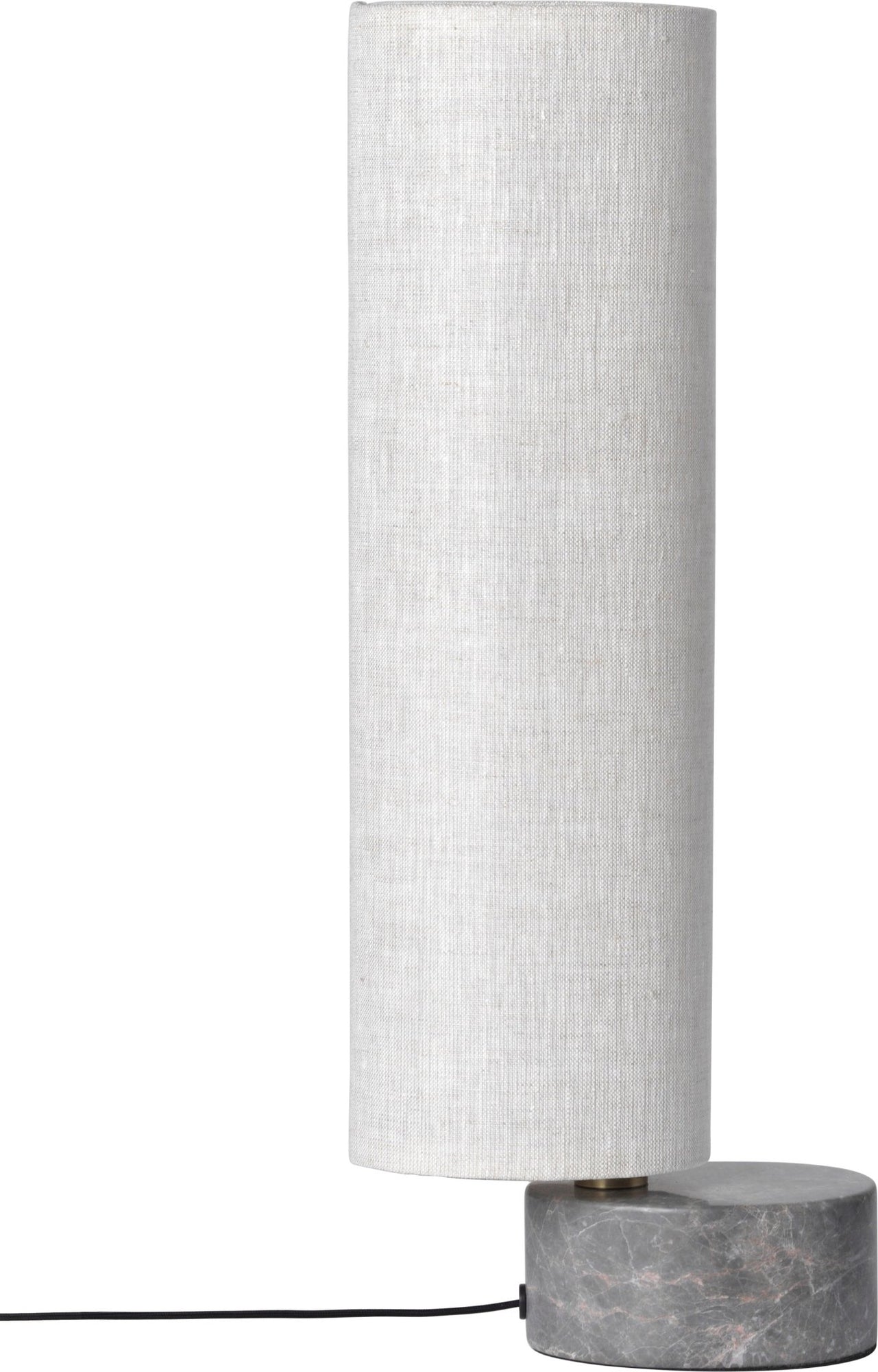 Crafted from natural canvas, white linen, and gray marble, the Unbound Table Lamp features a shade that can rotate and move freely around a central post which houses a series of lights. This fun, hidden detail expands the versatility of the light, making it a fantastic option for any room of the house.