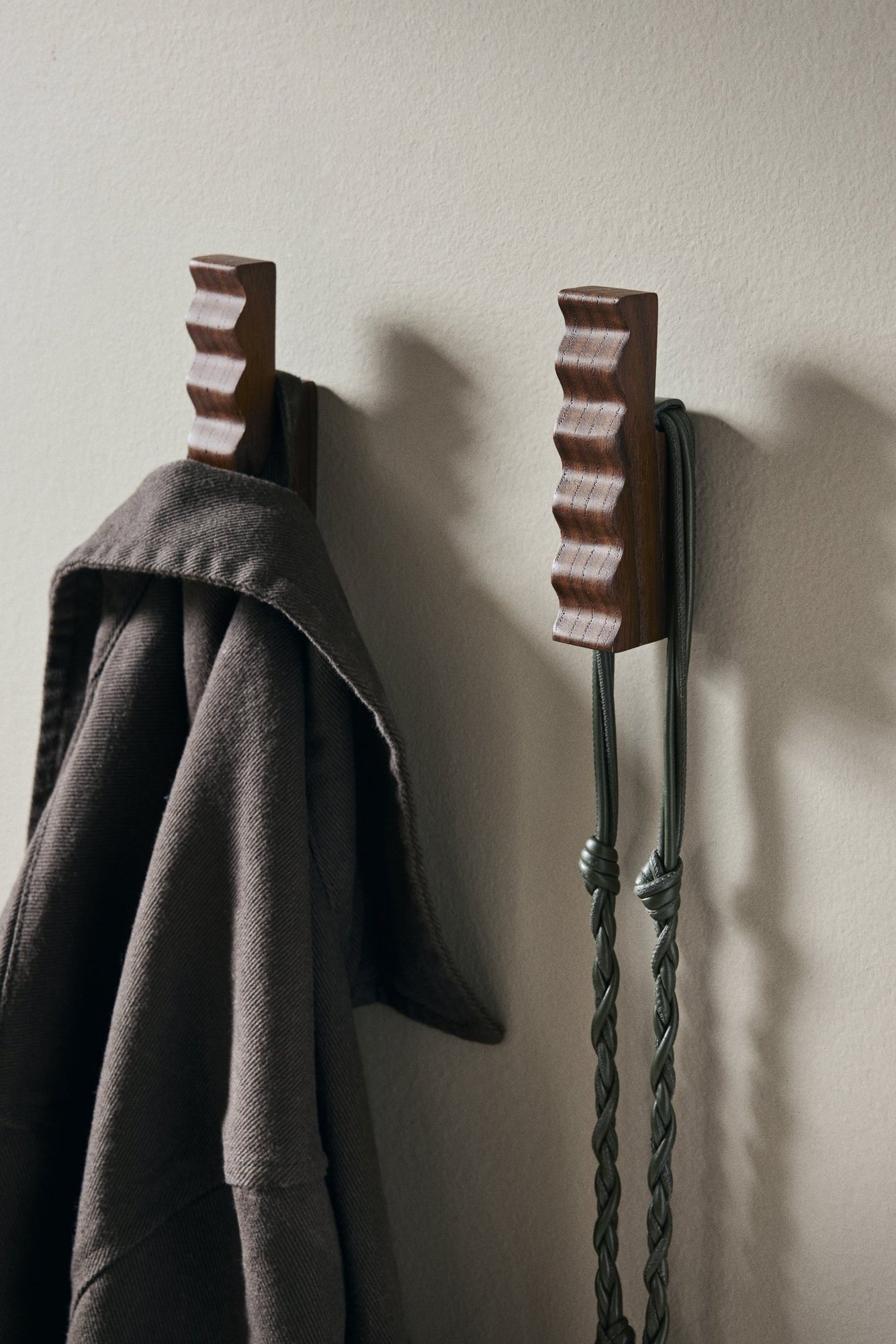 The Unda Hooks unite utilitarian function with an alluring aesthetic. Named after the Latin word for 'wave', the Unda Hooks are crafted from FSC™ certified ash wood and have a soft, rippled design. The hooks provide an elegant and functional detail to your kitchen, hallway, bathroom or bedroom.