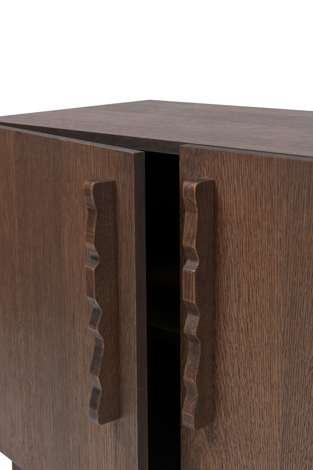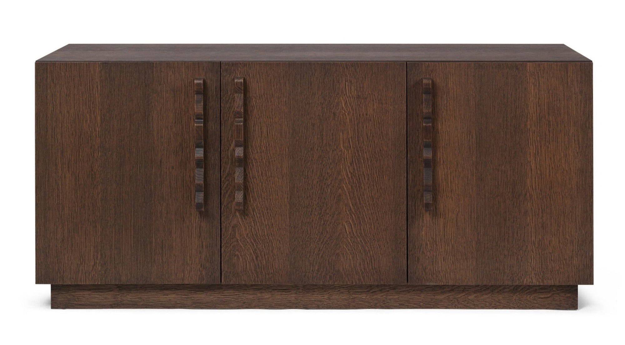 The Ferm Living Unda Sideboard features dark stained FSC™ certified oak veneer that brings warmth to any space. Additionally, its playful rippled handles add tactile charm and contrast with the smooth wood surface. Moreover, the modular interior shelves let you customize storage based on your needs. Whether paired with living room furniture or modern lighting, this sideboard enhances Scandinavian design in your home.