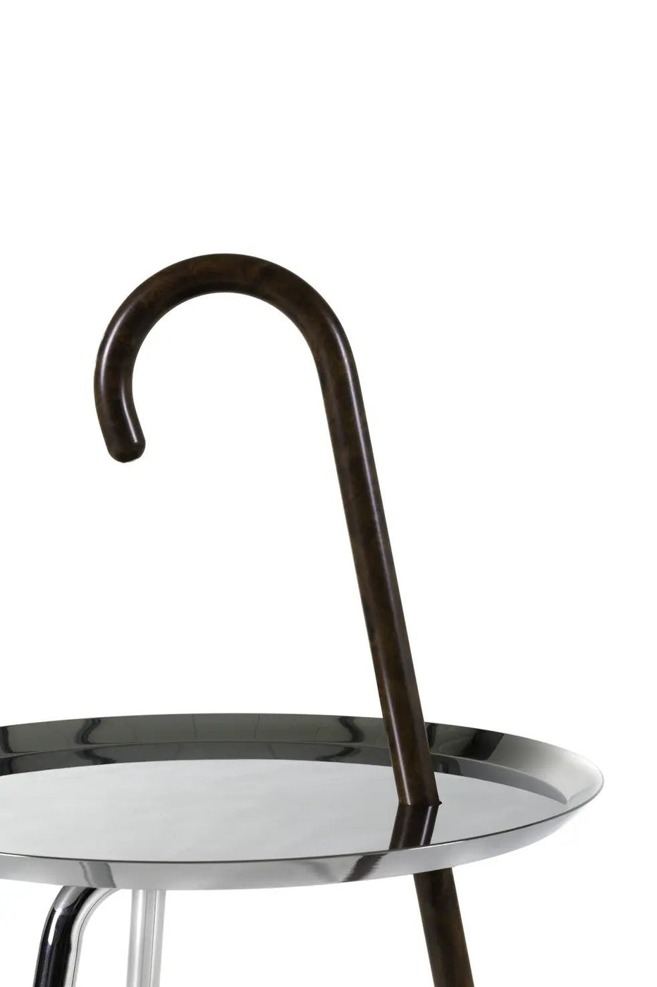 The Moooi Urbanhike brings this unexpected wanderlust vibe to side tables that somehow makes perfect sense once you see it. Marcel Wanders designed this thing back in 2012, and honestly, it's still one of those pieces that makes people pause and ask "wait, what is that?" The chrome steel construction gives it this sleek, modern feel, but then there's that third leg shaped like a hiking staff that completely changes the whole personality. At 17.3 inches across with a compact footprint, it fits beautifully next to sofas or chairs without taking over the space, and the wood transfer detailing adds just enough warmth to keep the chrome from feeling cold. The proportions are really well balanced too - tall enough at 30 inches to be useful but not so high that it feels awkward next to standard seating.
