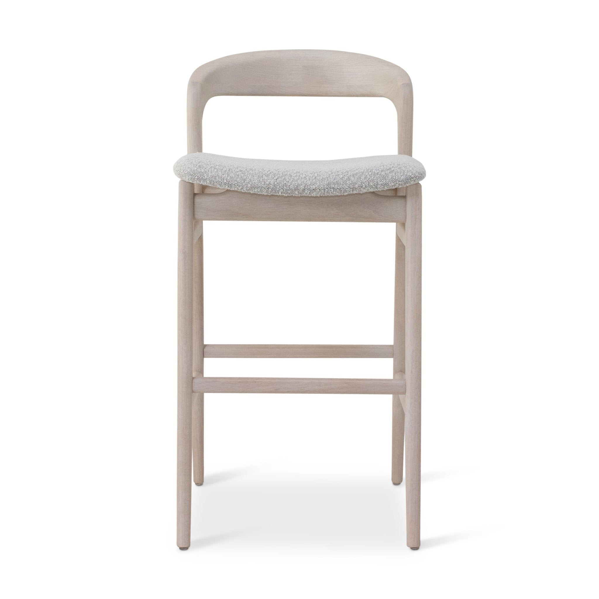 - Materials: Bouclé Fabric, Fiber Wrapped Foam, Engineered Wood, Solid Tauari Wood
