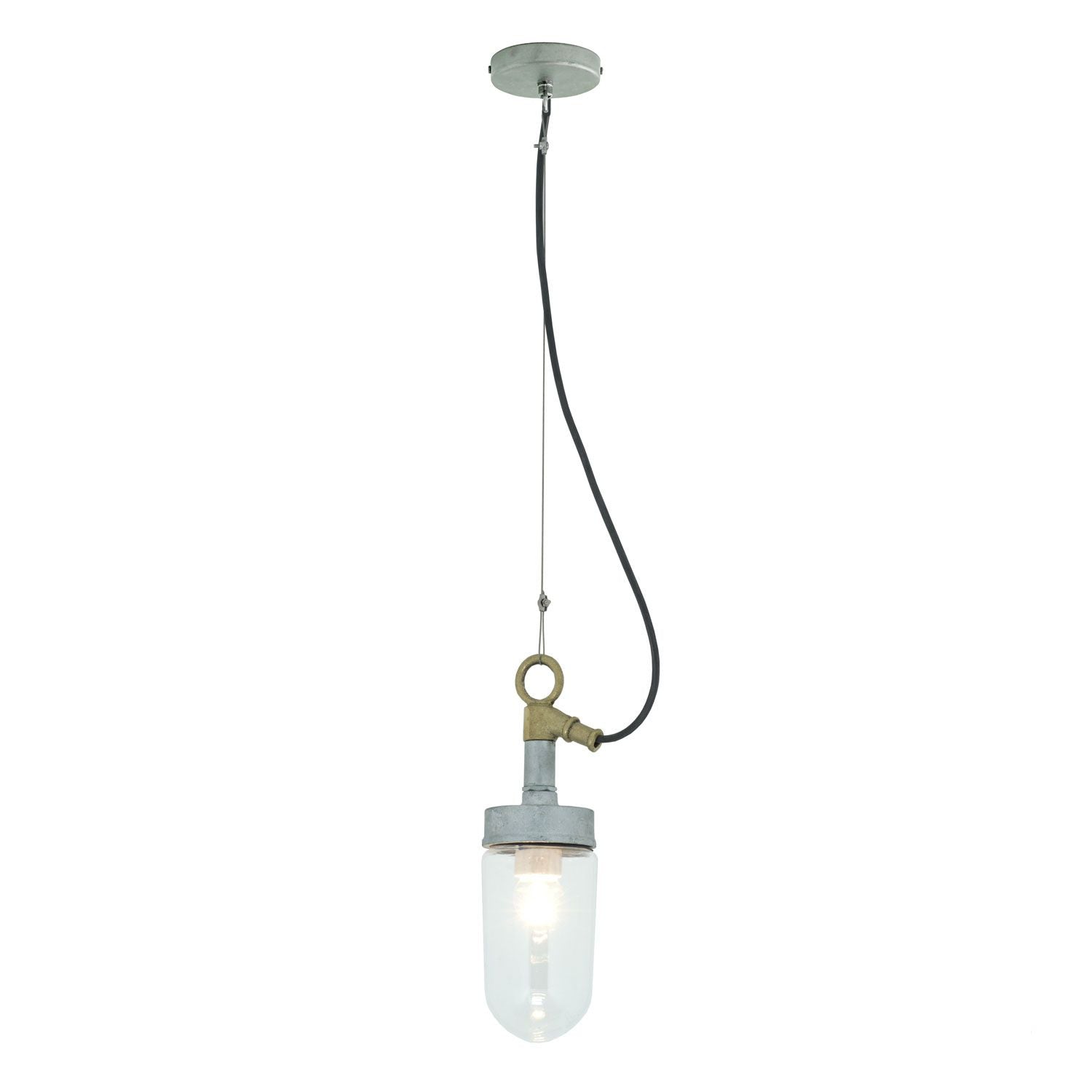 Designed for durability, the Well Glass Pendant features a handblown glass shade, suspended by a brass suspension loop and stainless steel wire. Additionally, the 5-foot chain offers flexible installation options. Whether used in a bathroom light fixture or as a focal point in another room, this pendant light brings beauty and functionality to your space.