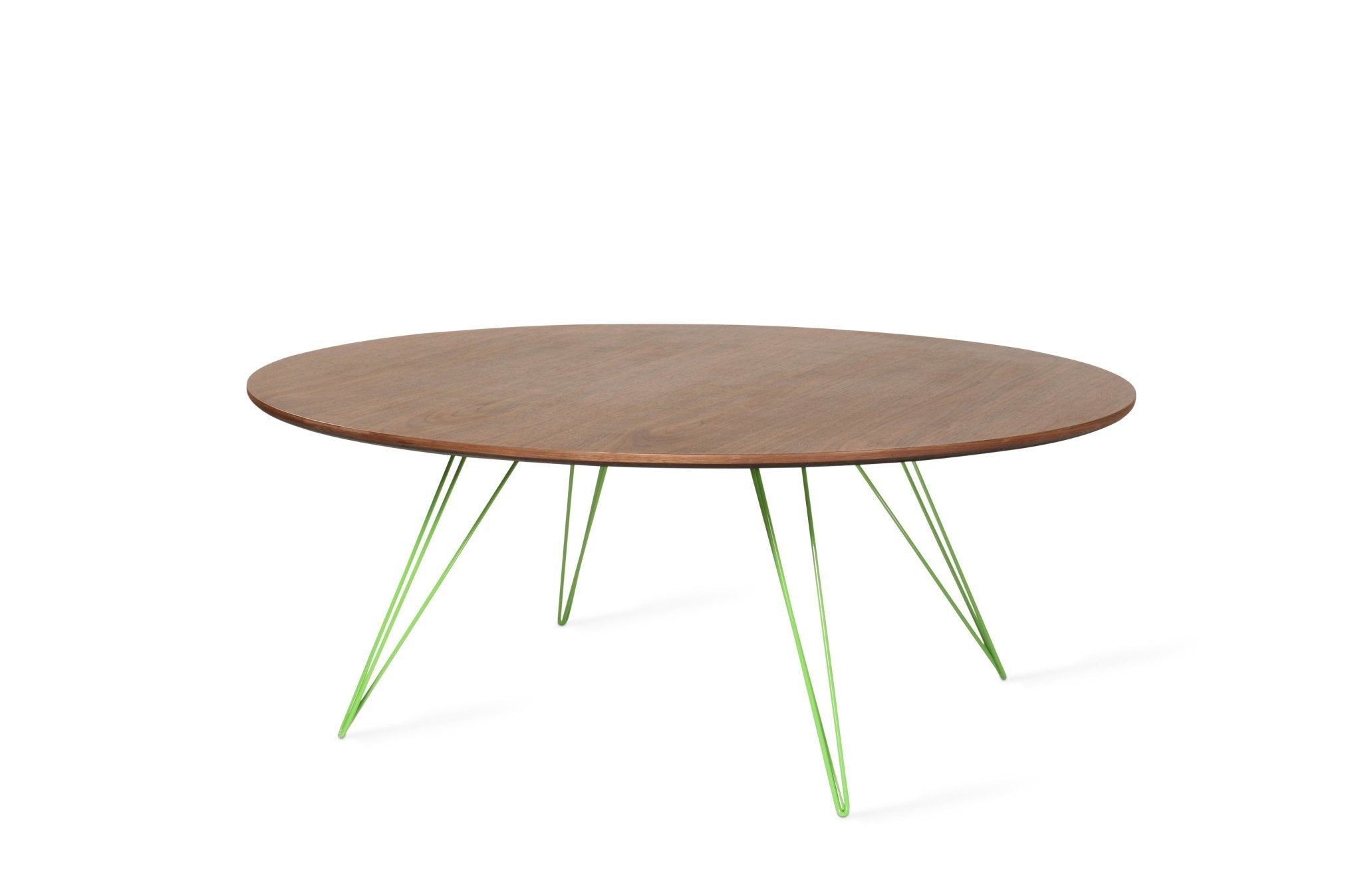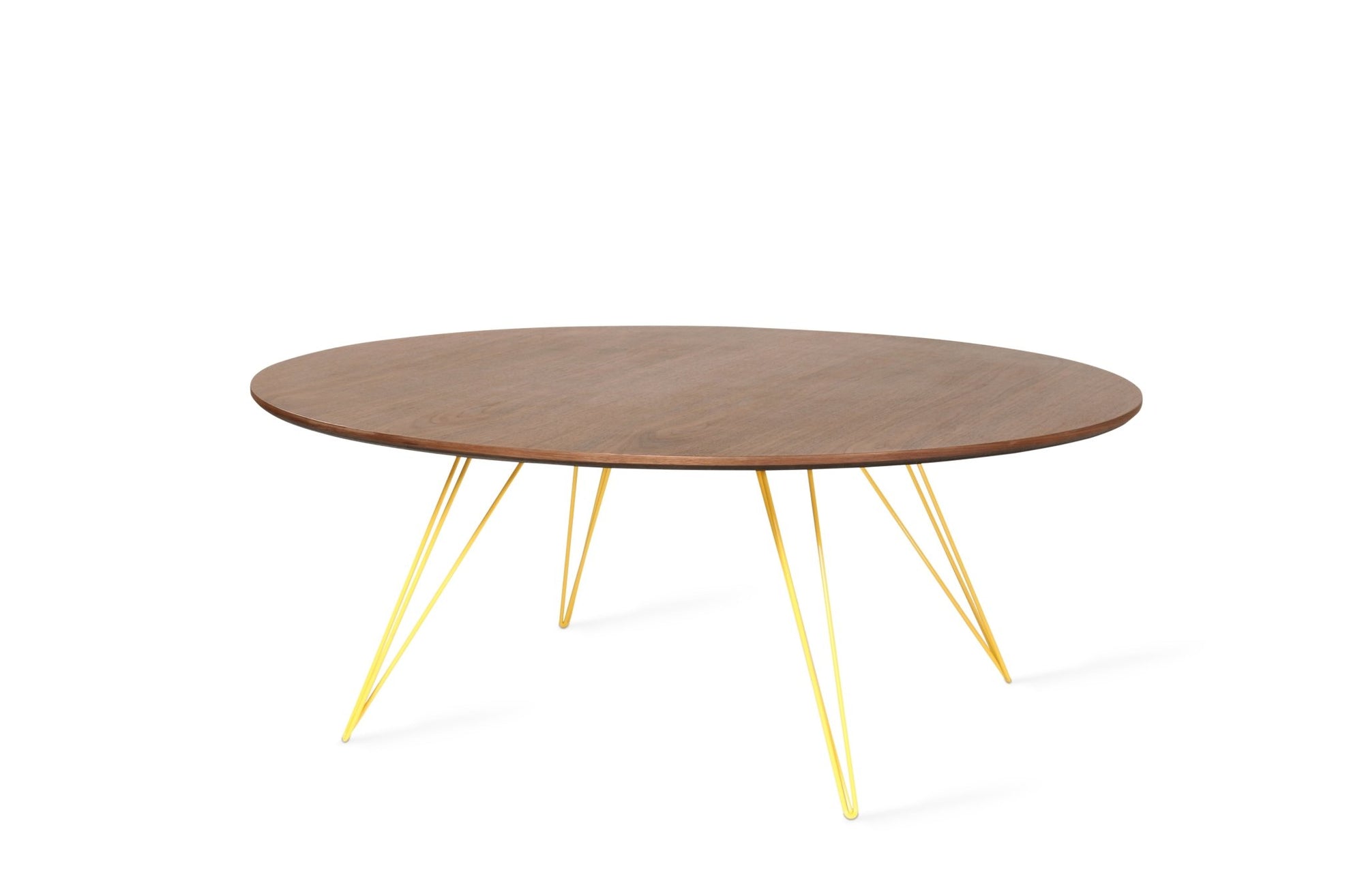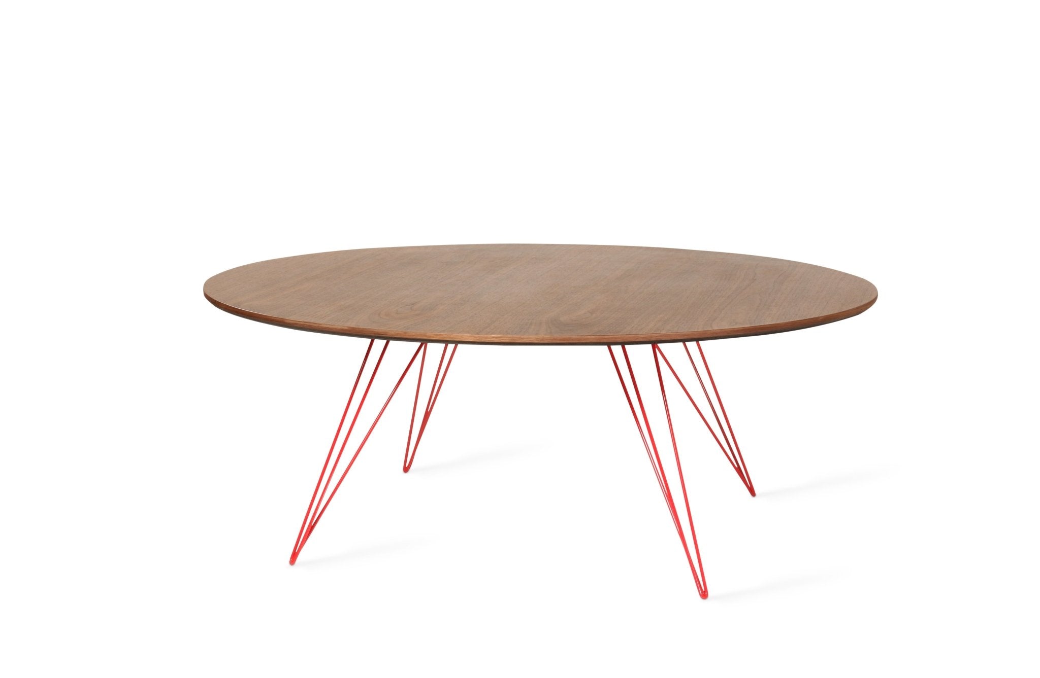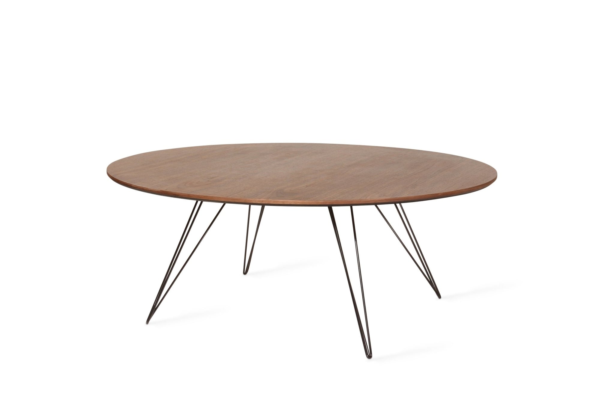 The Tronk Williams Coffee Table - Large Circle brings a refined industrial aesthetic to any space, with its sculptural metal hairpin legs and a warm, natural walnut veneered tabletop. This combination of materials adds both elegance and functionality to Larger rooms or offices. Its compact size makes it an ideal choice for contemporary living, offering an easy way to introduce modern design elements without overcrowding a room. Whether you’re enhancing your home or office, this coffee table becomes the perfect centerpiece.