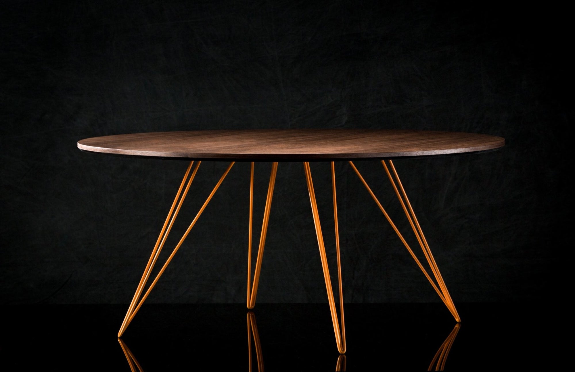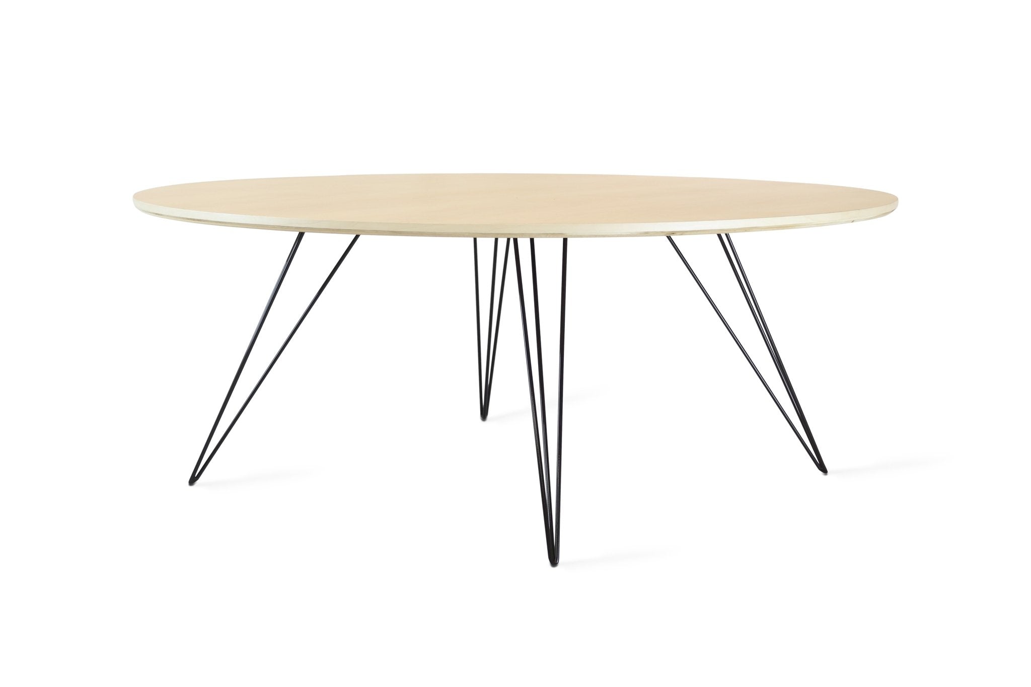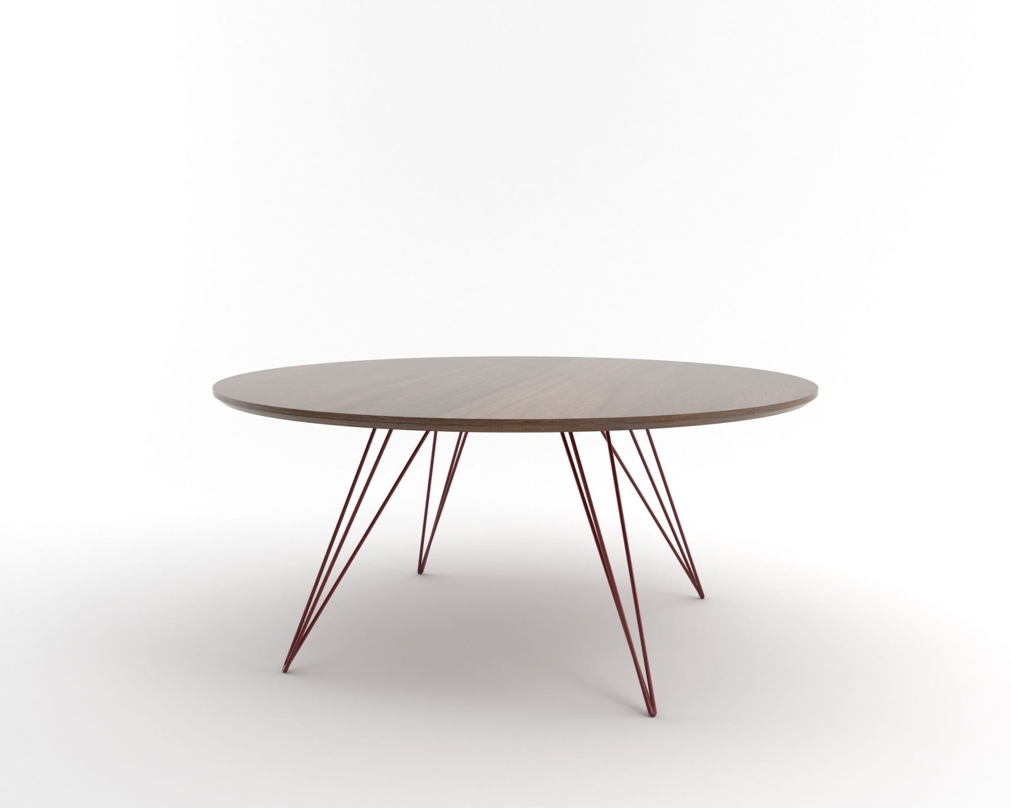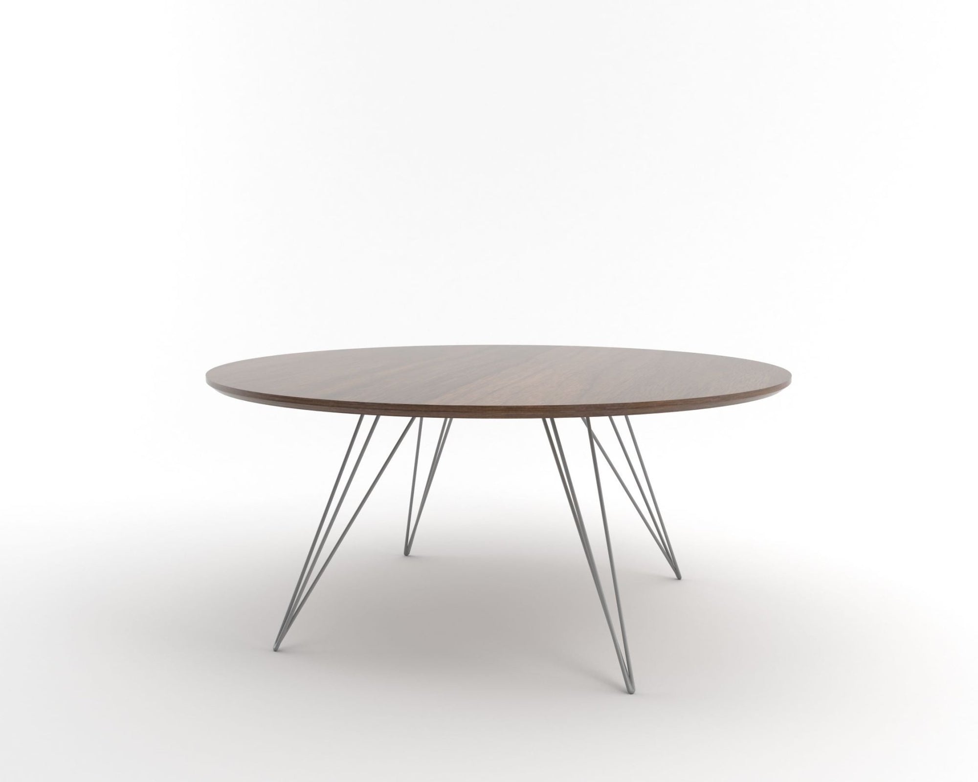 The Tronk Williams Coffee Table - Large Circle brings a refined industrial aesthetic to any space, with its sculptural metal hairpin legs and a warm, natural walnut veneered tabletop. This combination of materials adds both elegance and functionality to Larger rooms or offices. Its compact size makes it an ideal choice for contemporary living, offering an easy way to introduce modern design elements without overcrowding a room. Whether you’re enhancing your home or office, this coffee table becomes the perfect centerpiece.