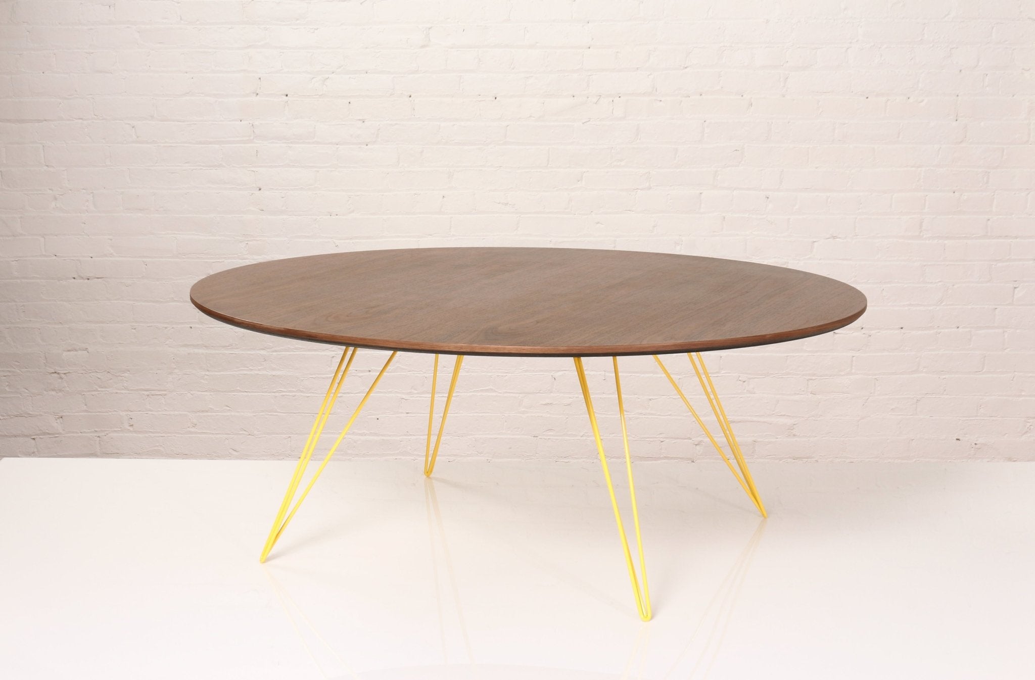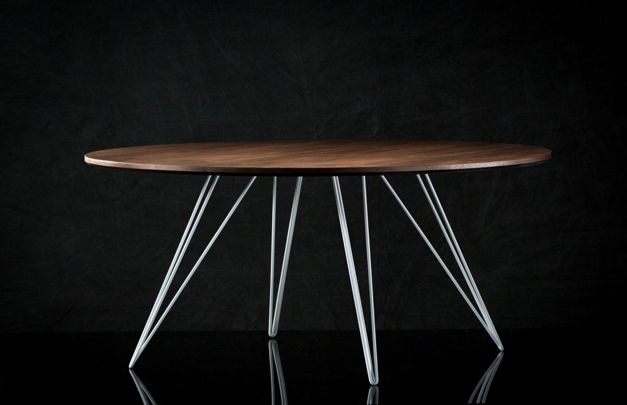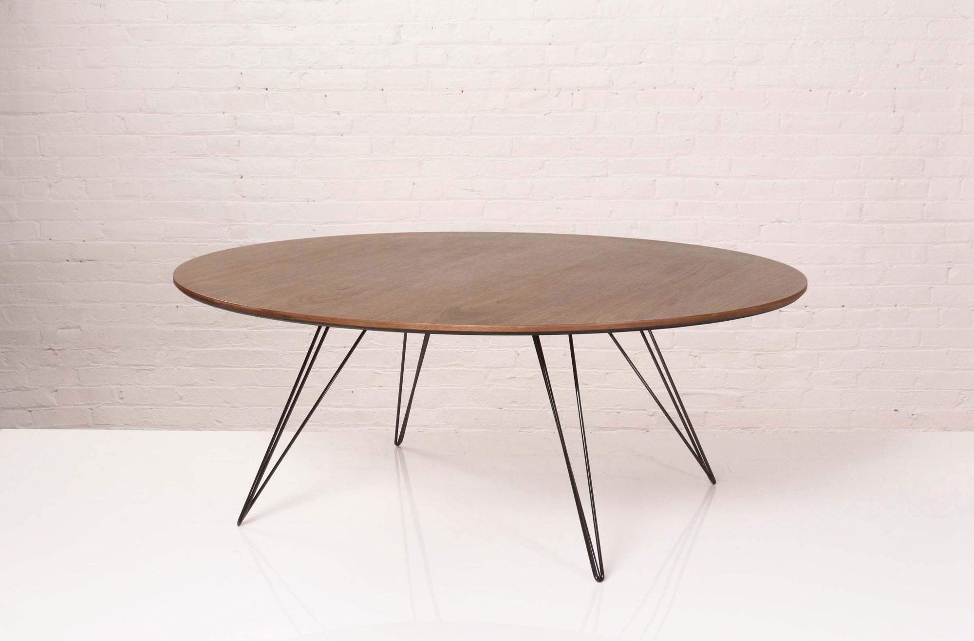 The Tronk Williams Coffee Table - Large Oval brings a refined industrial aesthetic to any space, with its sculptural metal hairpin legs and a warm, natural walnut veneered tabletop. This combination of materials adds both elegance and functionality to Larger rooms or offices. Its compact size makes it an ideal choice for contemporary living, offering an easy way to introduce modern design elements without overcrowding a room. Whether you’re enhancing your home or office, this coffee table becomes the perfect centerpiece.