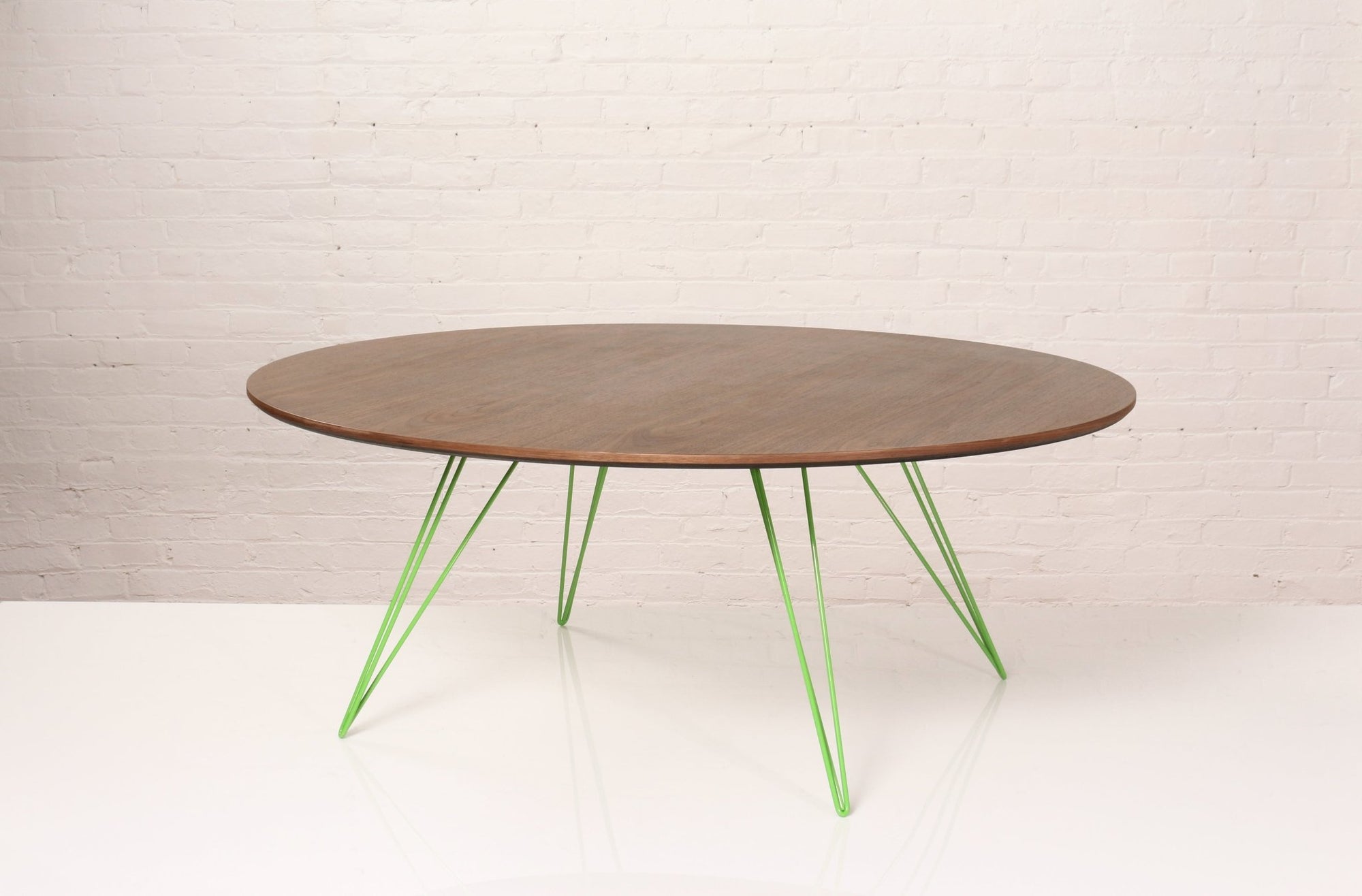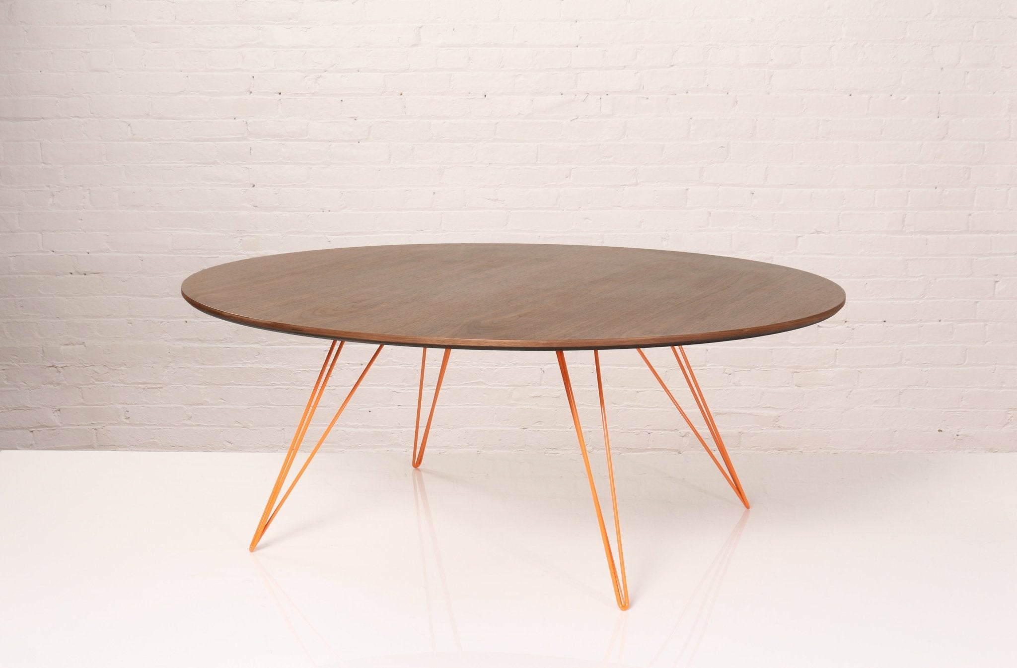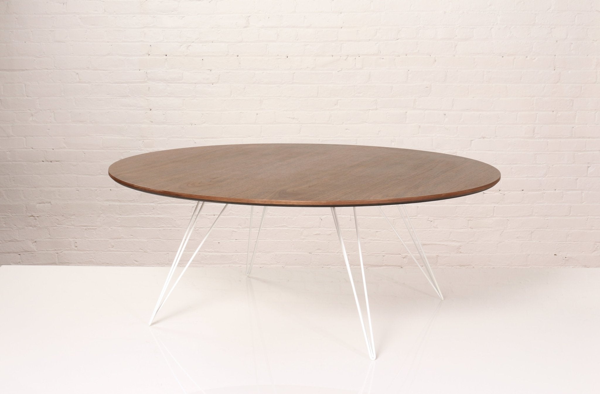 The Tronk Williams Coffee Table - Large Oval brings a refined industrial aesthetic to any space, with its sculptural metal hairpin legs and a warm, natural walnut veneered tabletop. This combination of materials adds both elegance and functionality to Larger rooms or offices. Its compact size makes it an ideal choice for contemporary living, offering an easy way to introduce modern design elements without overcrowding a room. Whether you’re enhancing your home or office, this coffee table becomes the perfect centerpiece.
