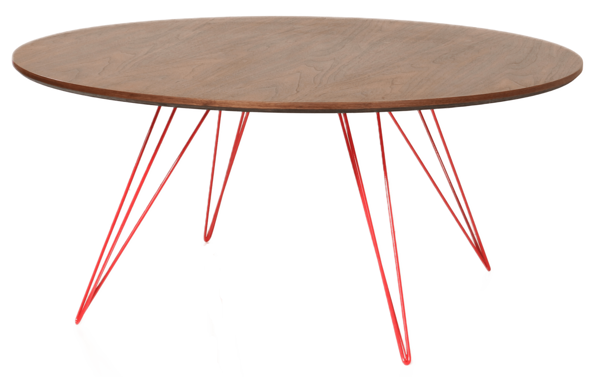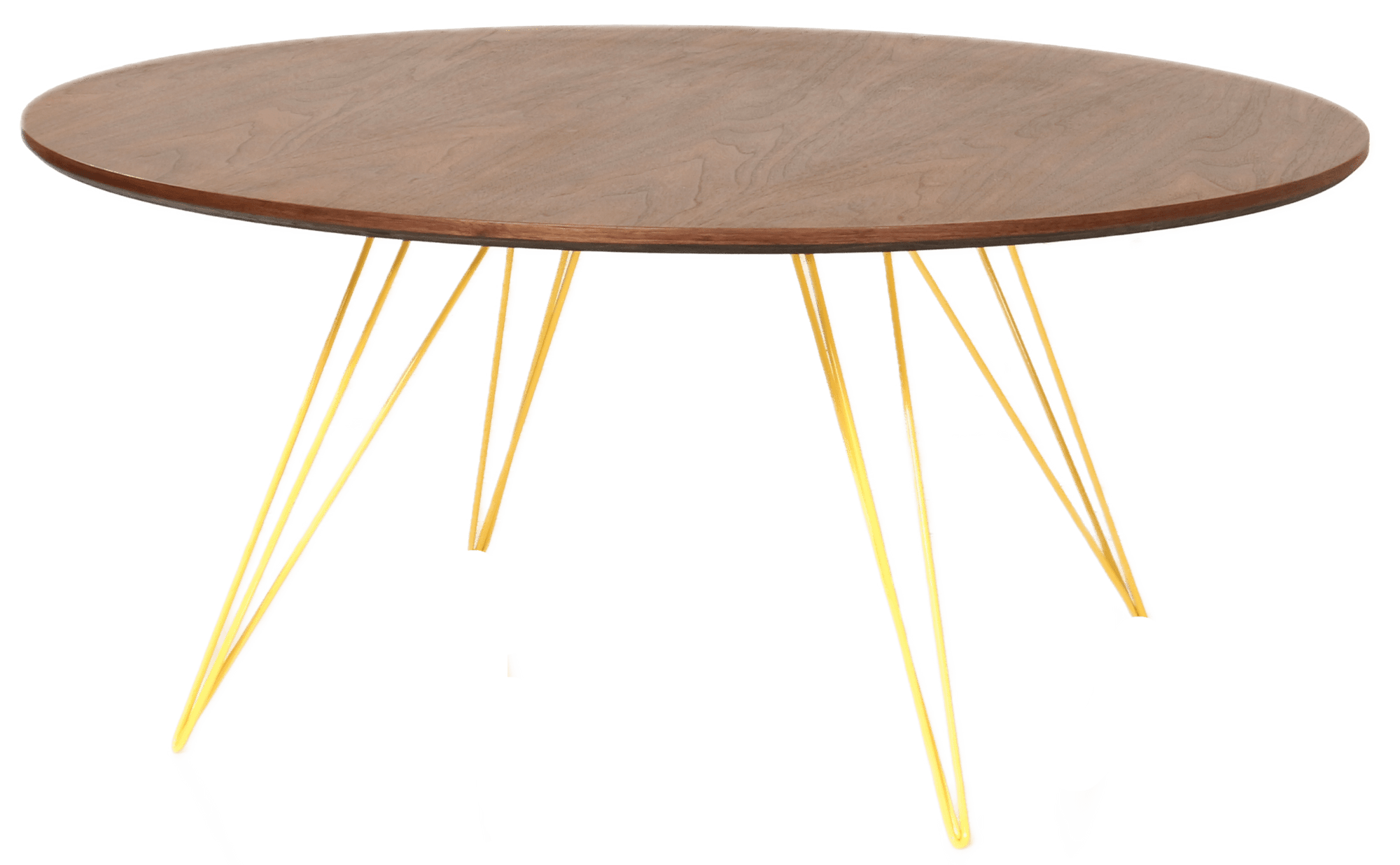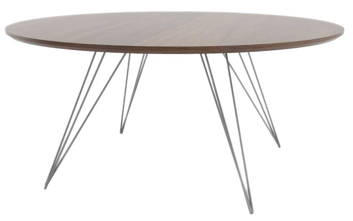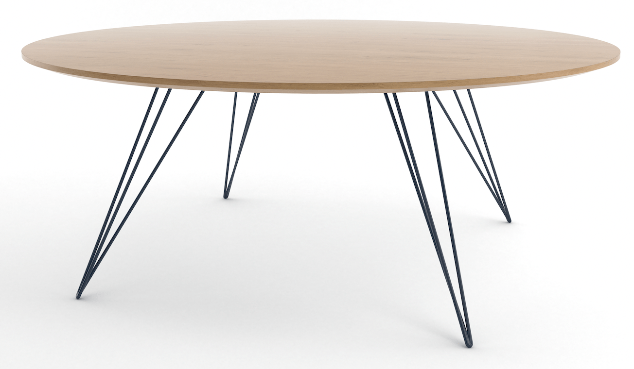 The Tronk Williams Coffee Table - Small Circle brings a refined industrial aesthetic to any space, with its sculptural metal hairpin legs and a warm, natural walnut veneered tabletop. This combination of materials adds both elegance and functionality to smaller rooms or offices. Its compact size makes it an ideal choice for contemporary living, offering an easy way to introduce modern design elements without overcrowding a room. Whether you’re enhancing your home or office, this coffee table becomes the perfect centerpiece.