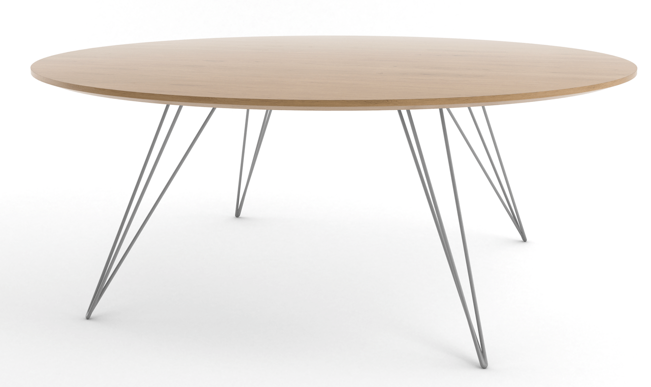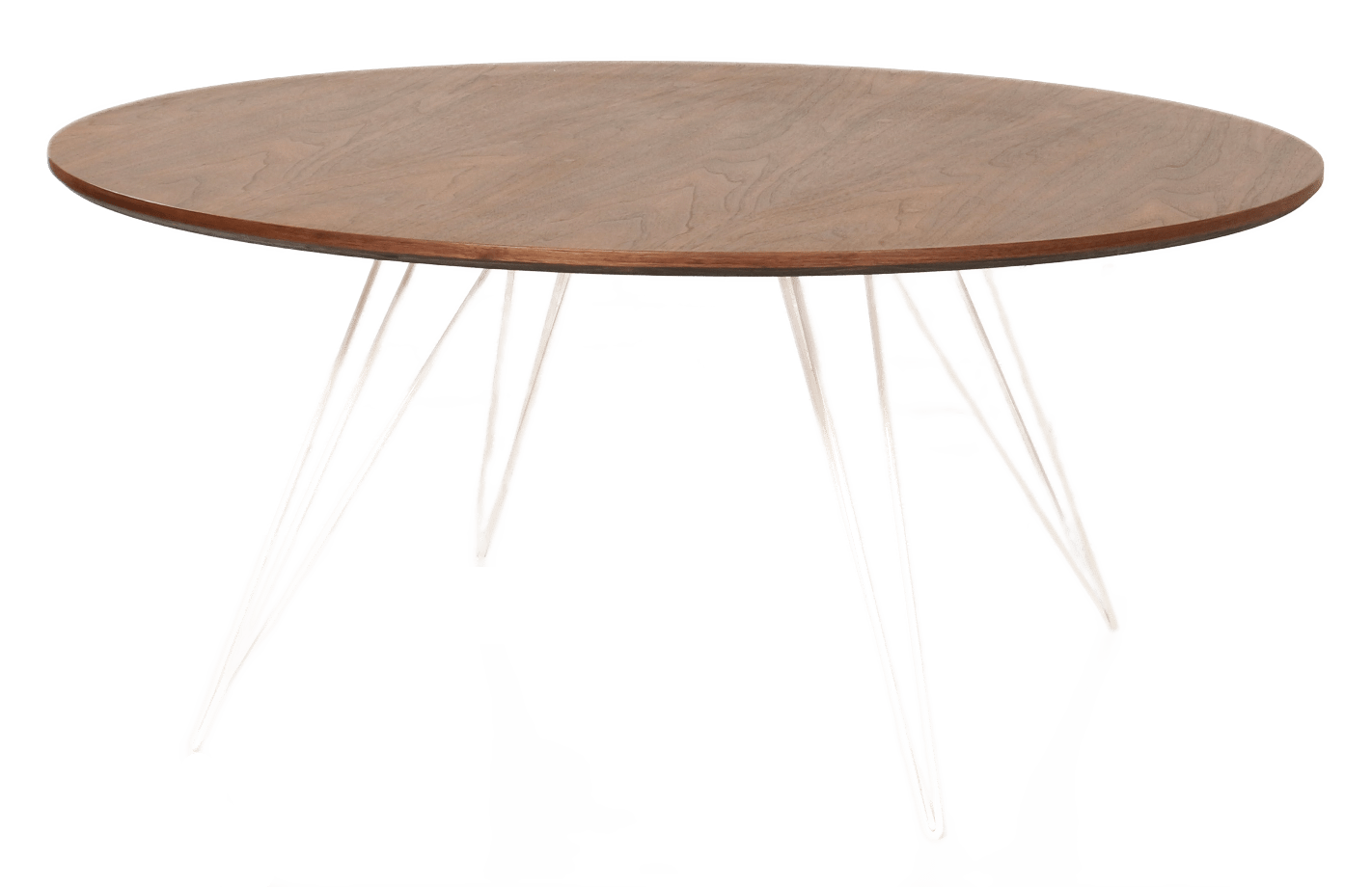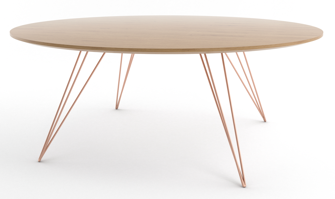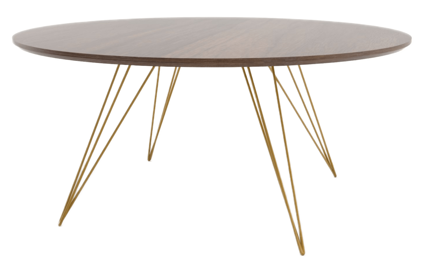 The Tronk Williams Coffee Table - Small Circle brings a refined industrial aesthetic to any space, with its sculptural metal hairpin legs and a warm, natural walnut veneered tabletop. This combination of materials adds both elegance and functionality to smaller rooms or offices. Its compact size makes it an ideal choice for contemporary living, offering an easy way to introduce modern design elements without overcrowding a room. Whether you’re enhancing your home or office, this coffee table becomes the perfect centerpiece.