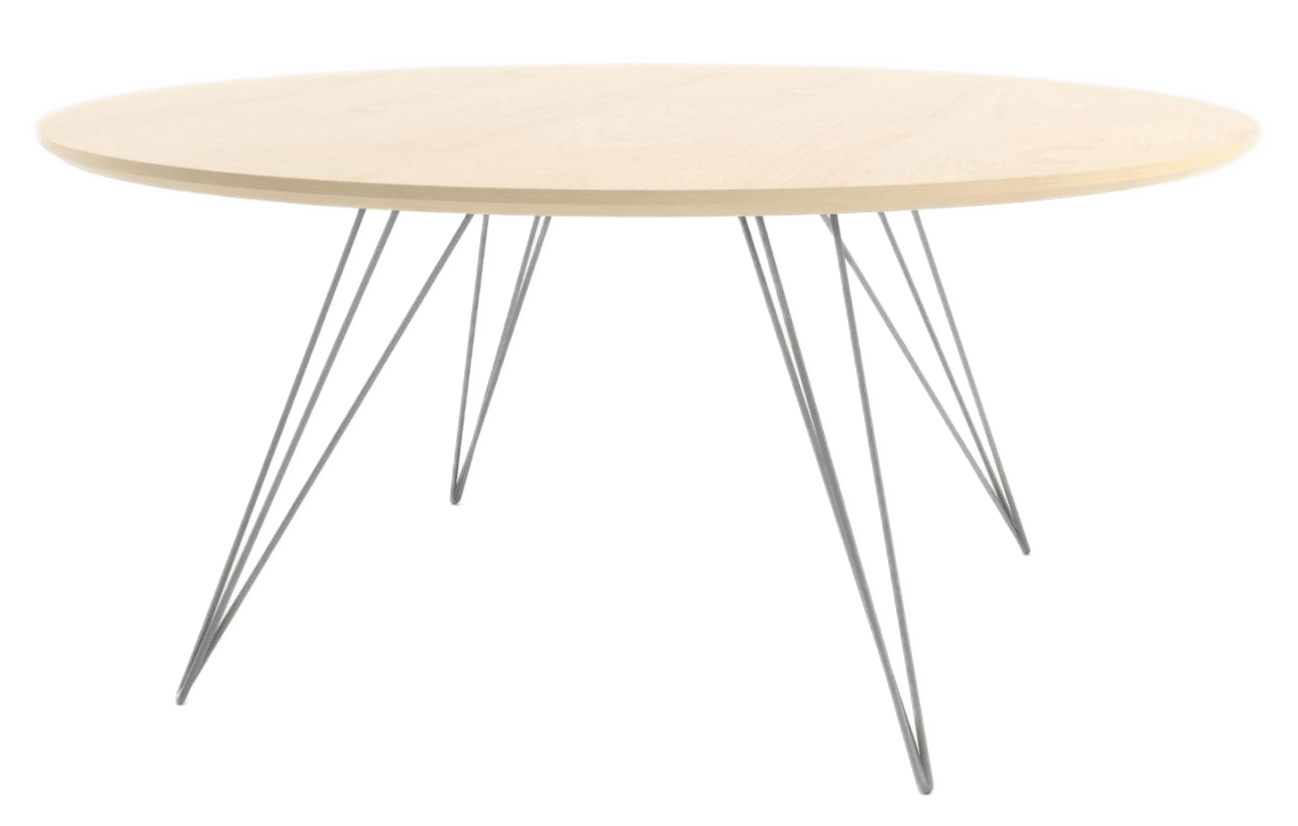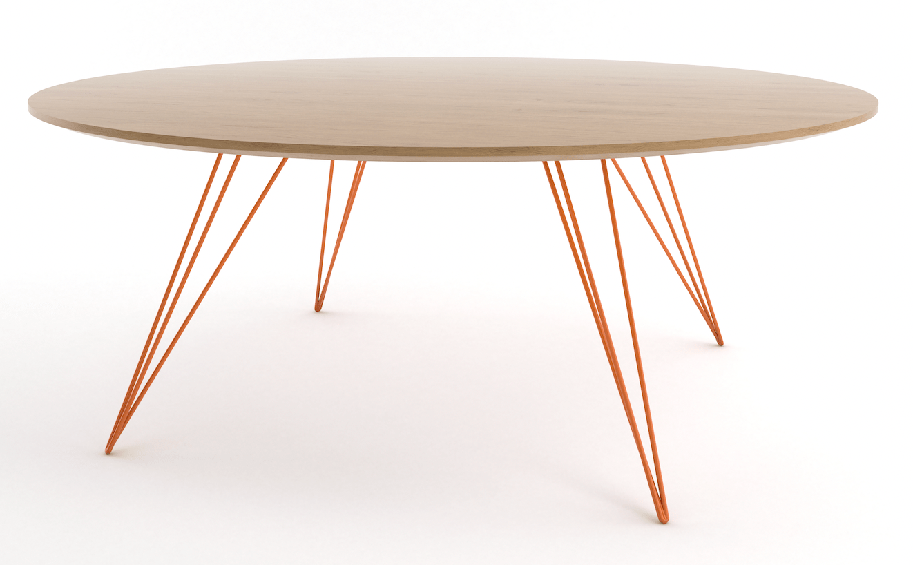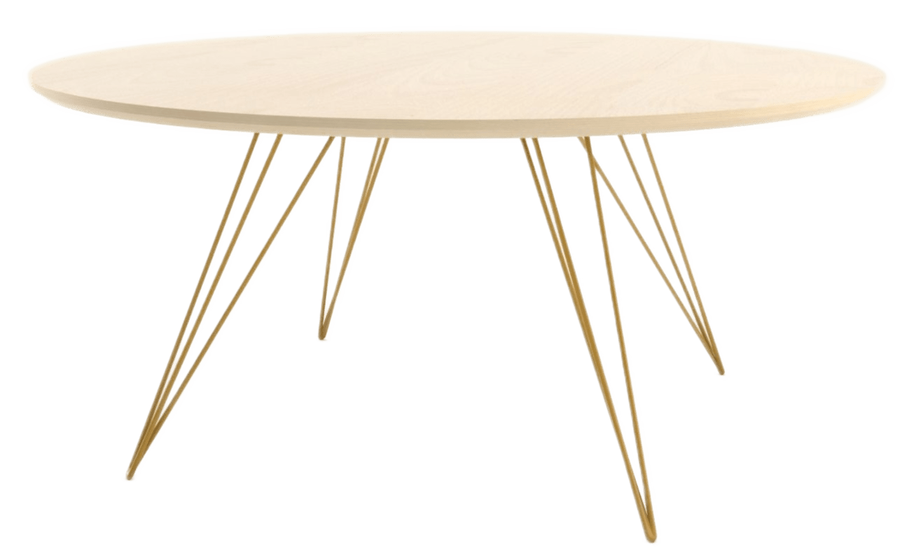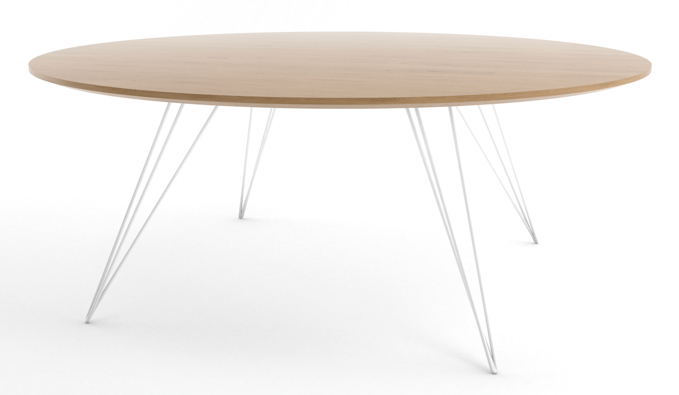 The Tronk Williams Coffee Table - Small Circle brings a refined industrial aesthetic to any space, with its sculptural metal hairpin legs and a warm, natural walnut veneered tabletop. This combination of materials adds both elegance and functionality to smaller rooms or offices. Its compact size makes it an ideal choice for contemporary living, offering an easy way to introduce modern design elements without overcrowding a room. Whether you’re enhancing your home or office, this coffee table becomes the perfect centerpiece.