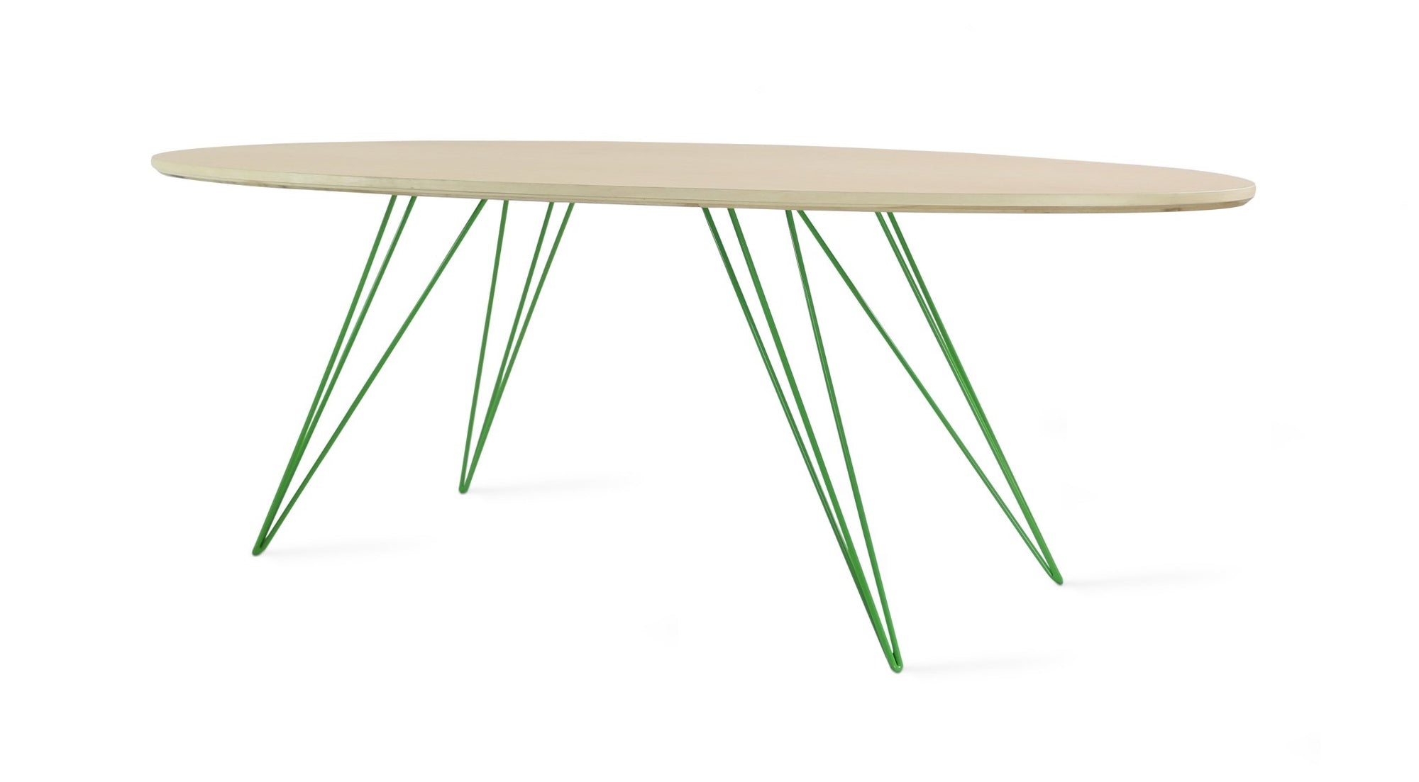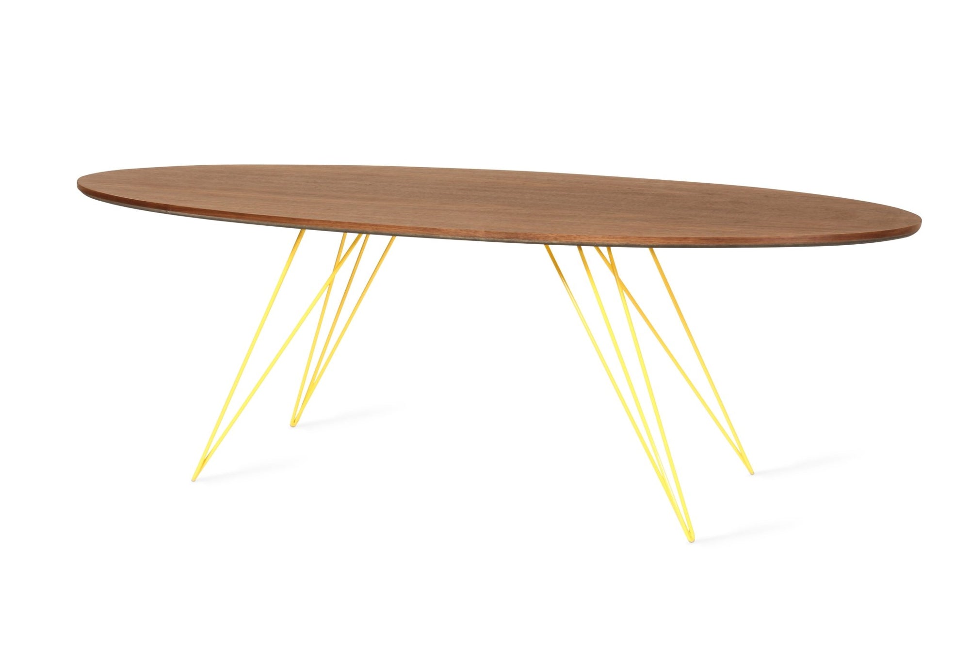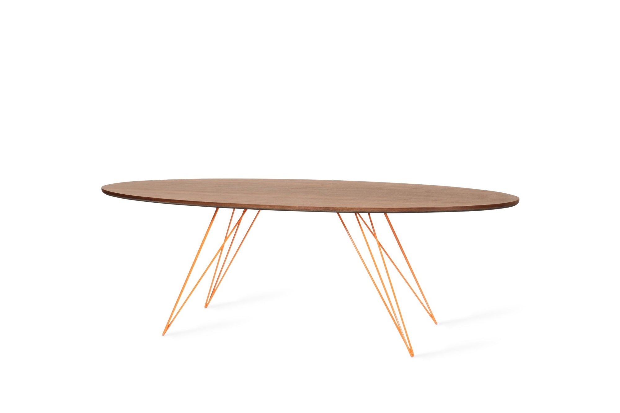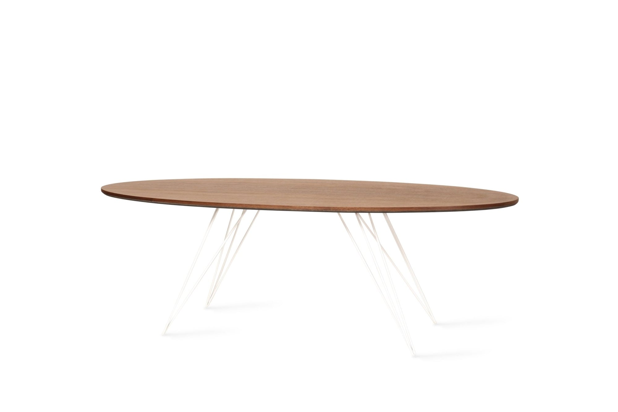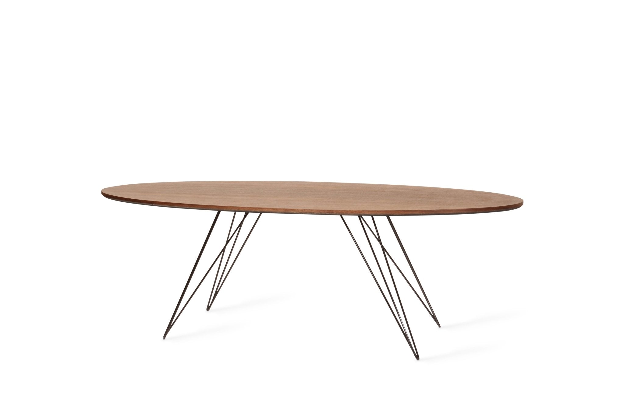 The Tronk Williams Coffee Table seamlessly blends industrial aesthetics with modern design. Its sculptural, hairpin metal legs offer a unique visual appeal, providing a light, airy feel to any room. The oval tabletop, available in natural walnut or maple veneer, adds warmth and natural beauty. Together, these elements make the table a perfect fit for contemporary living rooms or office spaces, offering both style and functionality. This coffee table is an ideal choice for anyone looking to enhance their décor with a touch of sophistication and elegance.