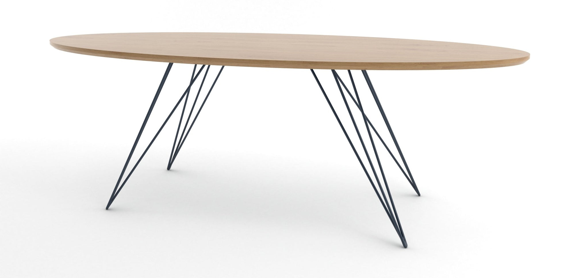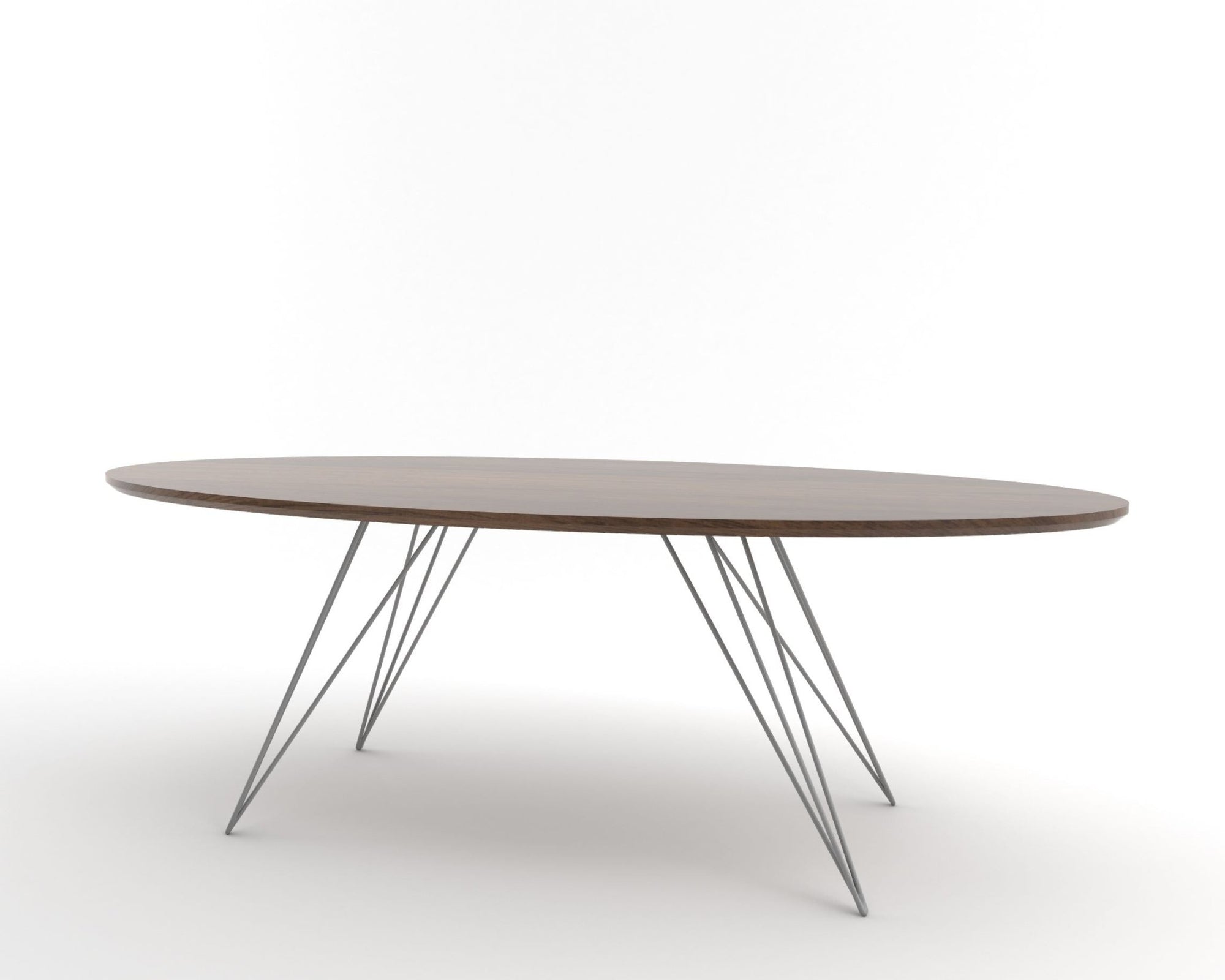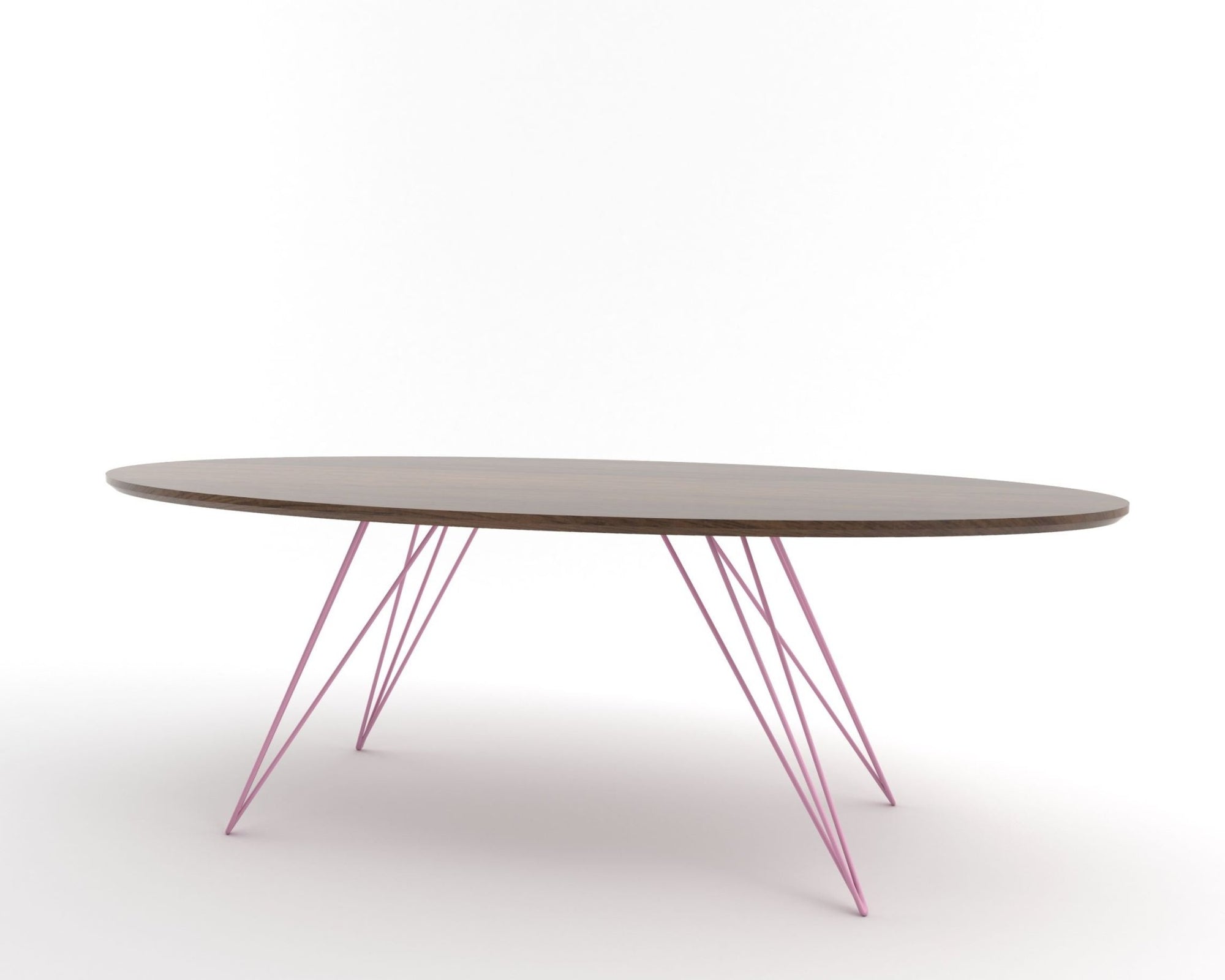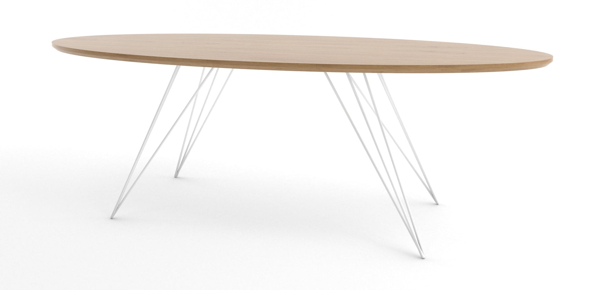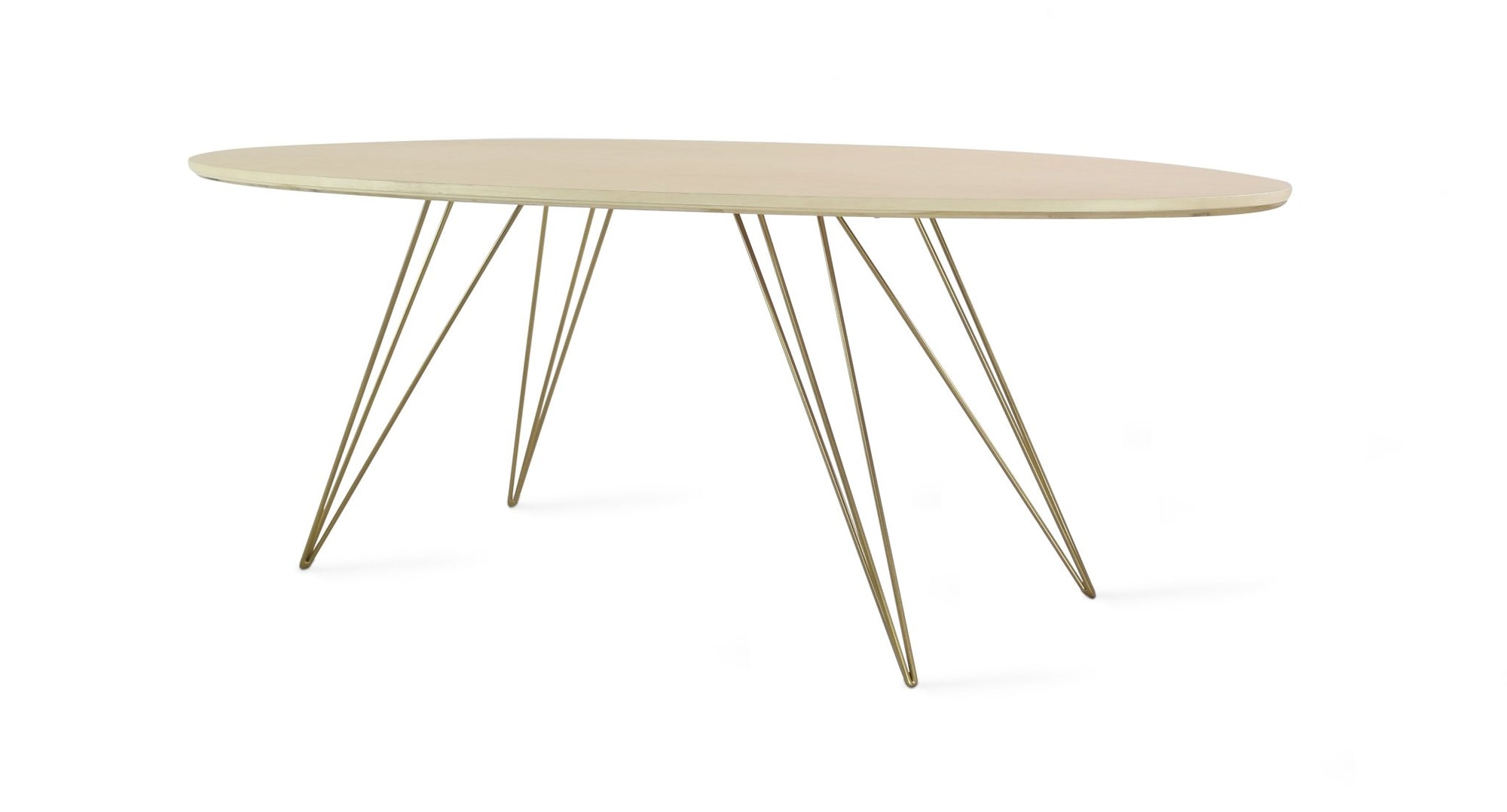 The Tronk Williams Coffee Table seamlessly blends industrial aesthetics with modern design. Its sculptural, hairpin metal legs offer a unique visual appeal, providing a light, airy feel to any room. The oval tabletop, available in natural walnut or maple veneer, adds warmth and natural beauty. Together, these elements make the table a perfect fit for contemporary living rooms or office spaces, offering both style and functionality. This coffee table is an ideal choice for anyone looking to enhance their décor with a touch of sophistication and elegance.