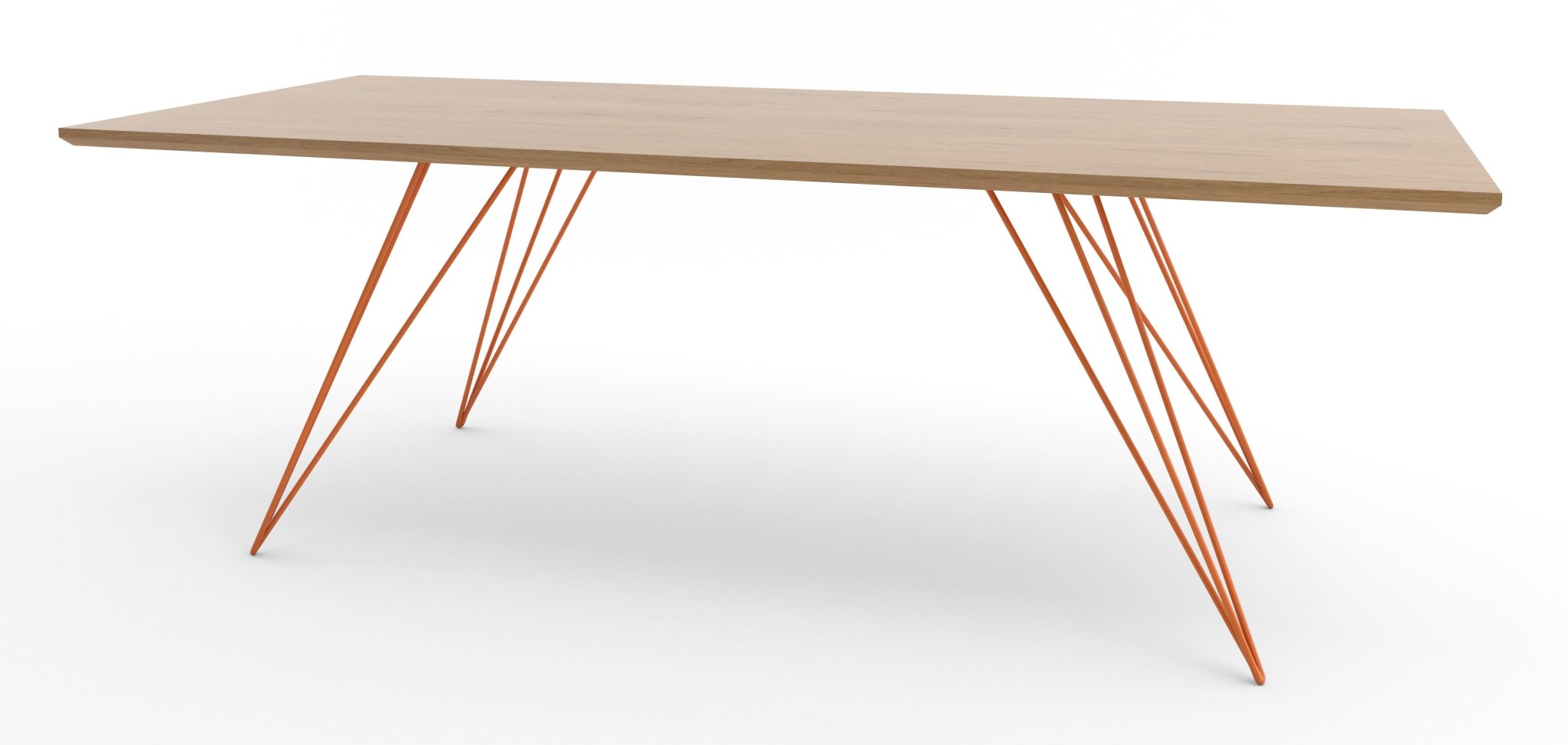 The Tronk Williams Coffee Table effortlessly combines sleek, modern design with functional elegance. With a thin rectangular tabletop crafted from natural walnut or maple veneer, the table highlights the wood's distinctive grain patterns. Supported by sculptural, powder-coated metal hairpin legs, this piece adds a touch of contemporary charm to any room. Whether placed in a living room or office, it serves as a versatile centerpiece that enhances your space while maintaining a light, airy feel.