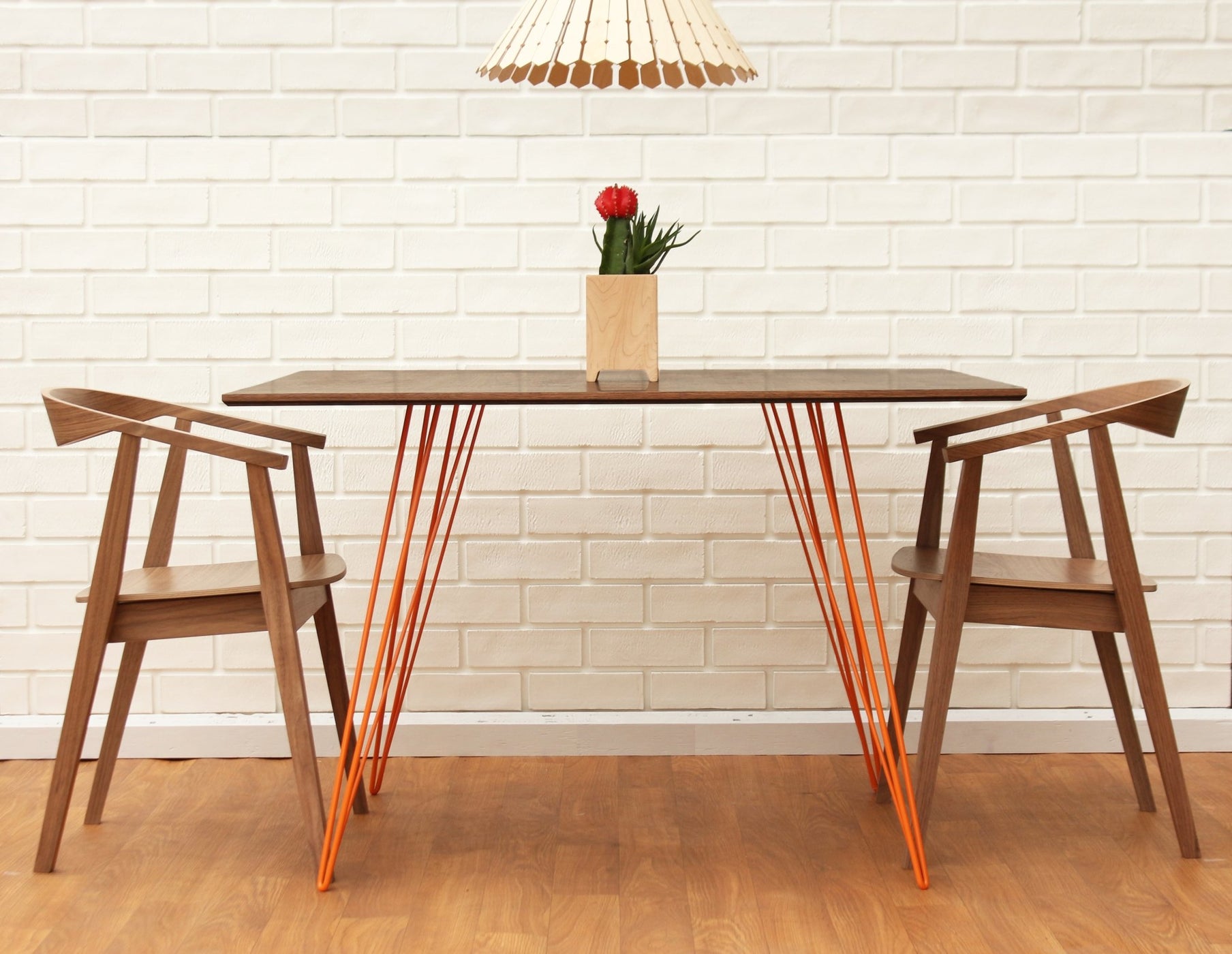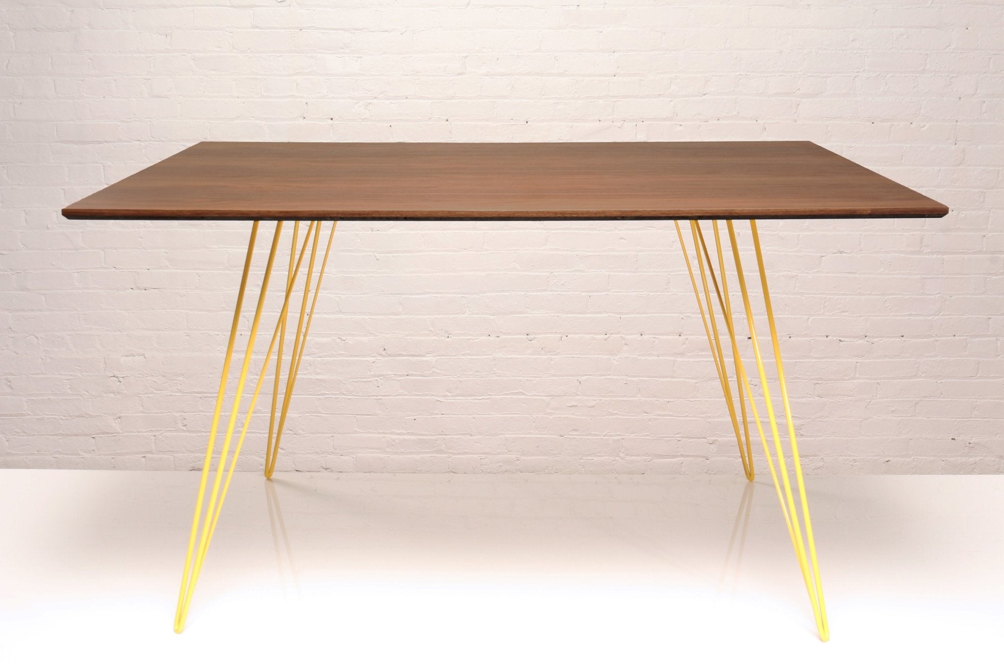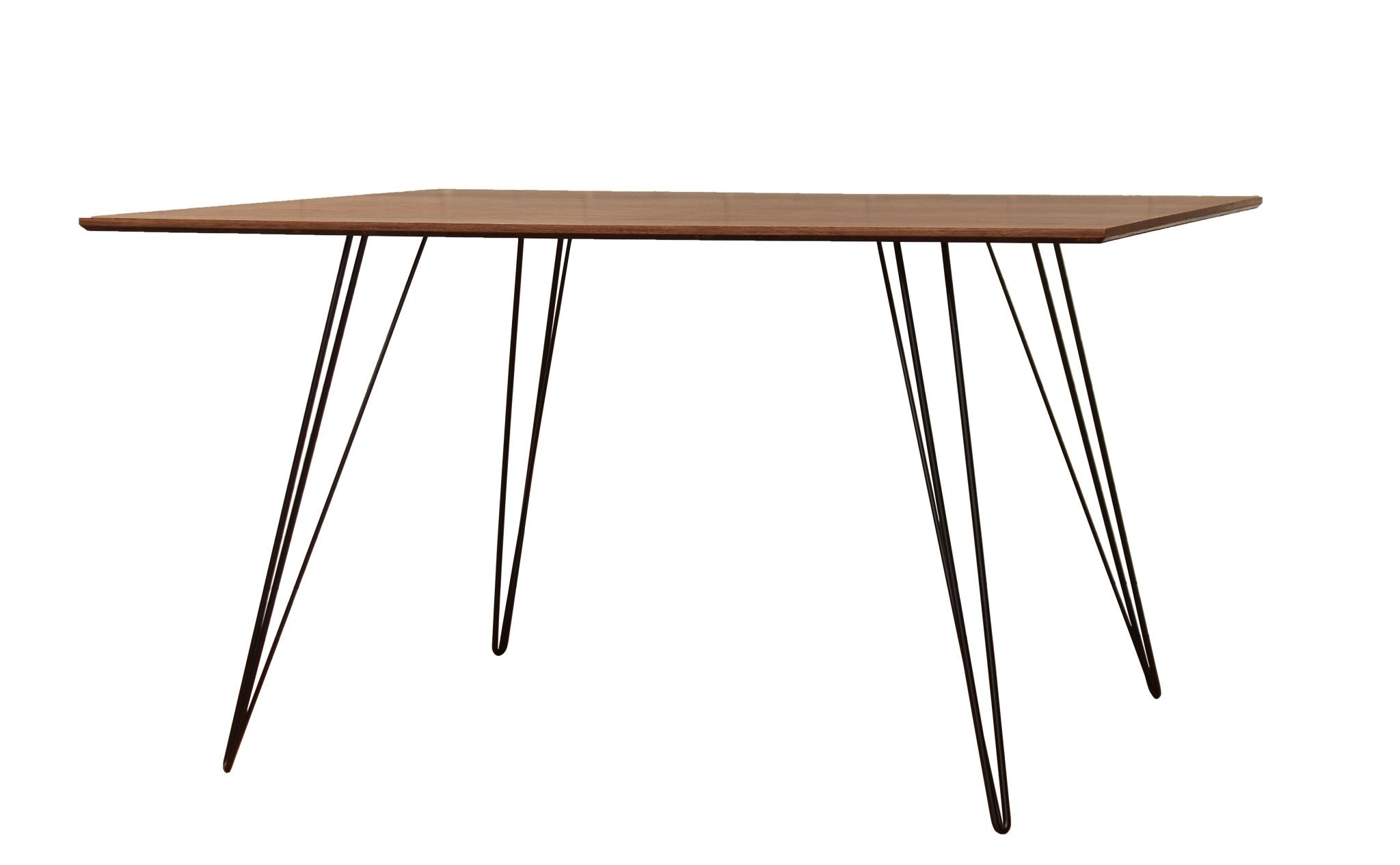 The Tronk Williams Dining Table - Large Rectangle effortlessly combines industrial design with a playful twist. Featuring sculptural metal hairpin legs and a large Rectangular tabletop, veneered in natural walnut, this table brings a warm, inviting atmosphere to any dining space. The harmonious design of the Williams Dining Table makes it a perfect fit for modern dining rooms, offering both functionality and style. Its timeless elegance allows it to blend seamlessly with a variety of décor, from minimalist to contemporary, making it a versatile centerpiece in any home.