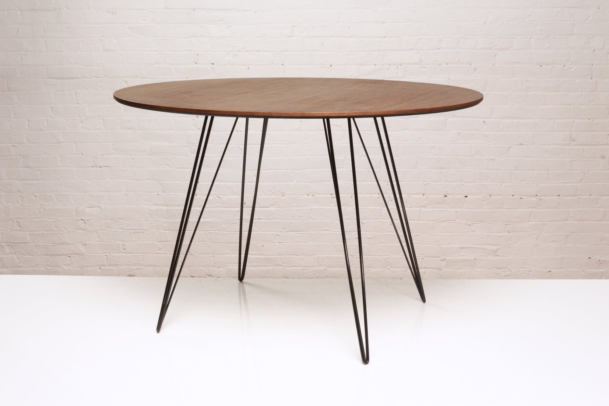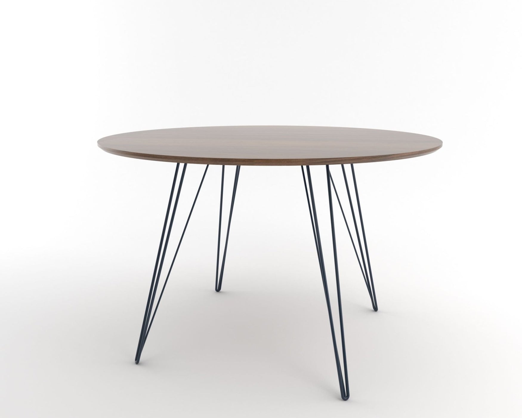 With its versatile design, the Williams Dining Table seamlessly fits into various interior styles, from mid-century modern to minimalist chic. The natural walnut veneer highlights unique wood grain patterns, making each table one-of-a-kind. Moreover, the circular tabletop offers a clean and balanced look, while the sleek metal legs maintain a light, airy feel. This balance of industrial charm and organic warmth makes it an ideal addition to any modern space.