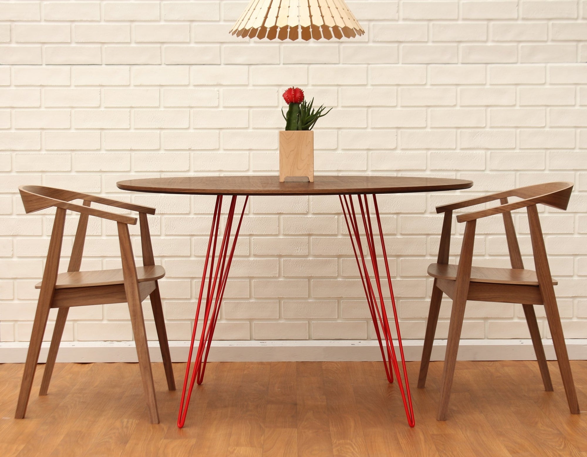 The Tronk Williams Dining Table - Small Oval brings a refined industrial aesthetic to any space, with its sculptural metal hairpin legs and a warm, natural walnut veneered tabletop. This combination of materials adds both elegance and functionality to smaller rooms or offices. Its compact size makes it an ideal choice for contemporary living, offering an easy way to introduce modern design elements without overcrowding a room. Whether you’re enhancing your home or office, this Dining table becomes the perfect centerpiece.