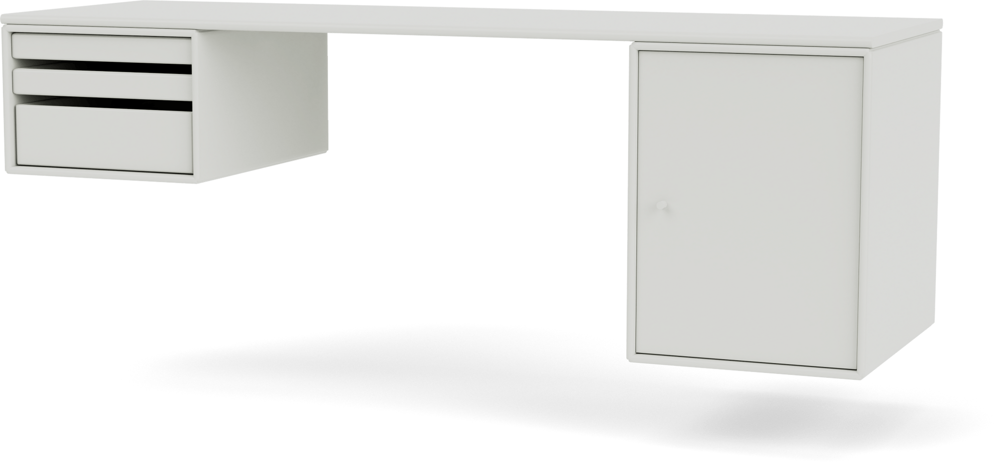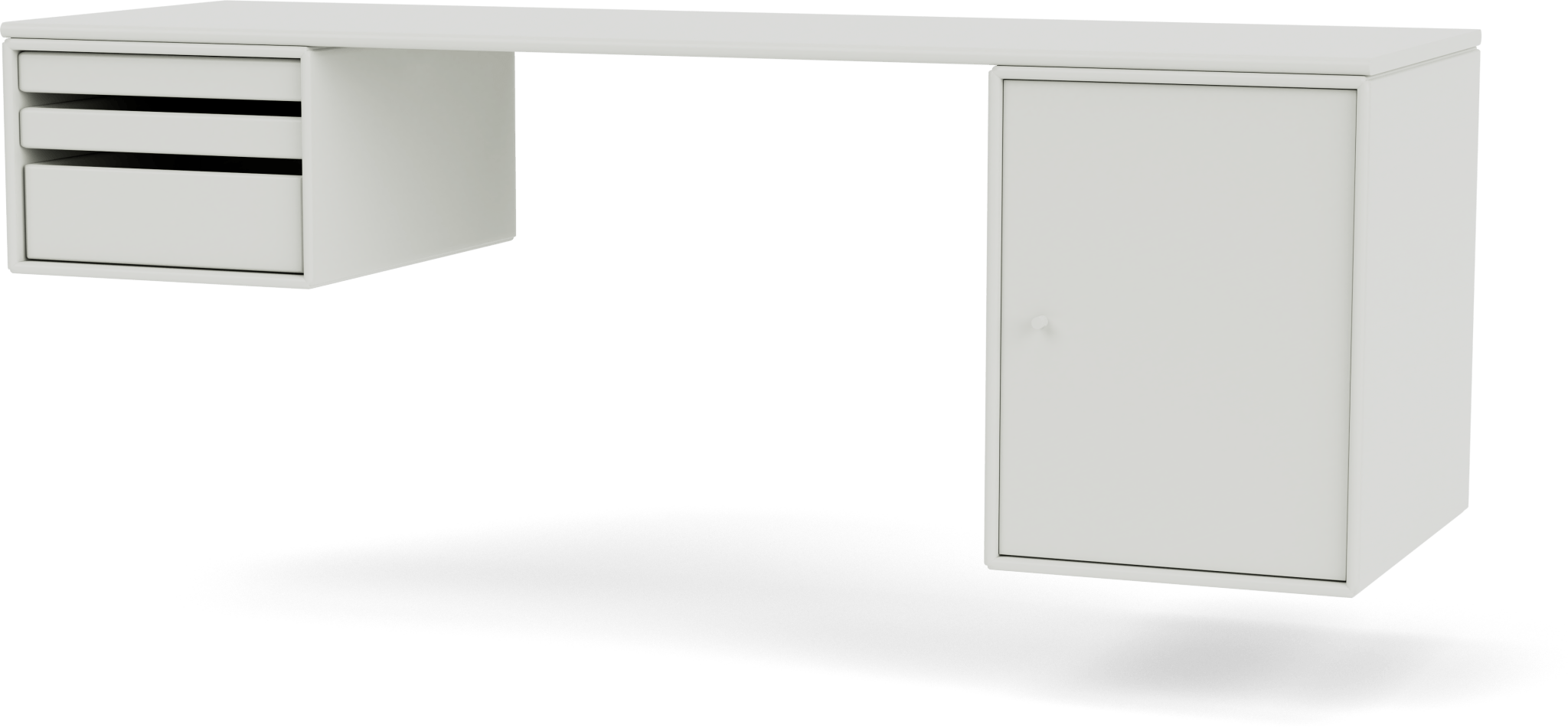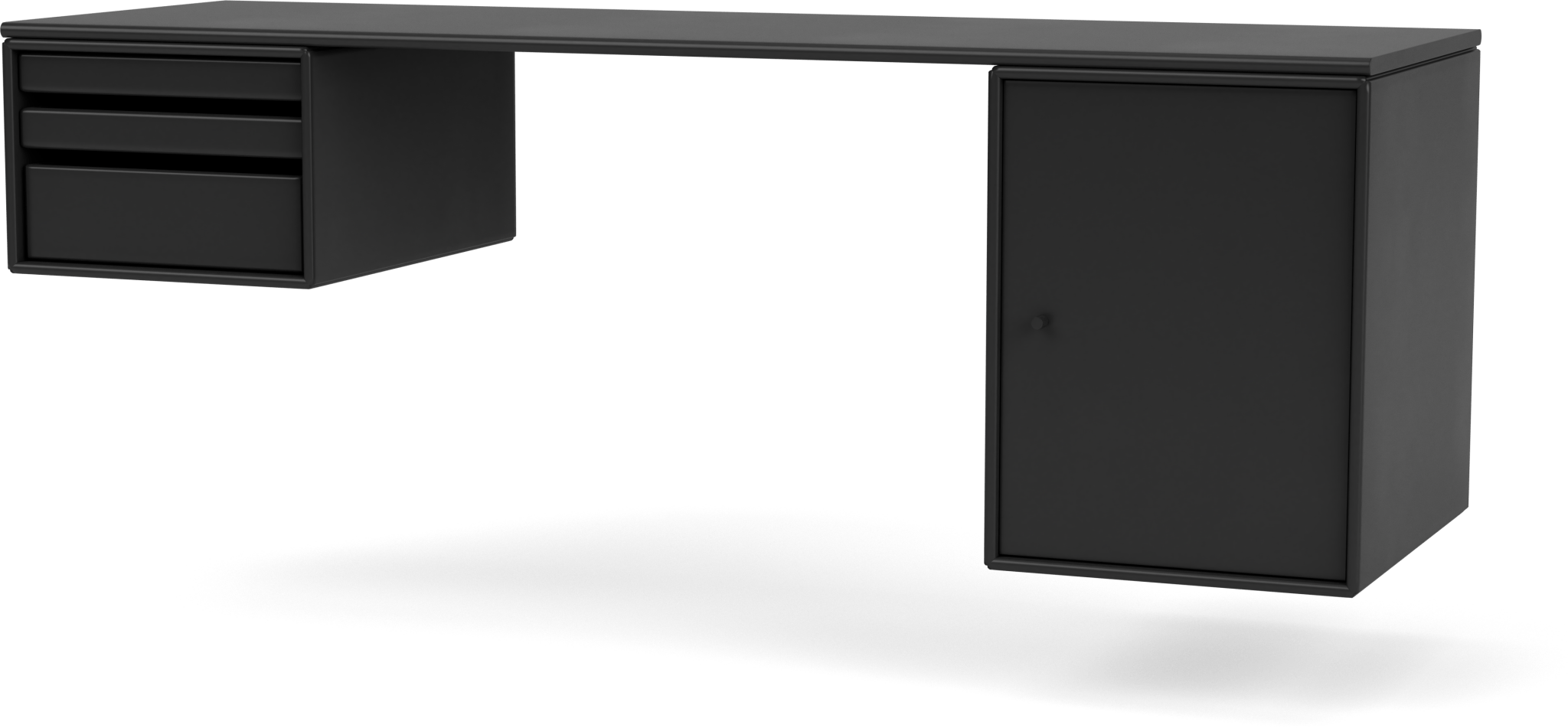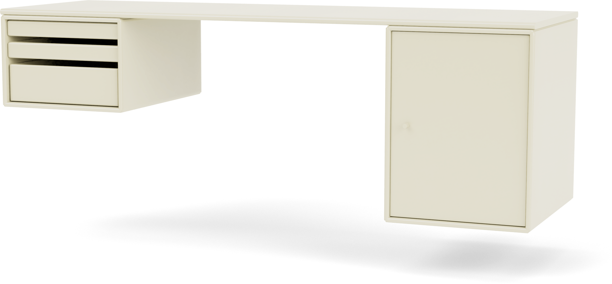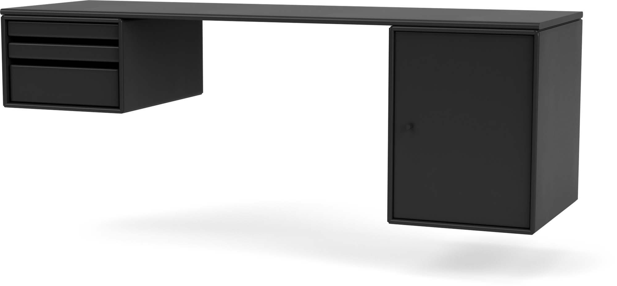 Ideal for smaller living and office spaces, the Workshop Work Desk blends in with its surroundings while offering a highly functional work area. The wall-mounted Workshop Work Desk features three discreet drawers and one cabinet maintaining a compact desk space and simple silhouette. A clever office storage solution, the Workshop Work Desk is available in nine of Montana’s signature color lacquers and pairs perfectly with the Show Bookcase and Loom Slim Bookcase.