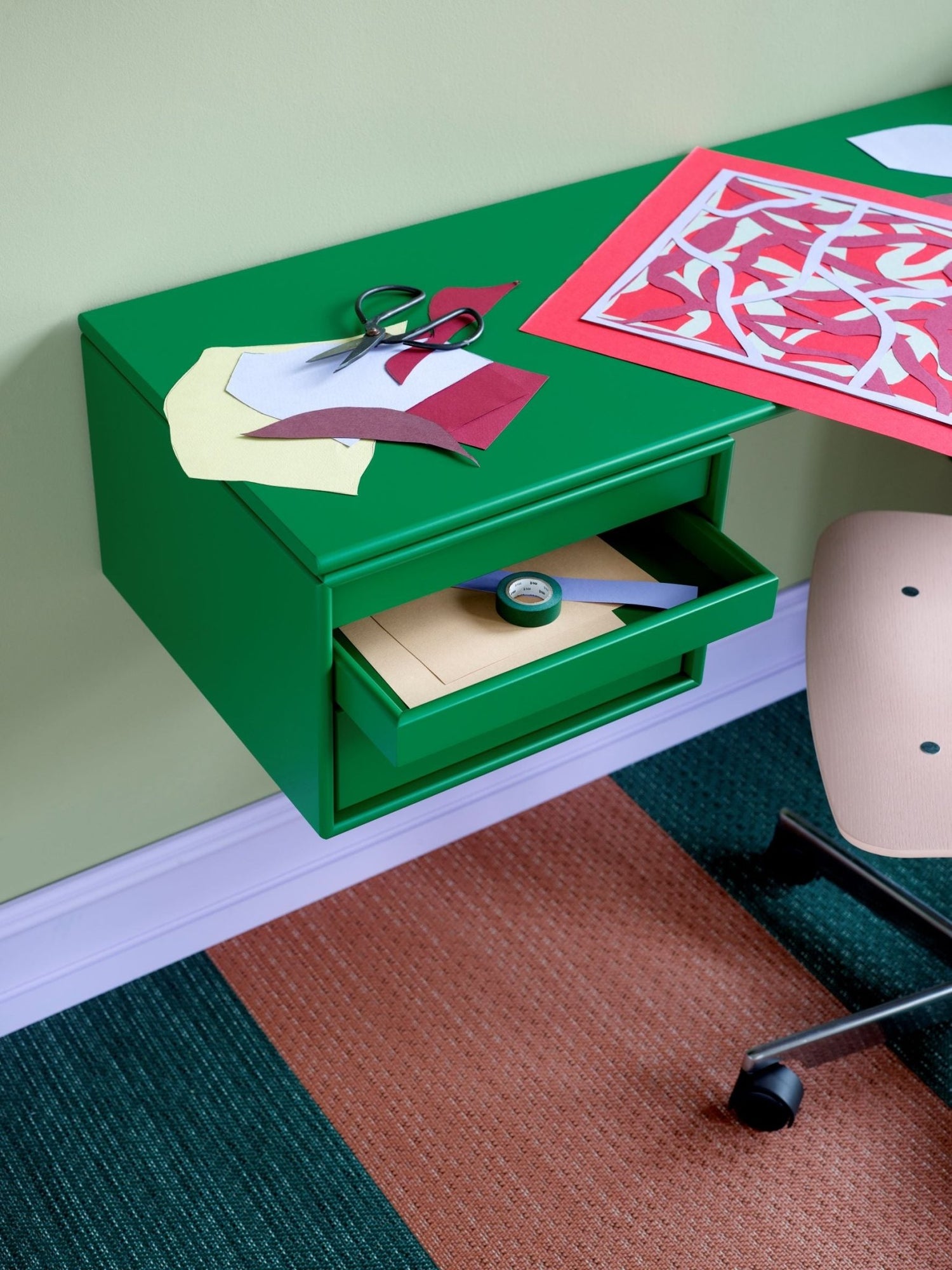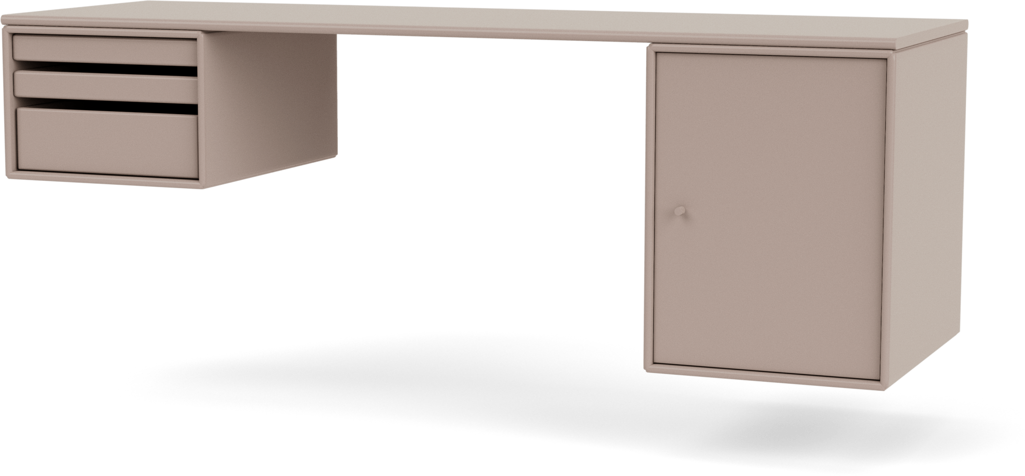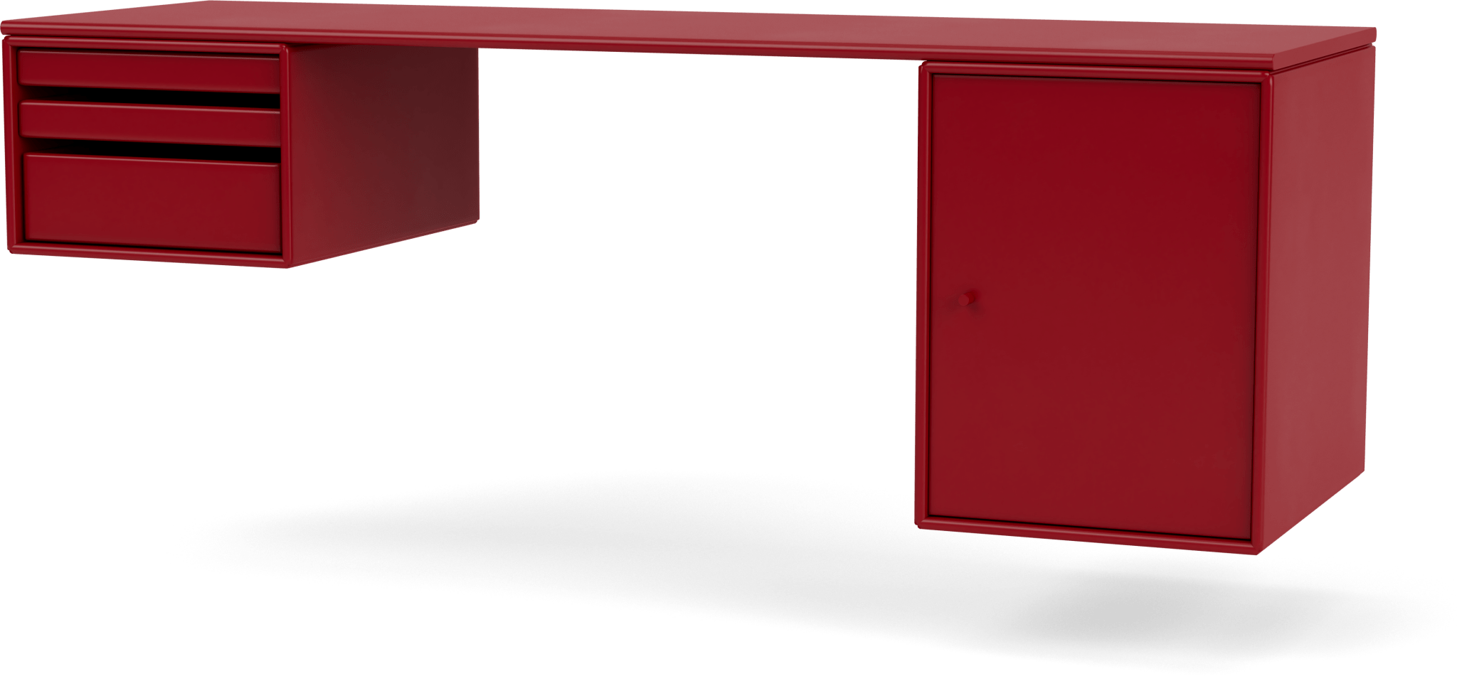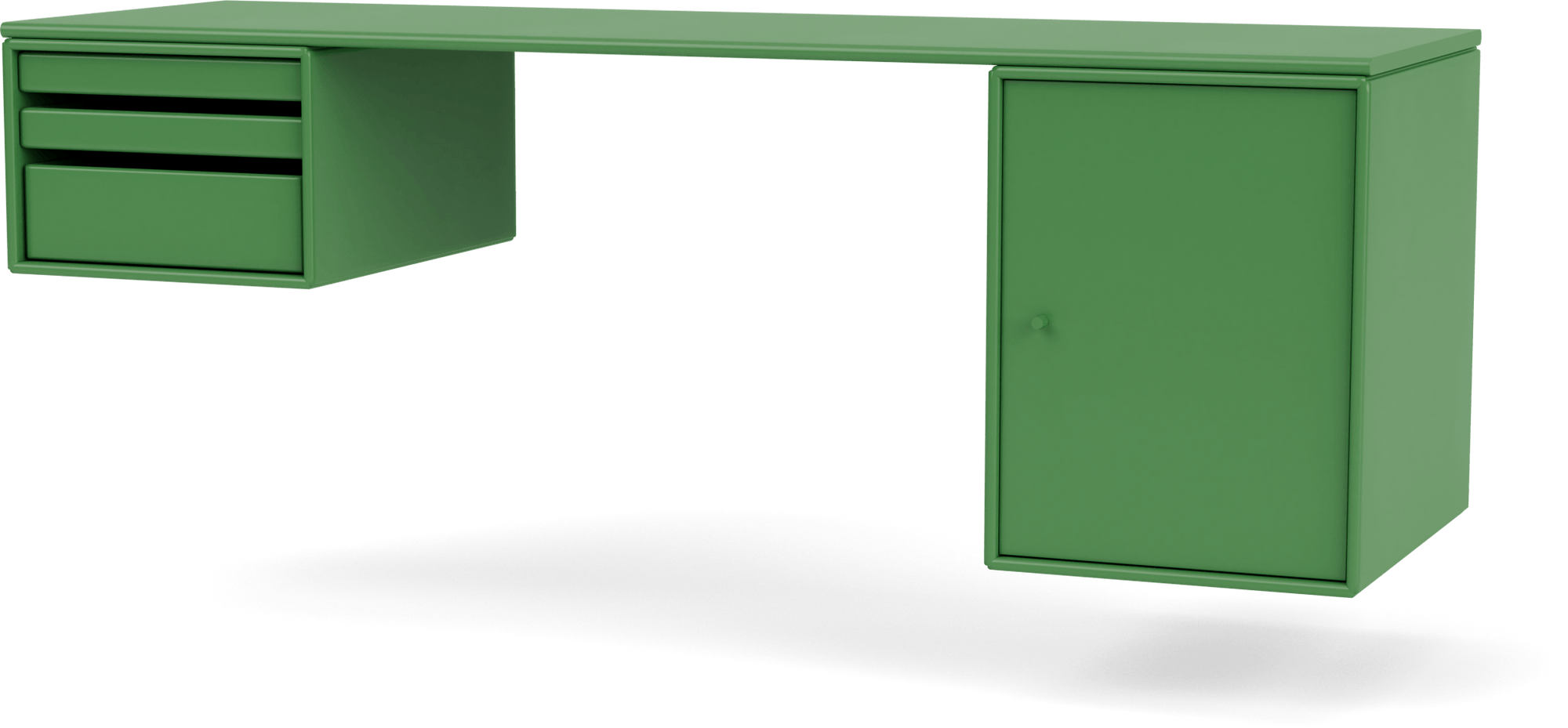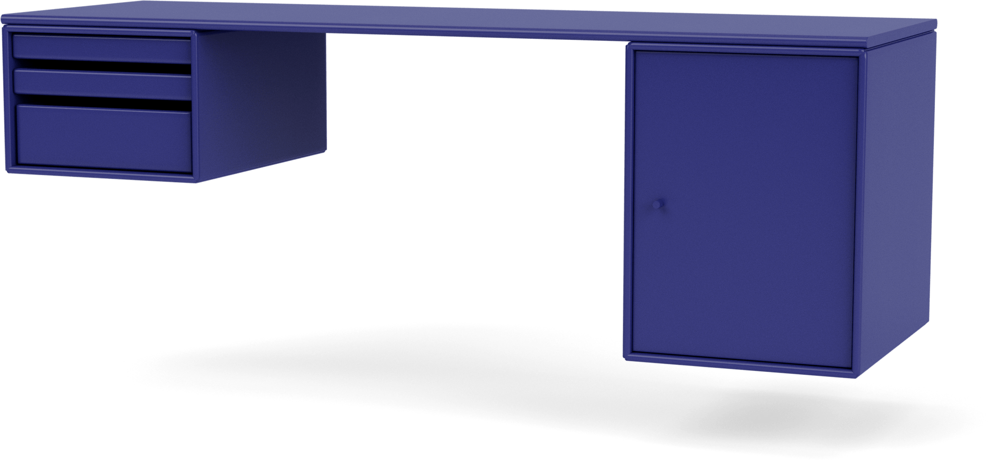 Ideal for smaller living and office spaces, the Workshop Work Desk blends in with its surroundings while offering a highly functional work area. The wall-mounted Workshop Work Desk features three discreet drawers and one cabinet maintaining a compact desk space and simple silhouette. A clever office storage solution, the Workshop Work Desk is available in nine of Montana’s signature color lacquers and pairs perfectly with the Show Bookcase and Loom Slim Bookcase.