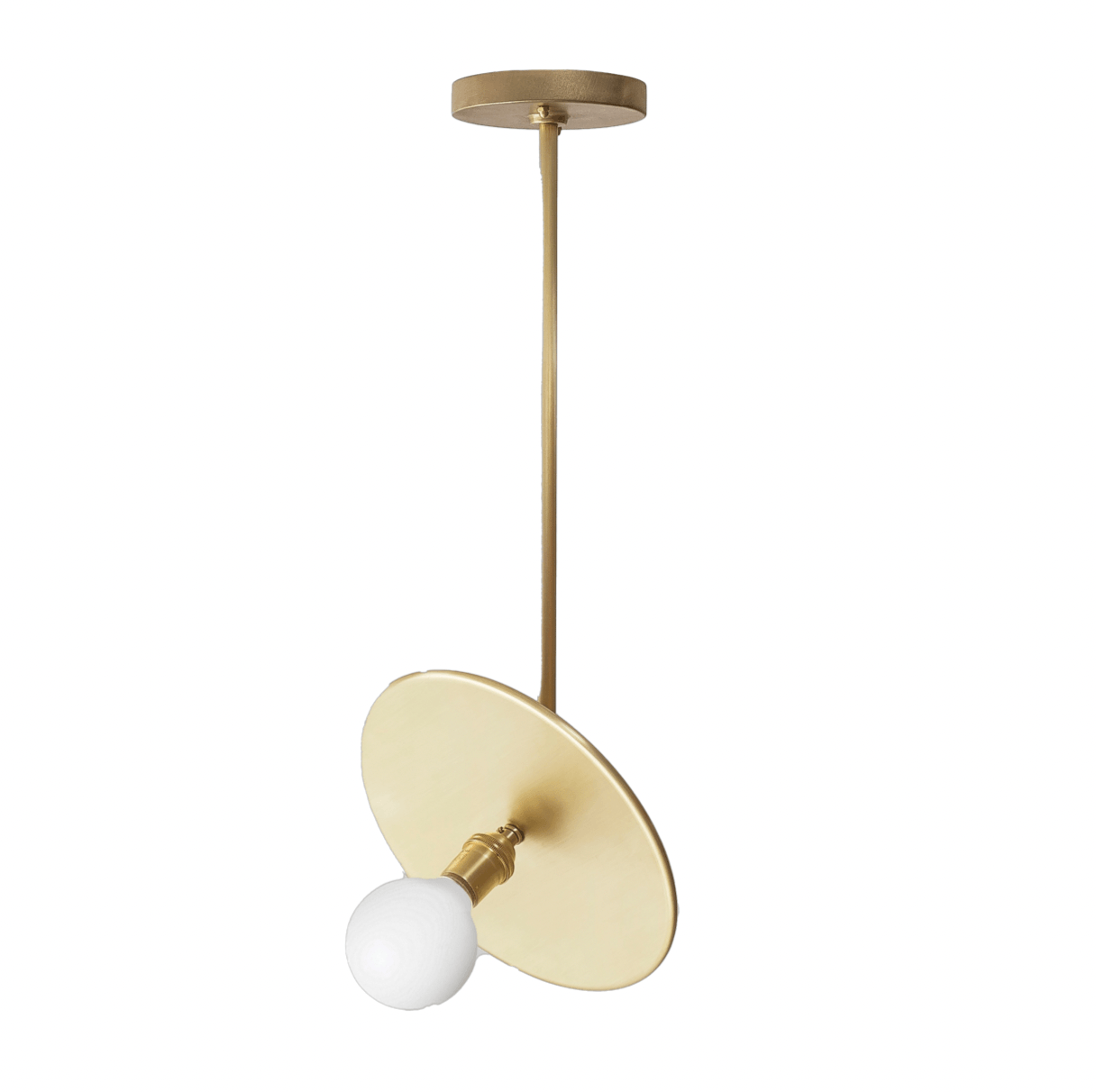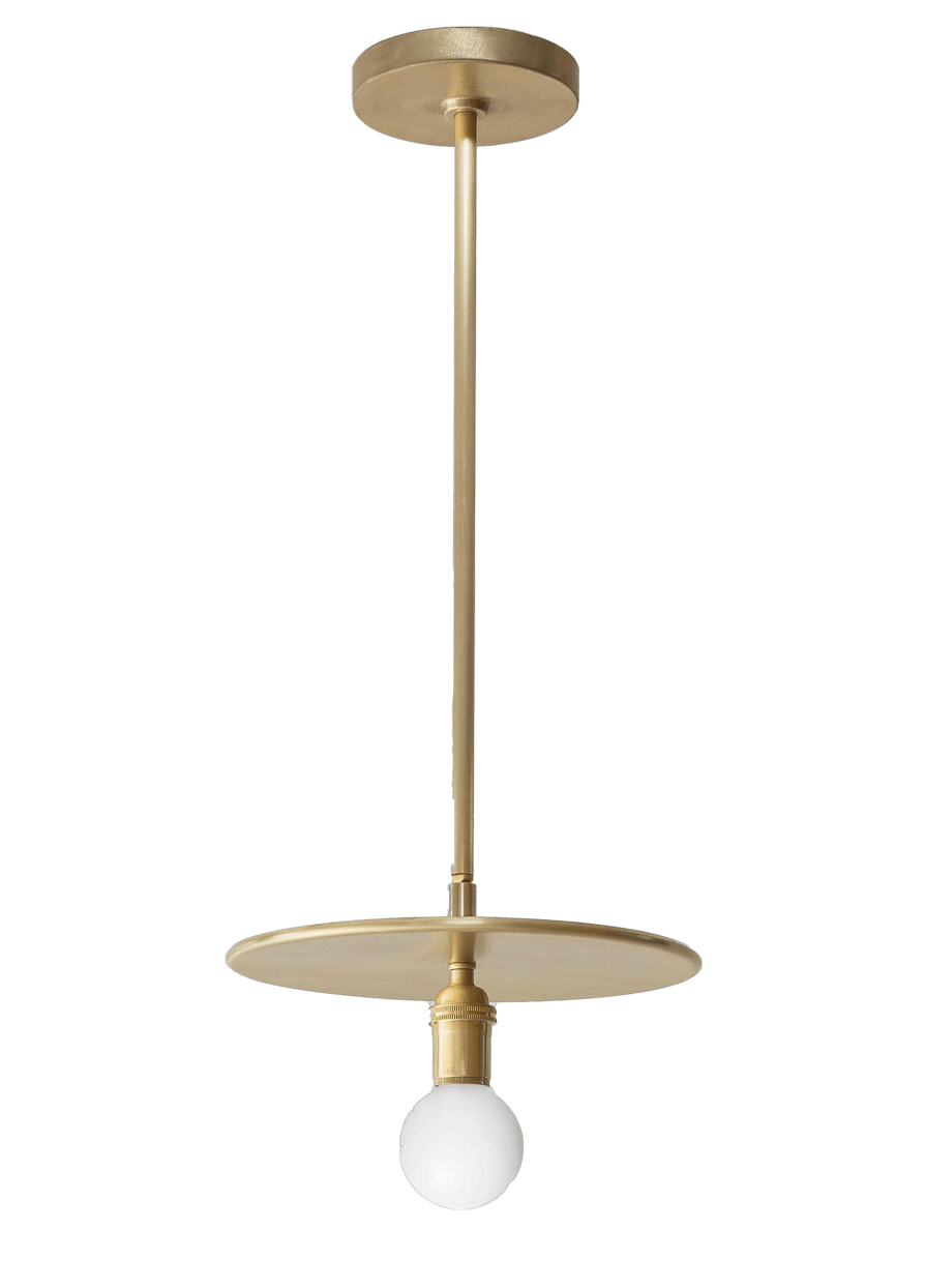 The Workstead Industrial Pendant is a beautifully crafted lighting fixture that seamlessly combines modern design with practical functionality. Made from a long steel rod, a powder-coated brass disc, and a black socket, it introduces an industrial flair to any room. Moreover, the pivot joint allows for 90 degrees of rotation, enabling you to adjust the direction of light easily. Available in three lengths—Small (20"), Medium (36"), and Large (48")—each paired with a 10" round disc, it provides a versatile solution to suit a variety of room sizes and design preferences.