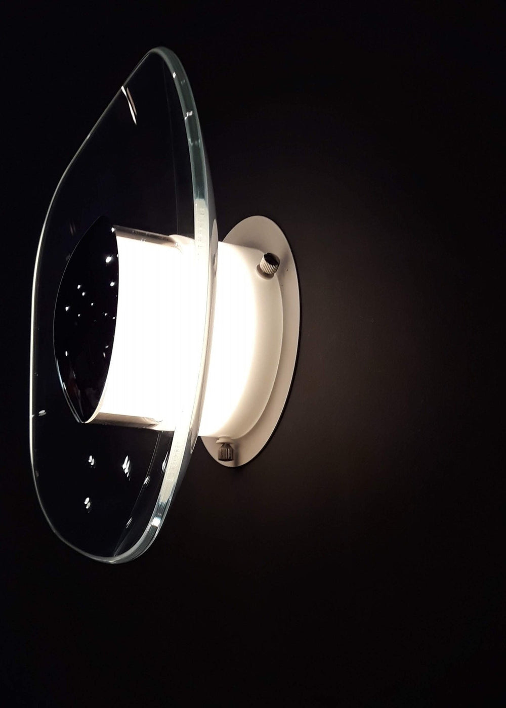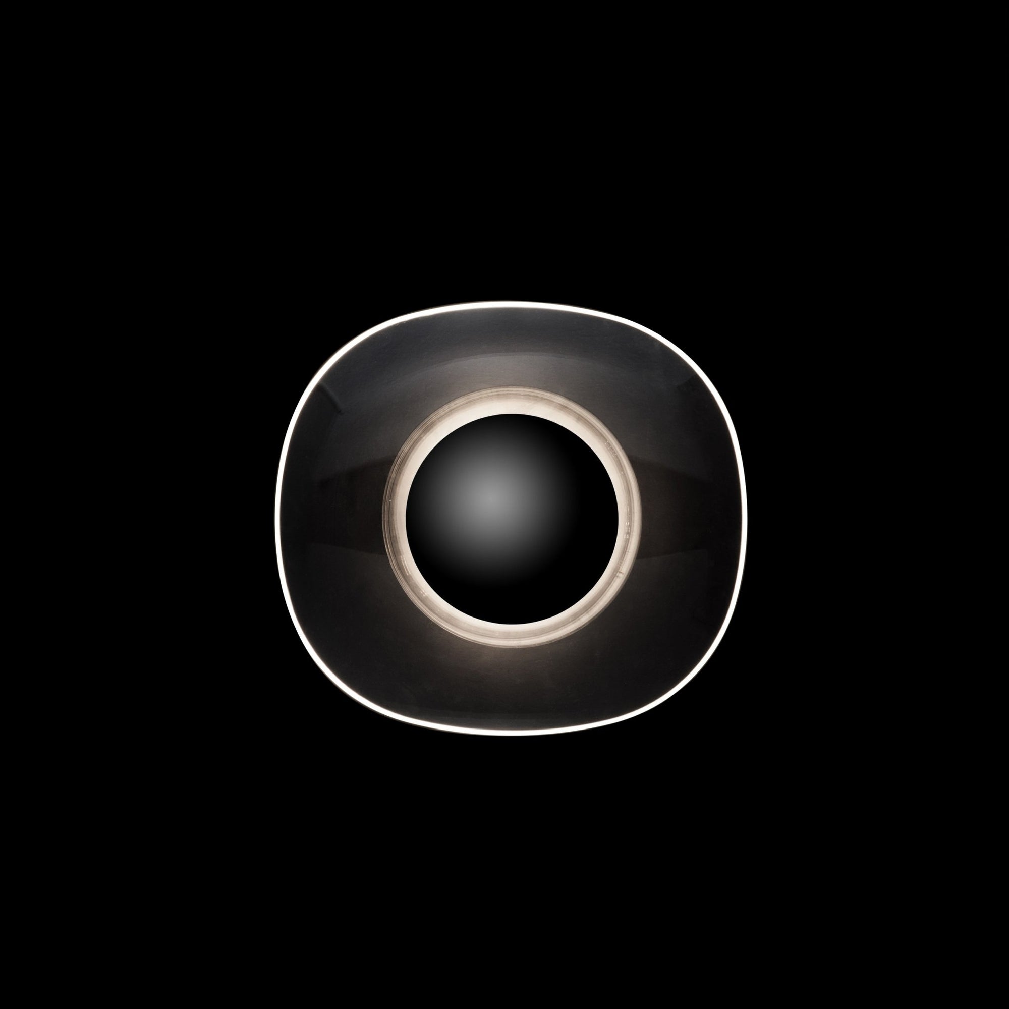 The Oluce Yolk Wall Lamp is a remarkable design collaboration between Angeletti & Ruzza, who skillfully combine metal and glass to create a light fixture that both reflects and diffuses light. The design evokes the simplicity of an egg, a two-material object that symbolizes the duo’s creative power. With a central diffuser made from opal satin blown glass, surrounded by clear curved glass and complemented by a chrome metal reflector, the Oluce Yolk Wall Lamp offers a striking yet minimalist aesthetic for any space.