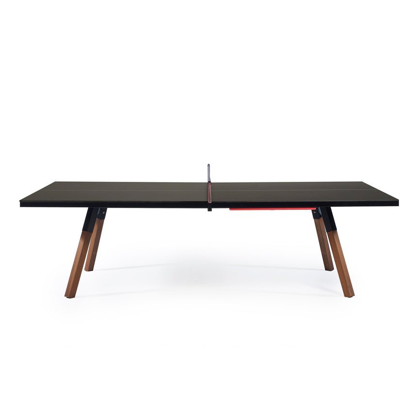 With thoughtful features like a discreet storage drawer for paddles, balls, and the net, the You and Me RS Barcelona Ping Pong Table 220 maintains a clean, organized aesthetic. Its sturdy steel frame, protected by a weather-resistant coating, and solid iroko wood legs combine durability with sophisticated style. A protective cover is recommended for outdoor use to preserve its pristine condition. This table epitomizes RS Barcelona’s vision of merging functionality, beauty, and enduring craftsmanship.