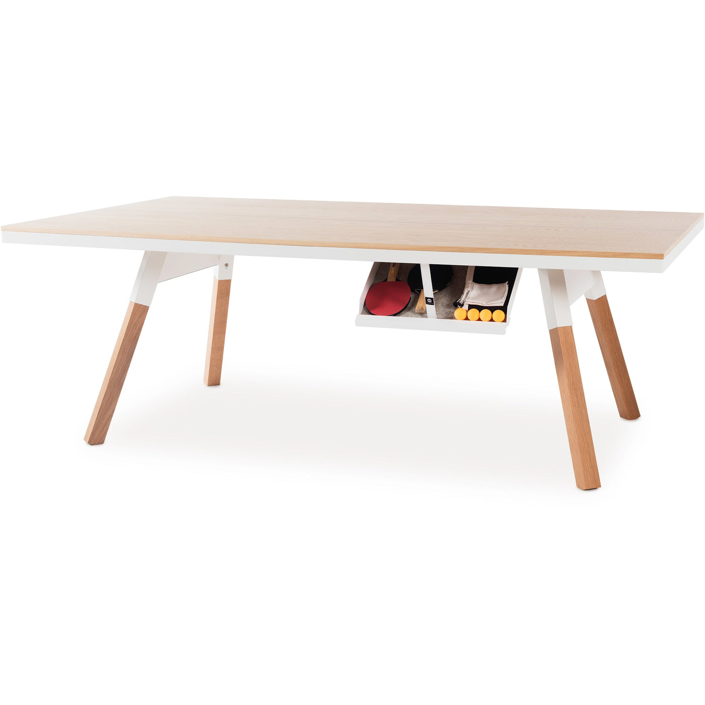 Beyond gameplay, the You and Me RS Barcelona Ping Pong Table serves as a versatile piece of furniture, easily converting into a dining or conference table. Its minimalist design complements various environments, from family gatherings to work meetings. Additionally, the table includes discreet storage for paddles and balls, maintaining its elegant appearance when not in use. It's perfect for those who value style and functionality in their living spaces.