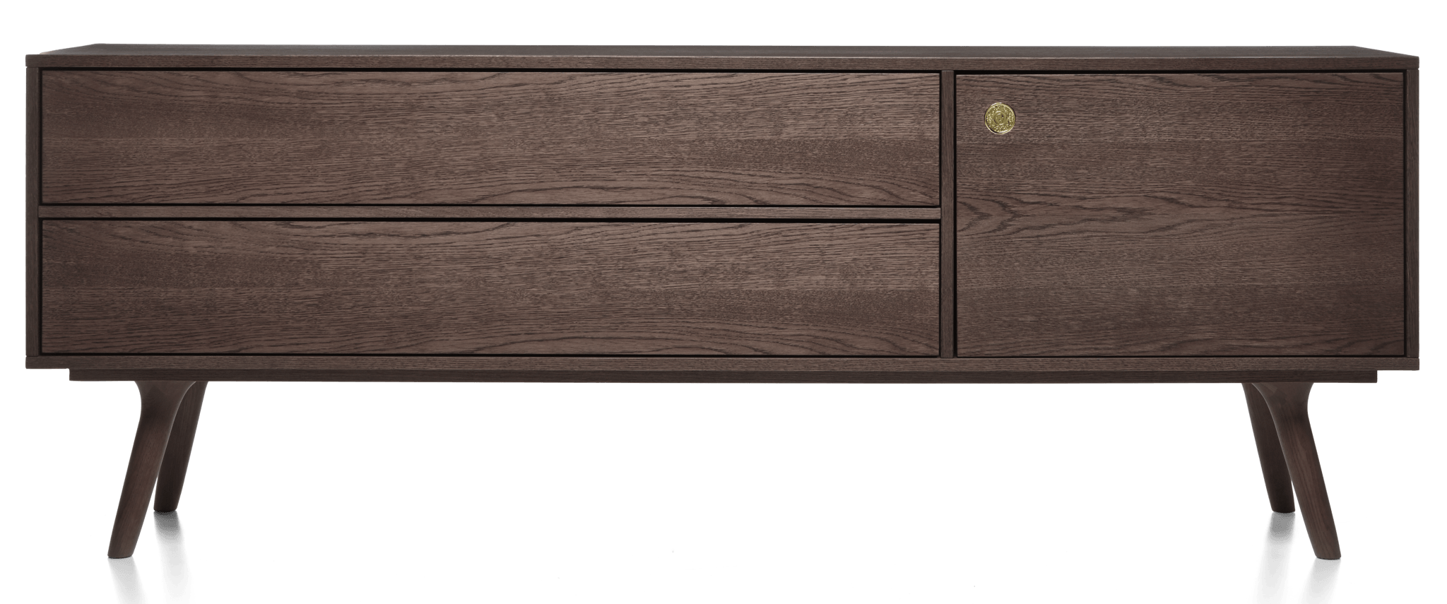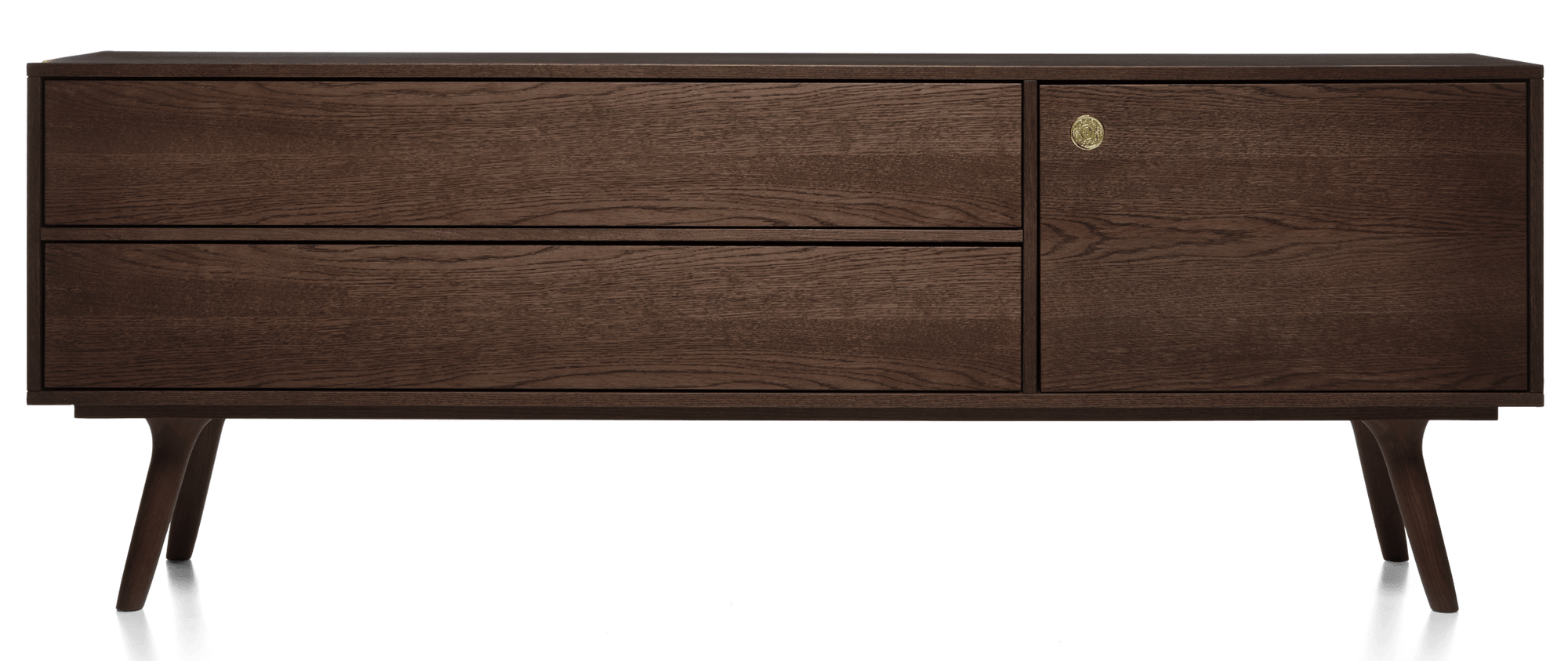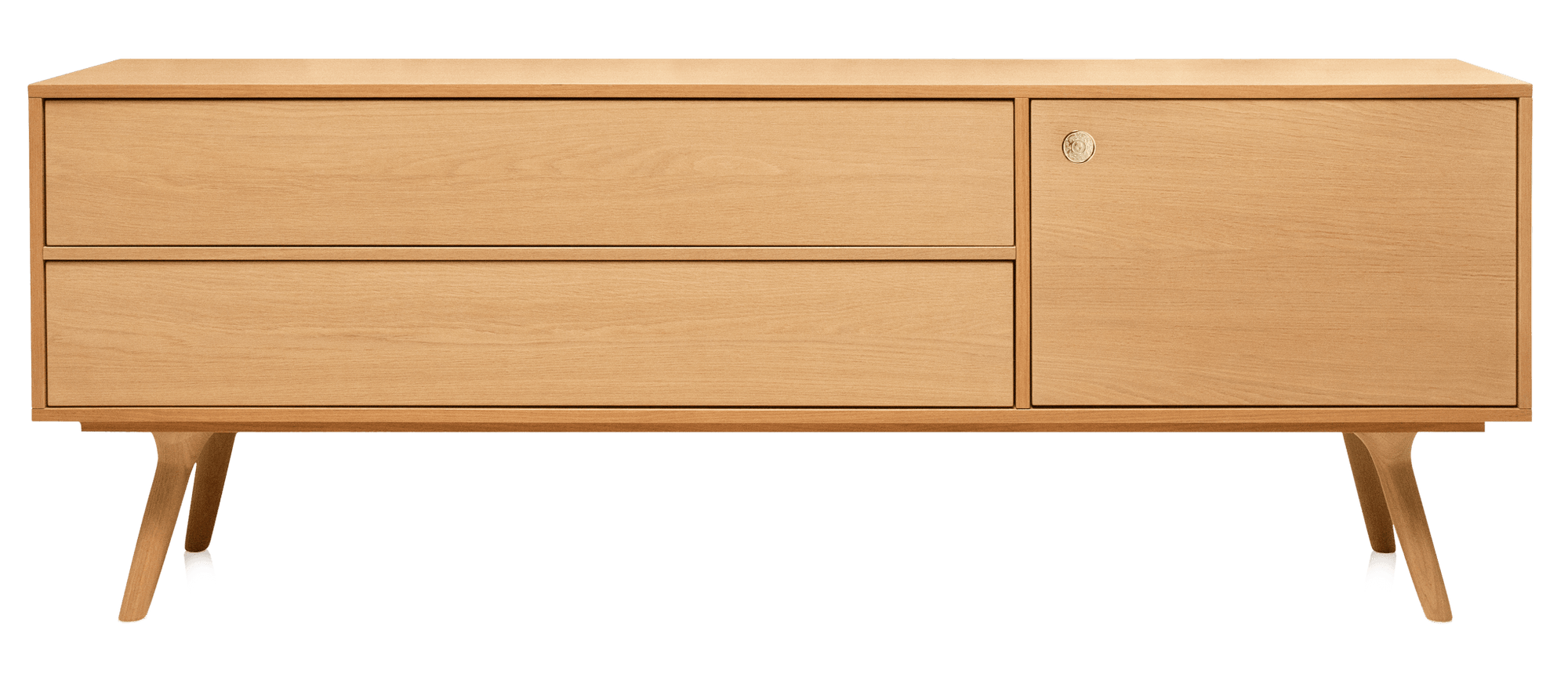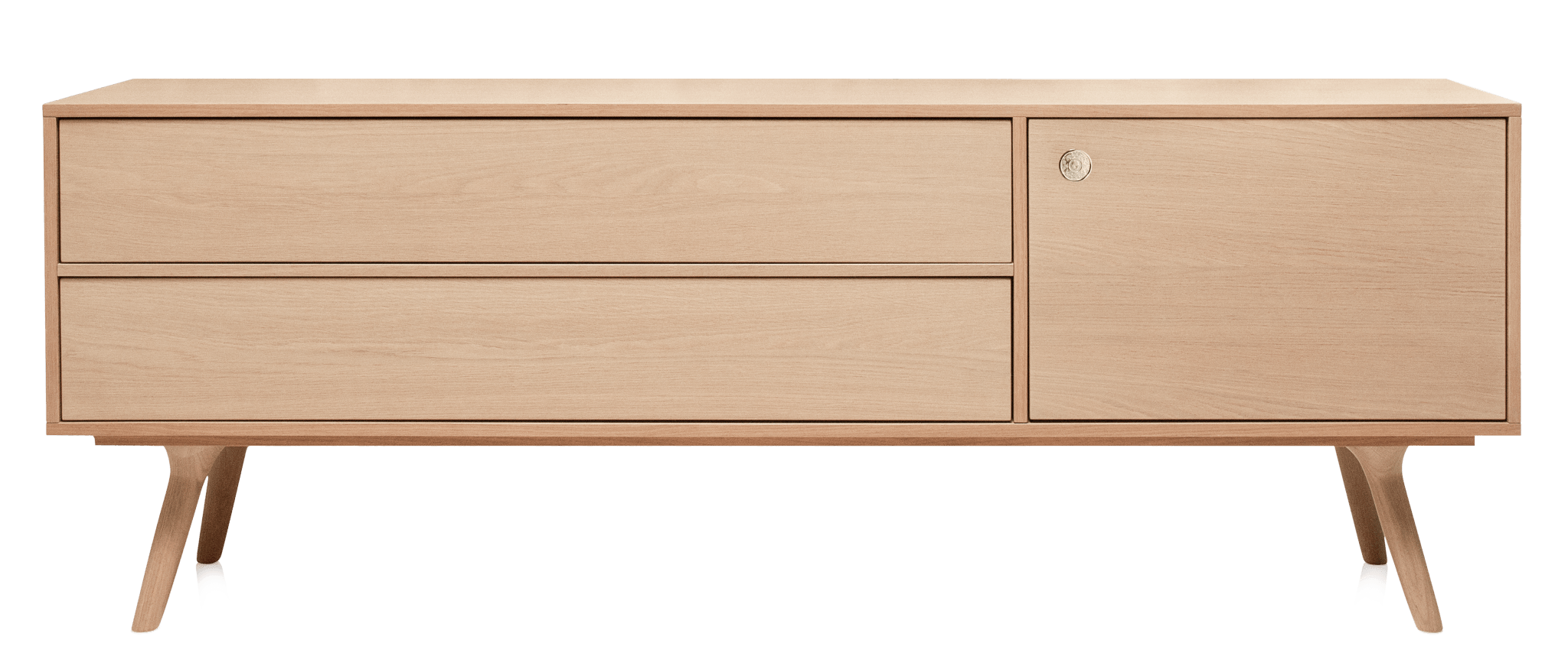 What makes the Zio Buffet genuinely appealing rather than just another trendy piece is how Wanders balanced visual interest with real functionality. The asymmetrical layout - with drawers on one side and cabinet space on the other - keeps things from looking too predictable or boxy, while those angled wooden legs give it this lighter, more elevated feeling than a typical heavy sideboard. The proportions work really well whether you're using it under a mounted TV, as a serving station for dinner parties, or just as a place to display your favorite books and objects. The oak construction means it's built to last decades, not just until the next design trend comes along, and that natural wood finish actually gets better looking as it ages and develops character.